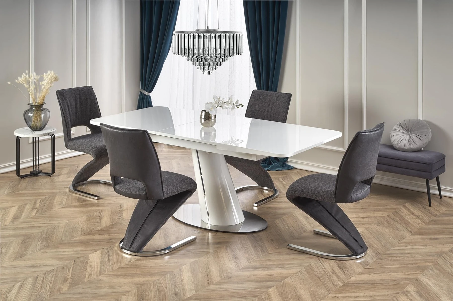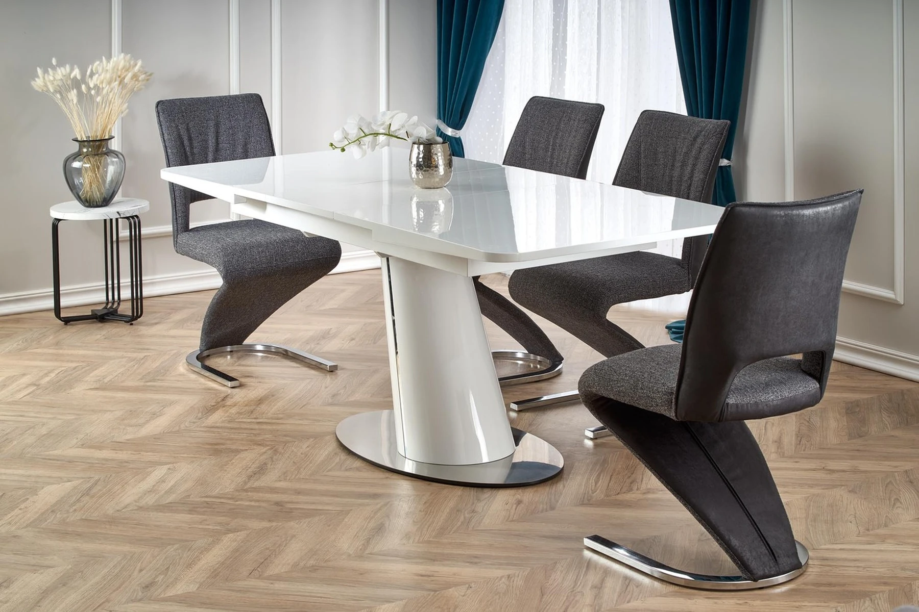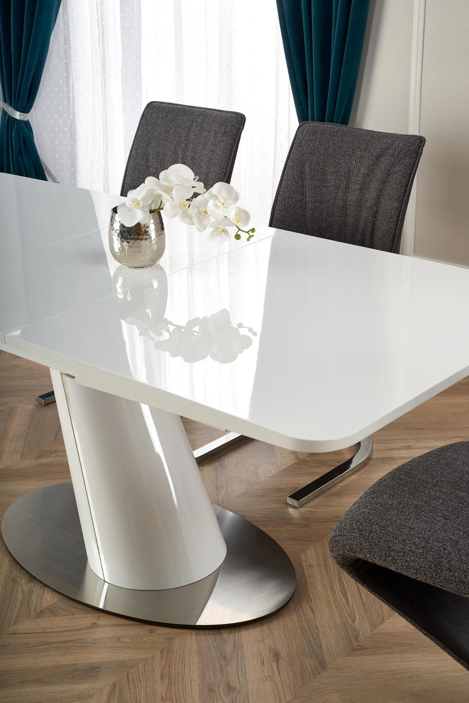 prailginamasis stalas, matmenys: 160-200/90/76cm, medžiaga: lakuotas MDF / nerūdijantis plienas, spalva: balta