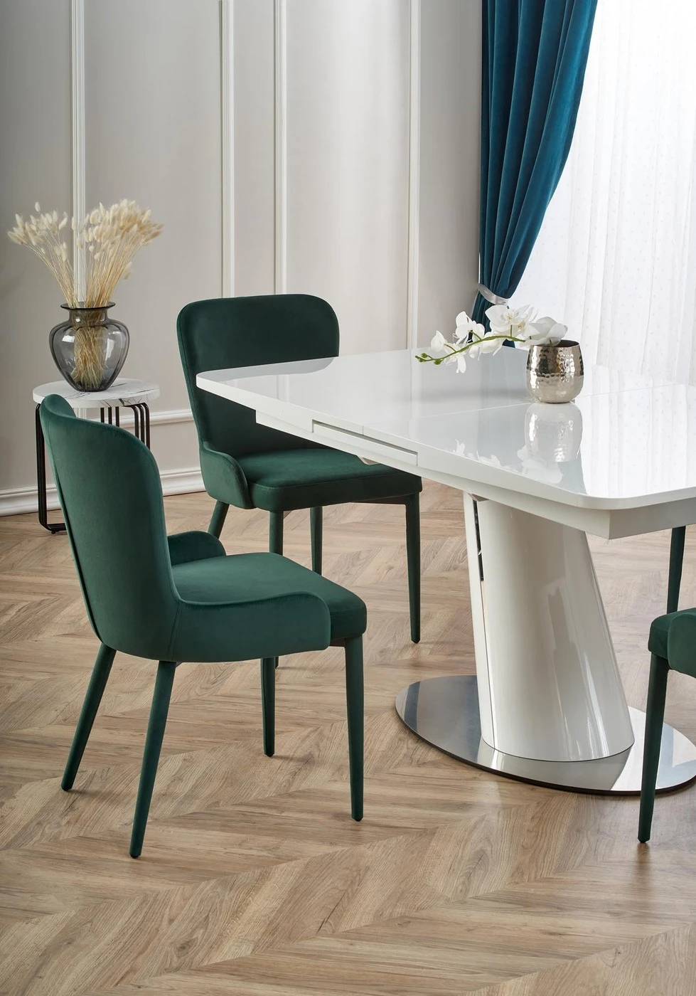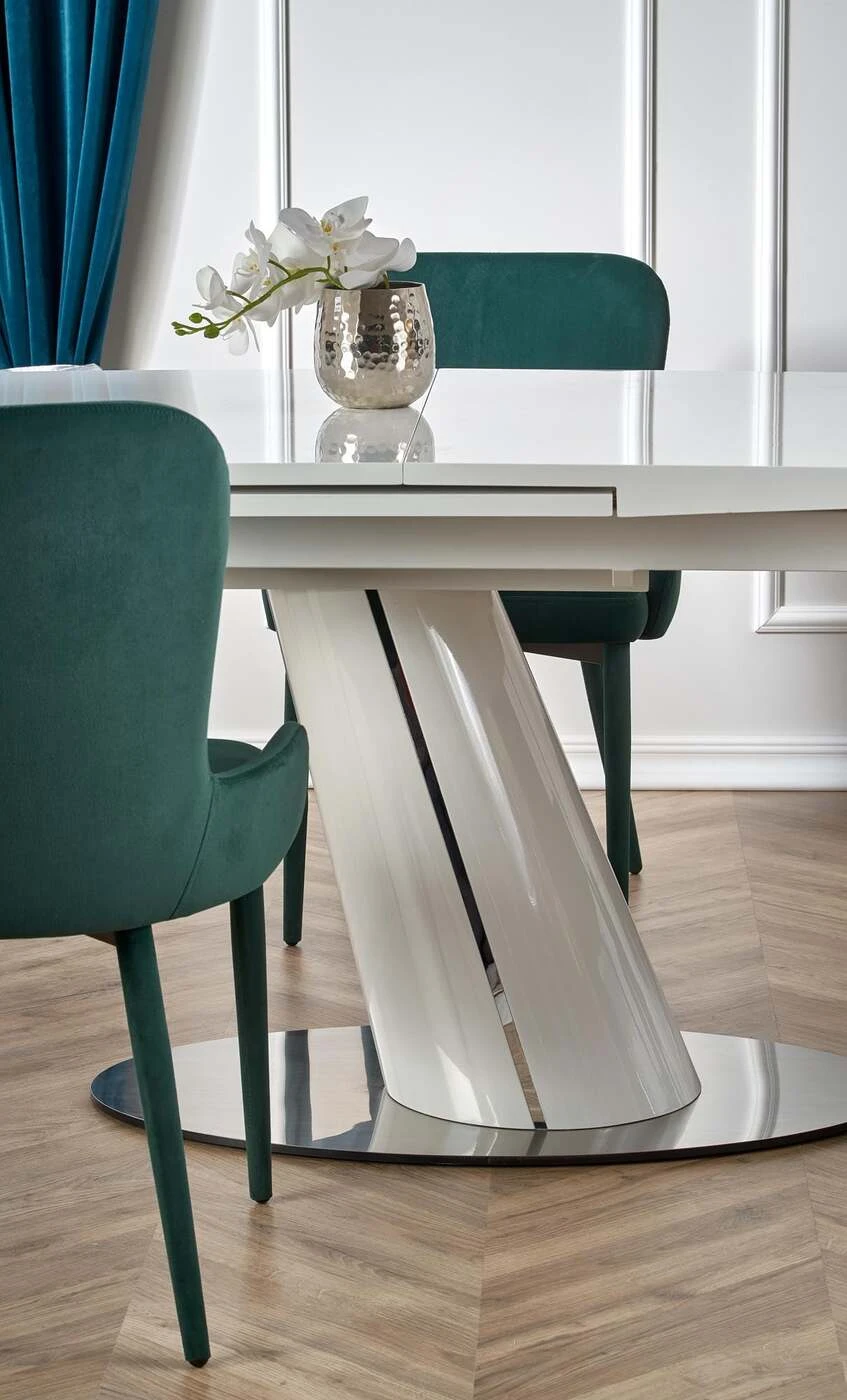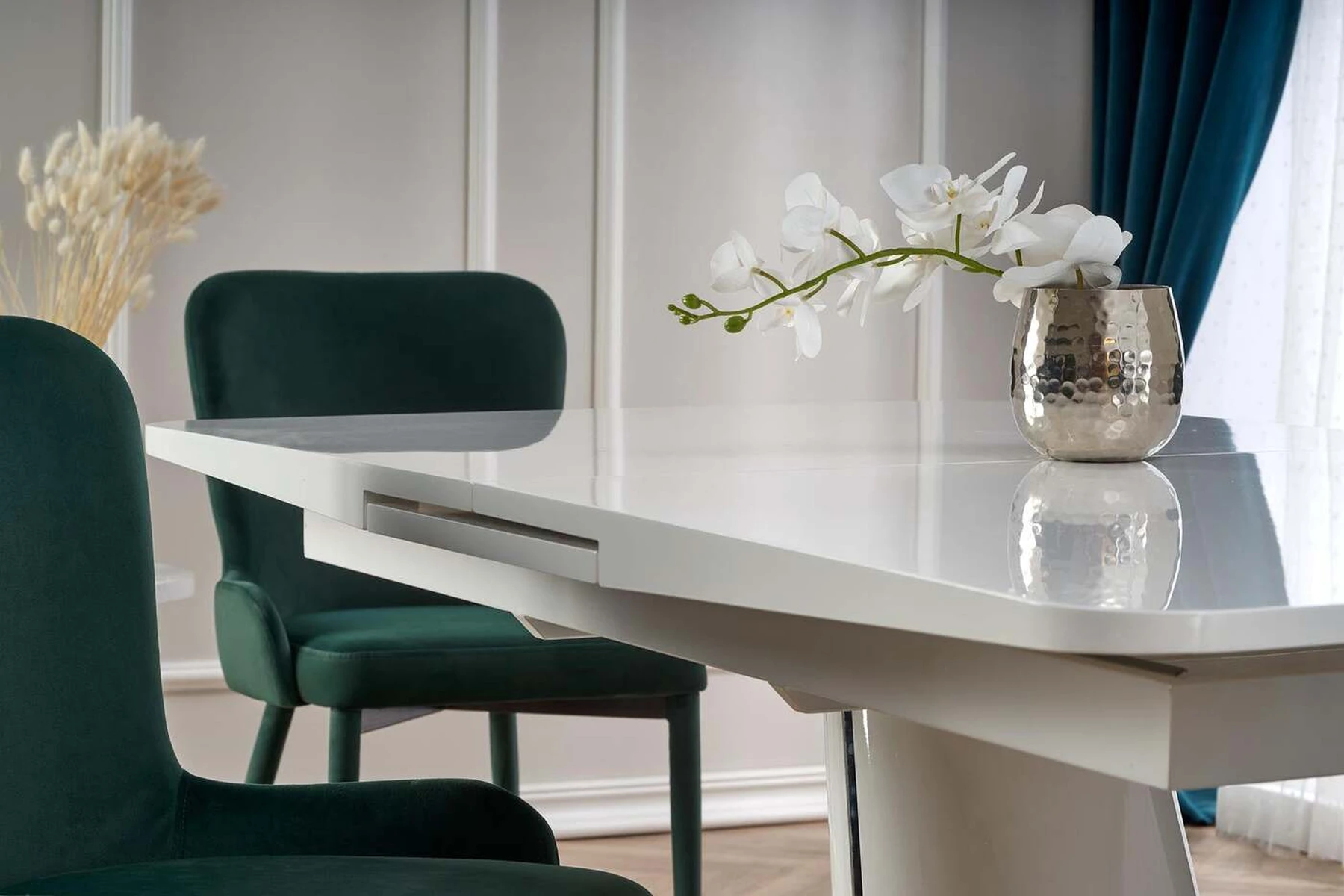 prailginamasis stalas, matmenys: 160-200/90/76cm, medžiaga: lakuotas MDF / nerūdijantis plienas, spalva: balta