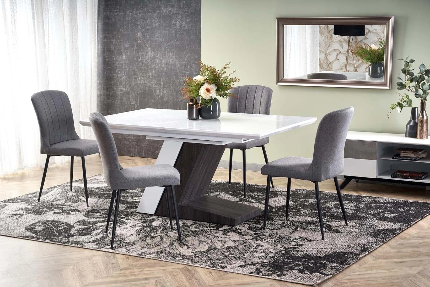 prailginimo stalas, matmenys: 160-200/90/76 cm, medžiaga: lakuotas MDF / laminuotas MDF, spalva: balta / tamsiai pilka