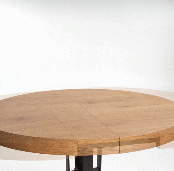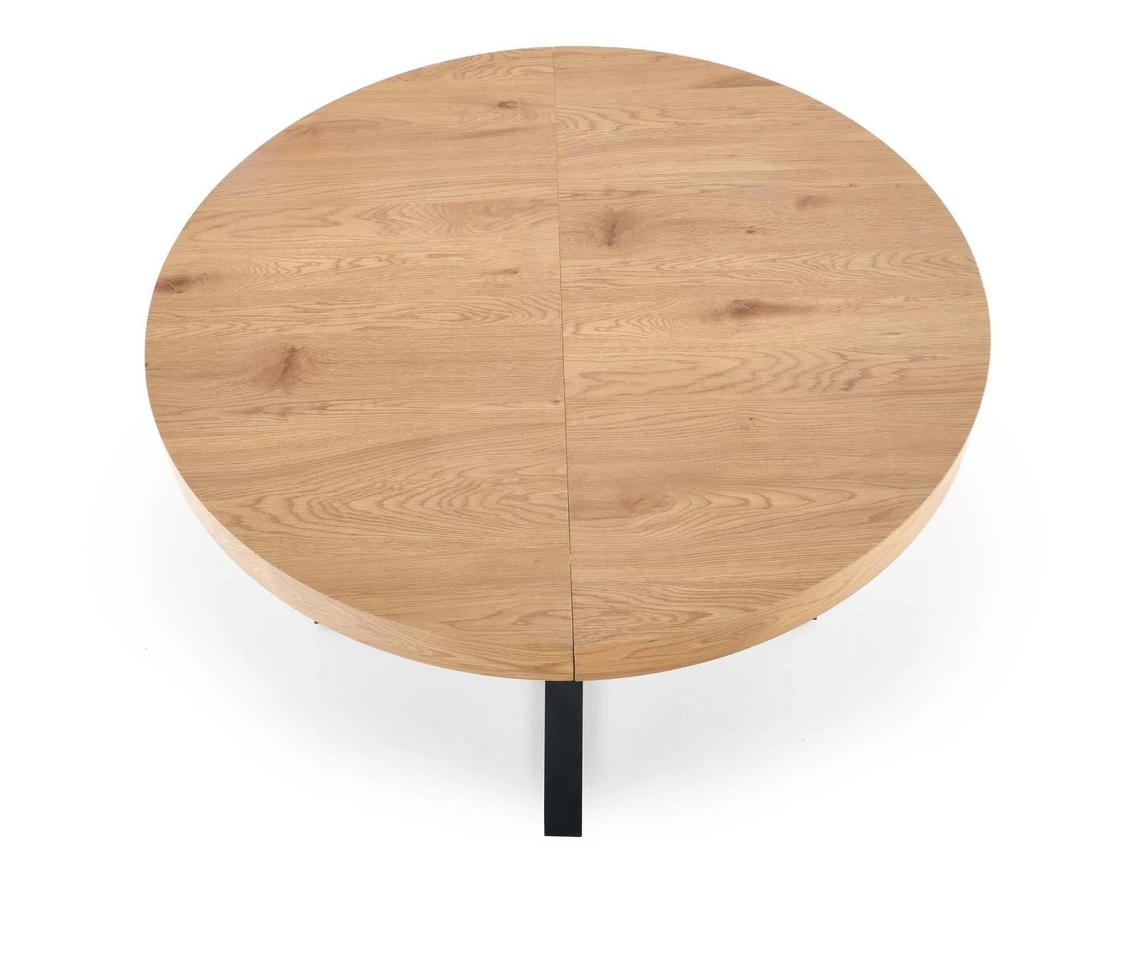 prailginamasis stalas, matmenys: 120-160/120/76 cm medžiaga: laminuotas MDF / milteliniu būdu dažytas plienas, spalva: viršus - auksinis ąžuolas, kojos - juodos