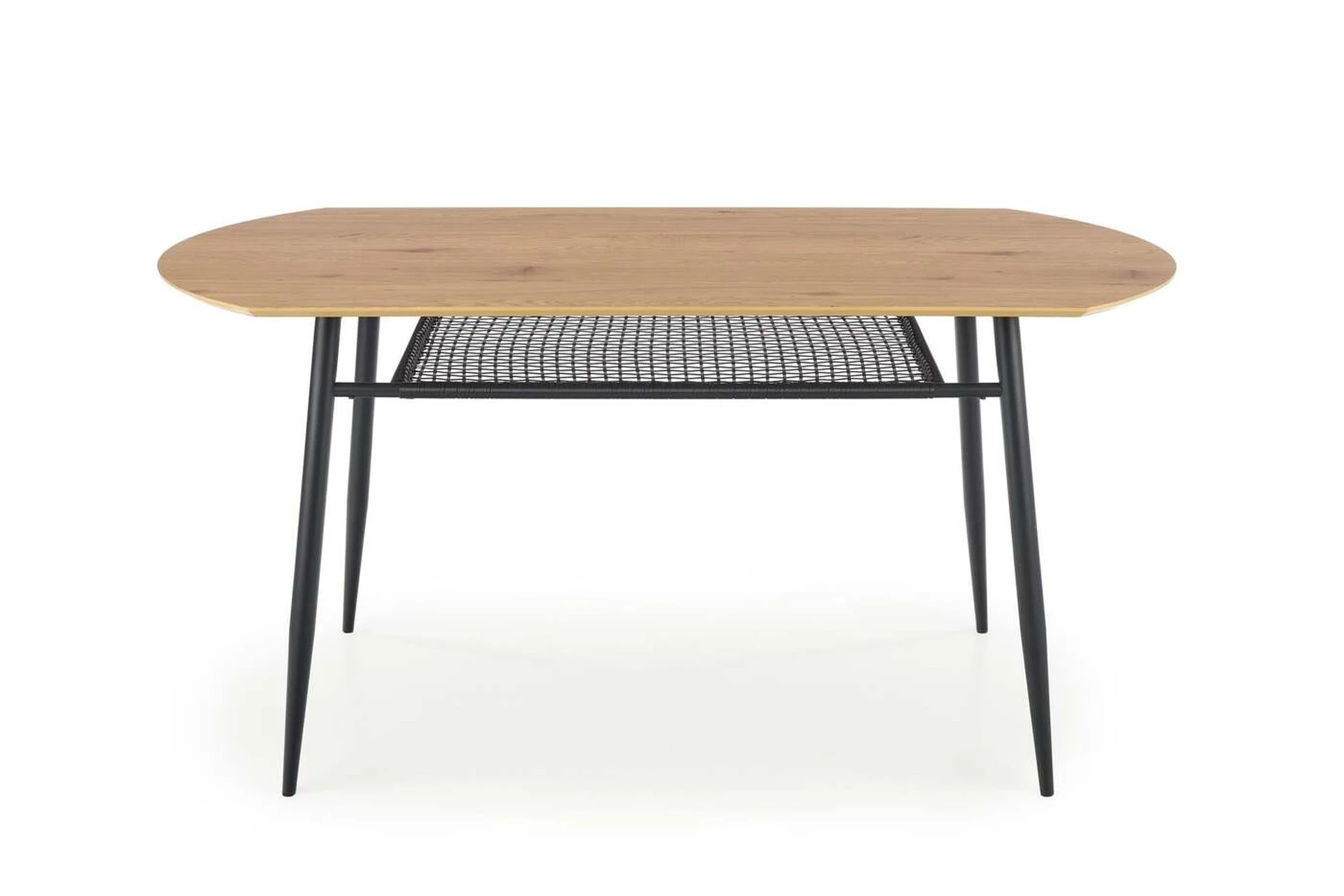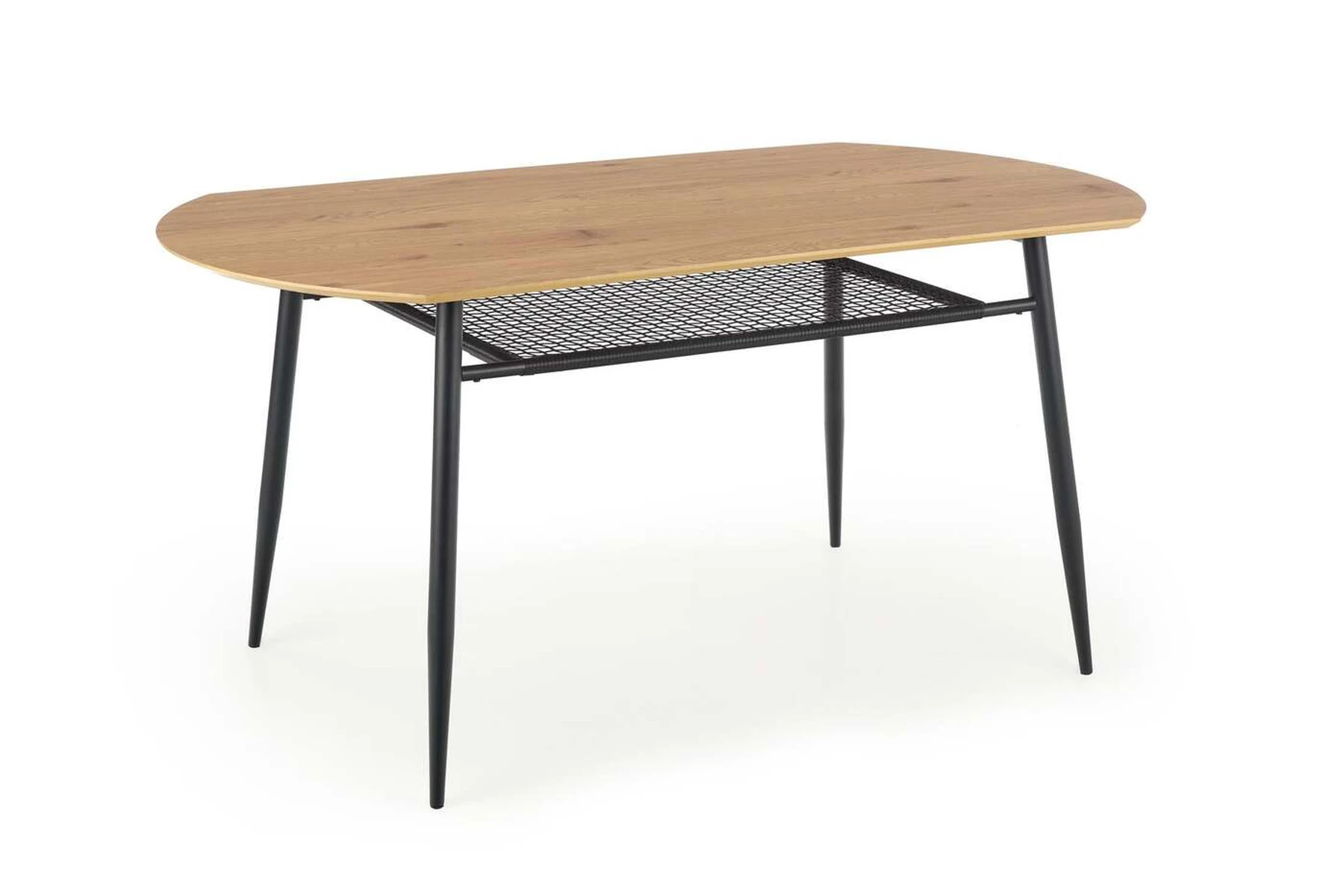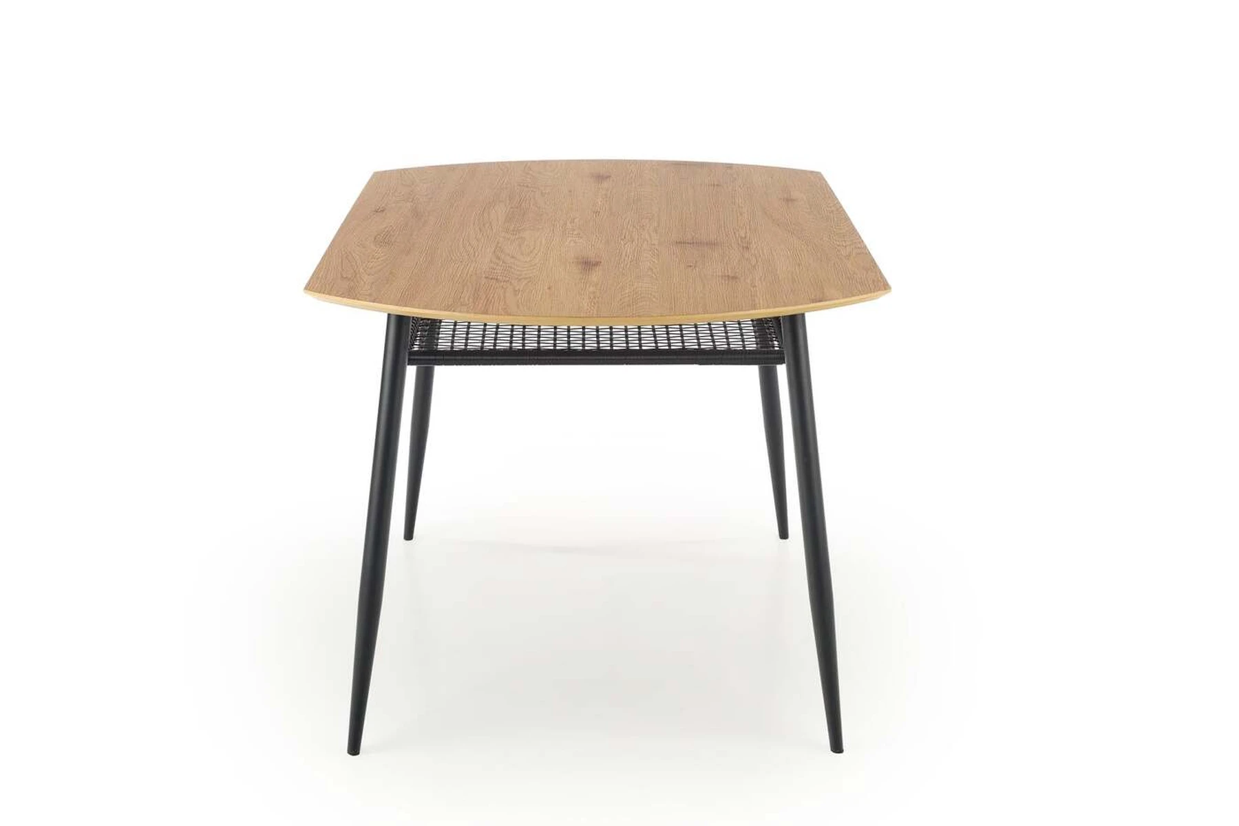 stalas, dydis: 160/90/77 cm, medžiaga: laminuotas MDF / milteliniu būdu dažytas plienas, spalva: viršus - auksinis ąžuolas, kojos - juodos