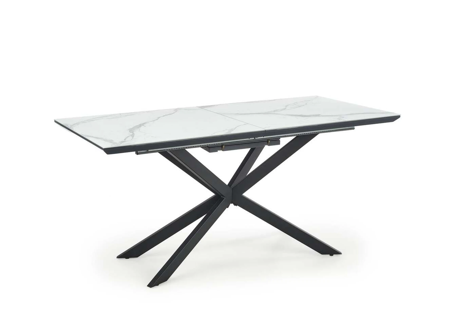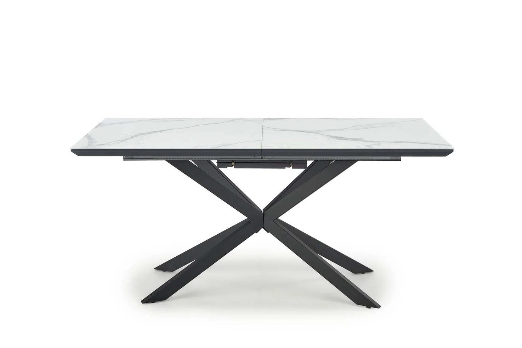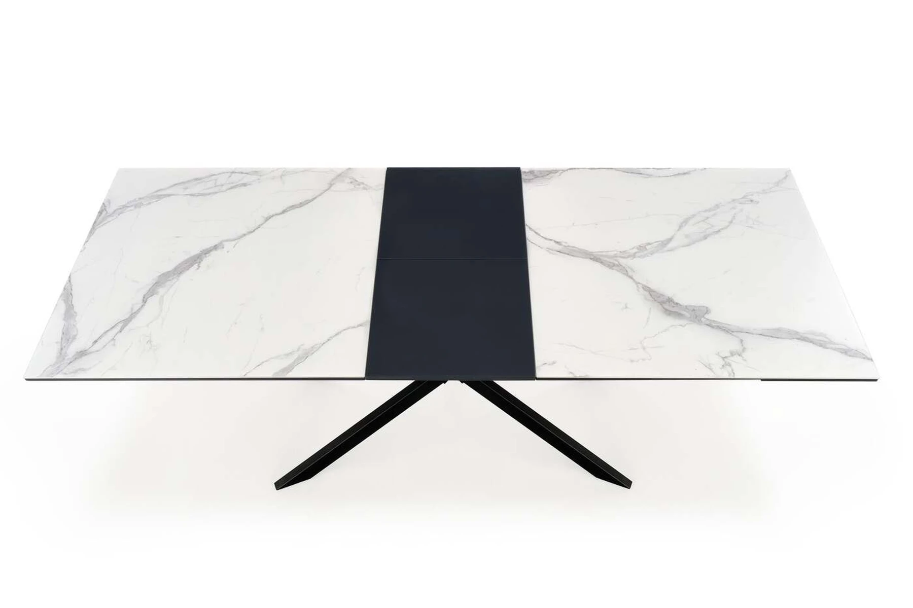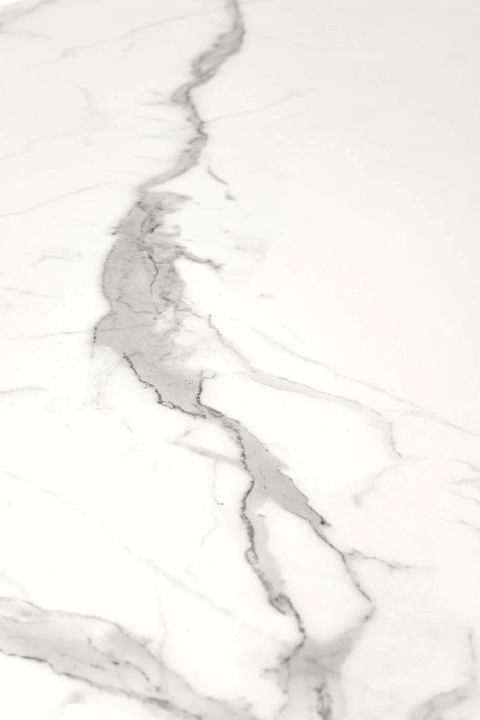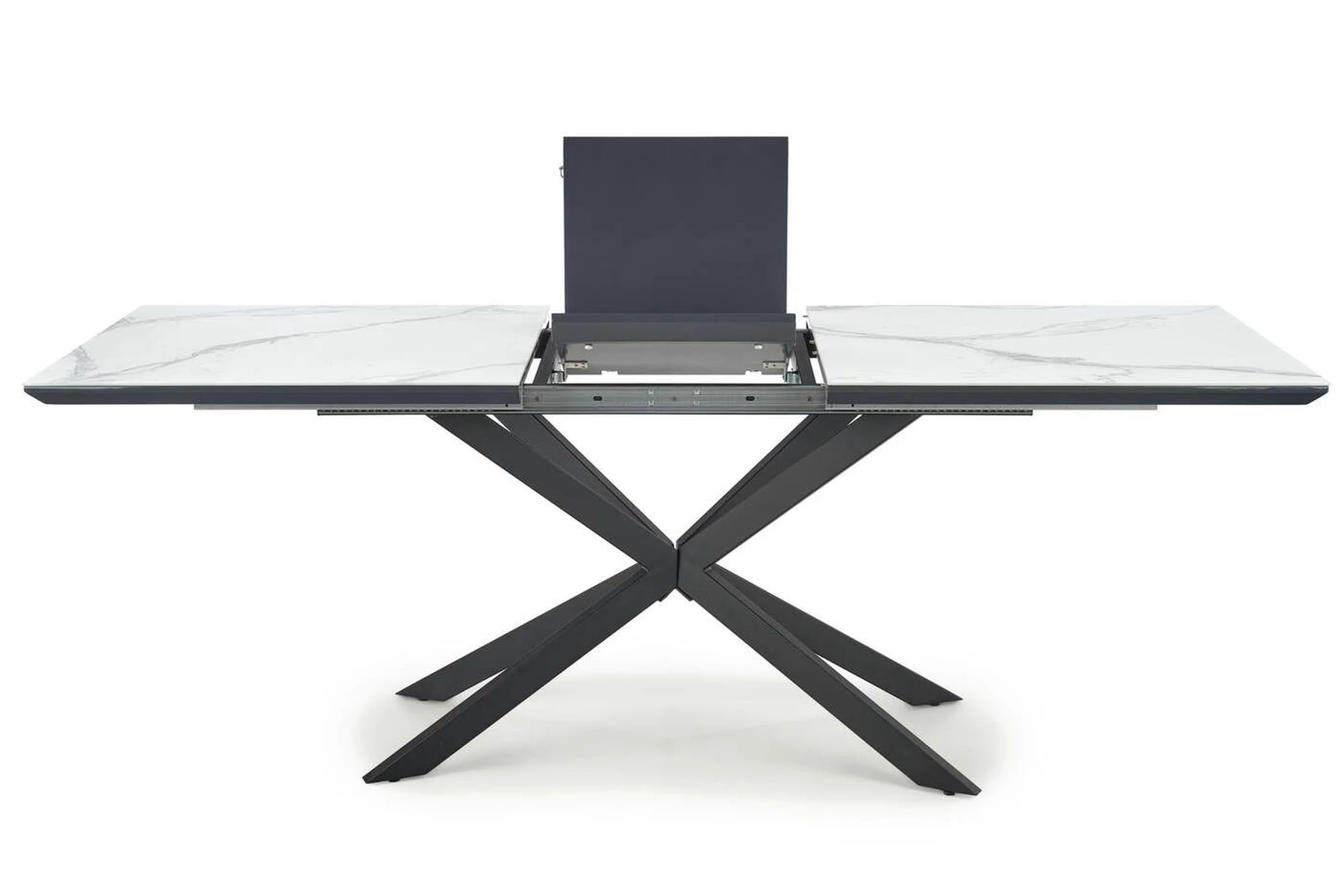 prailginamasis stalas, matmenys: 160-200/90/76 cm, medžiaga: keramika / lakuotas MDF / milteliniu būdu dengtas plienas, spalva: viršus - baltas marmuras / tamsiai pilka, kojos - juodos