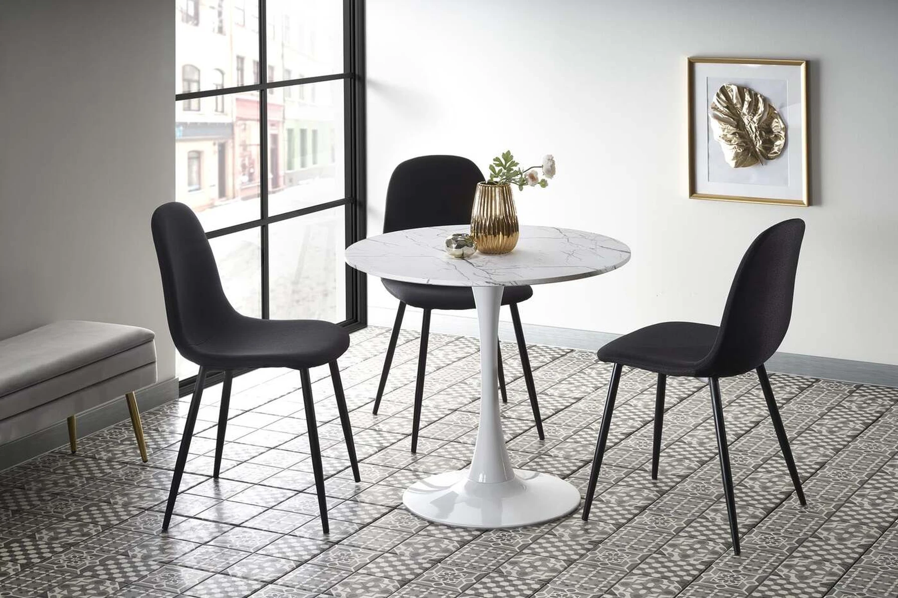 matmenys: fi 80/73 cm, medžiaga: laminuotas MDF / milteliniu būdu dažytas plienas, spalva: viršus - baltas marmuras, kojos - balta