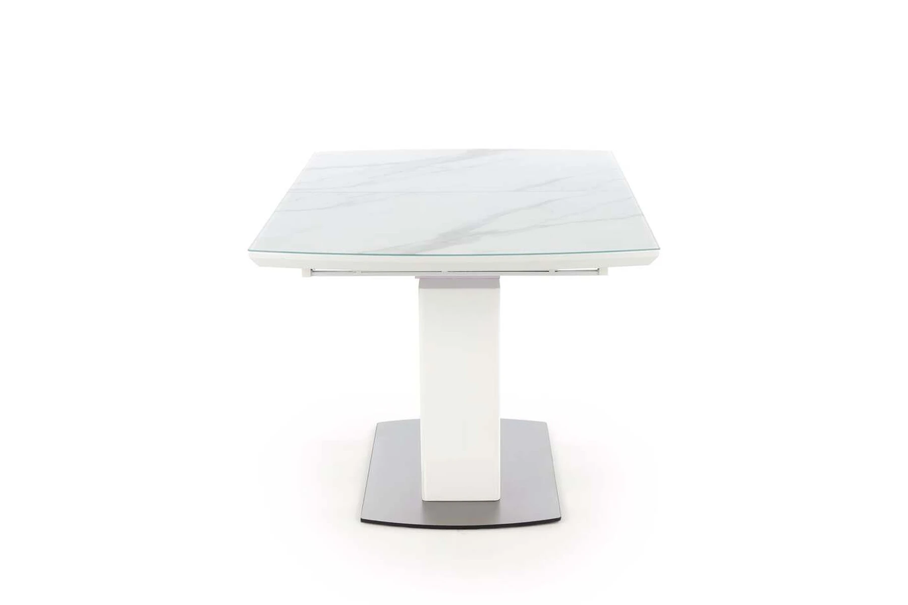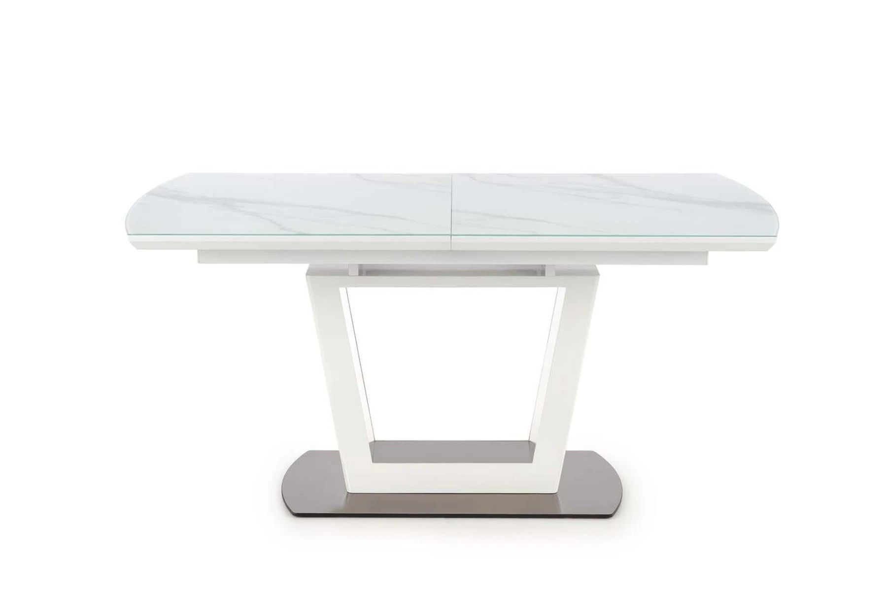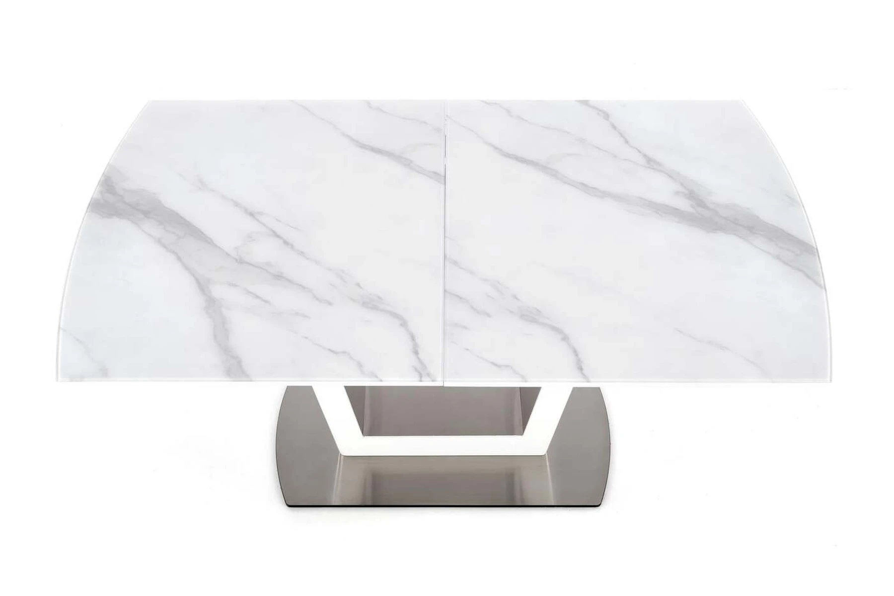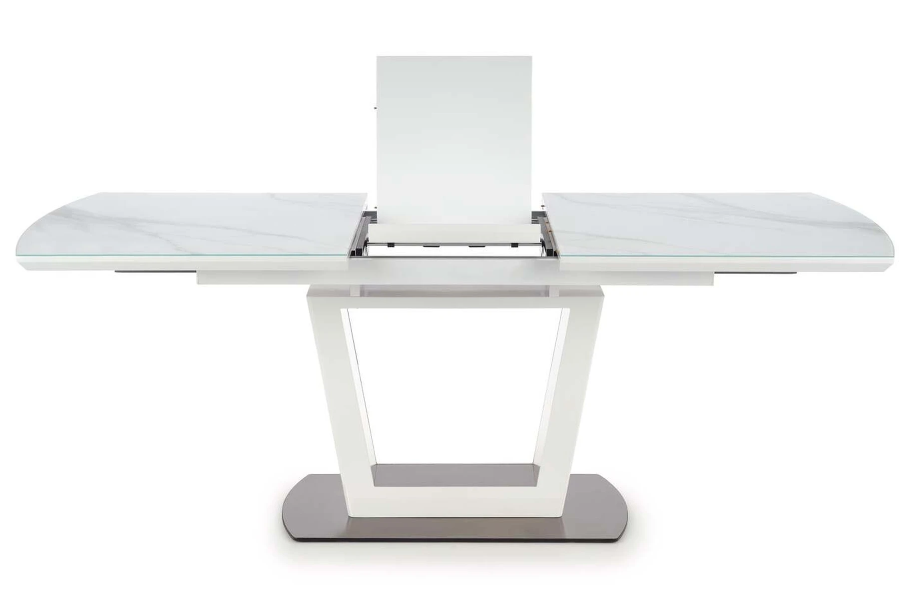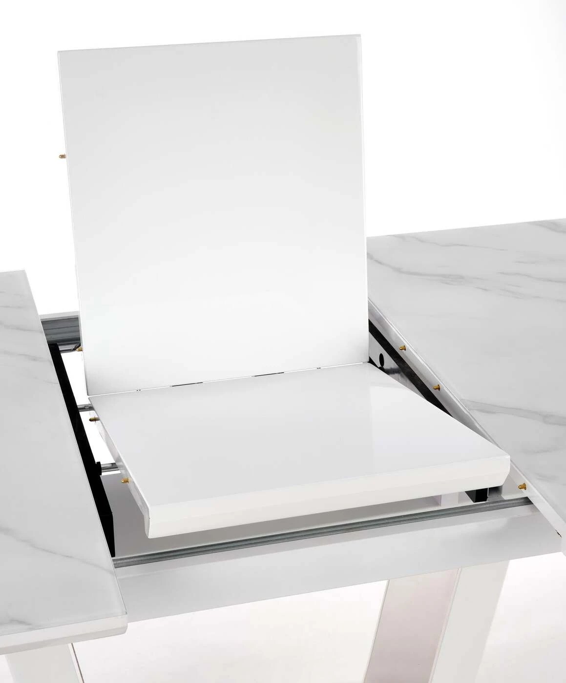 prailginamasis stalas, matmenys: 160-200/90/76 cm, medžiaga: stiklas / lakuotas MDF / nerūdijantis plienas, spalva: baltas marmuras - balta