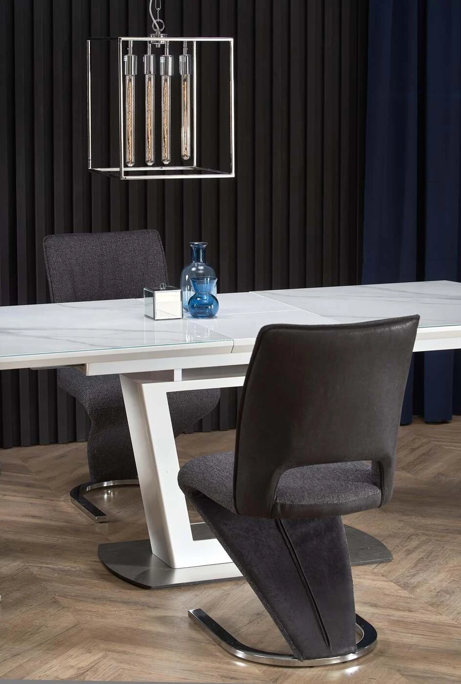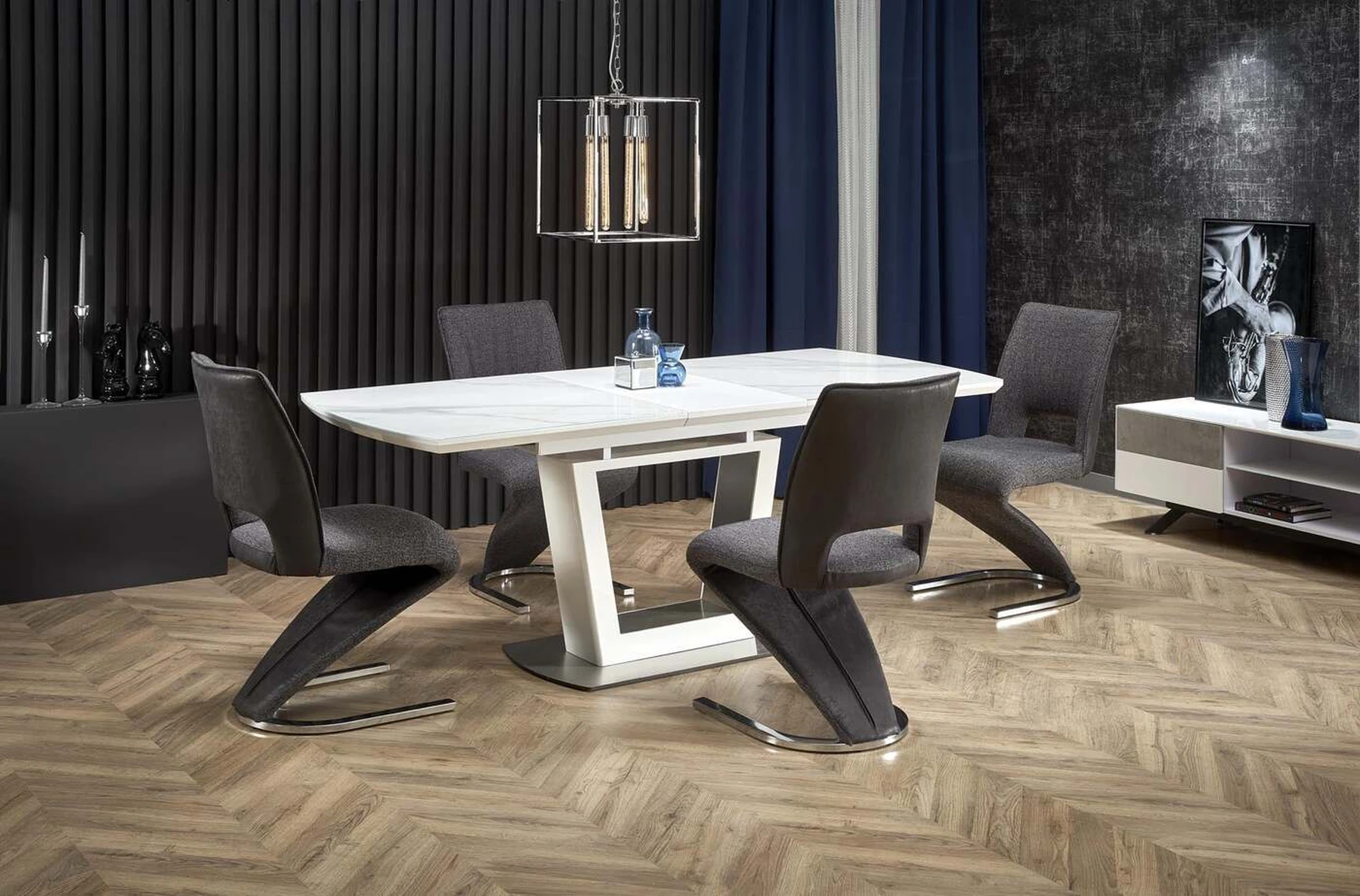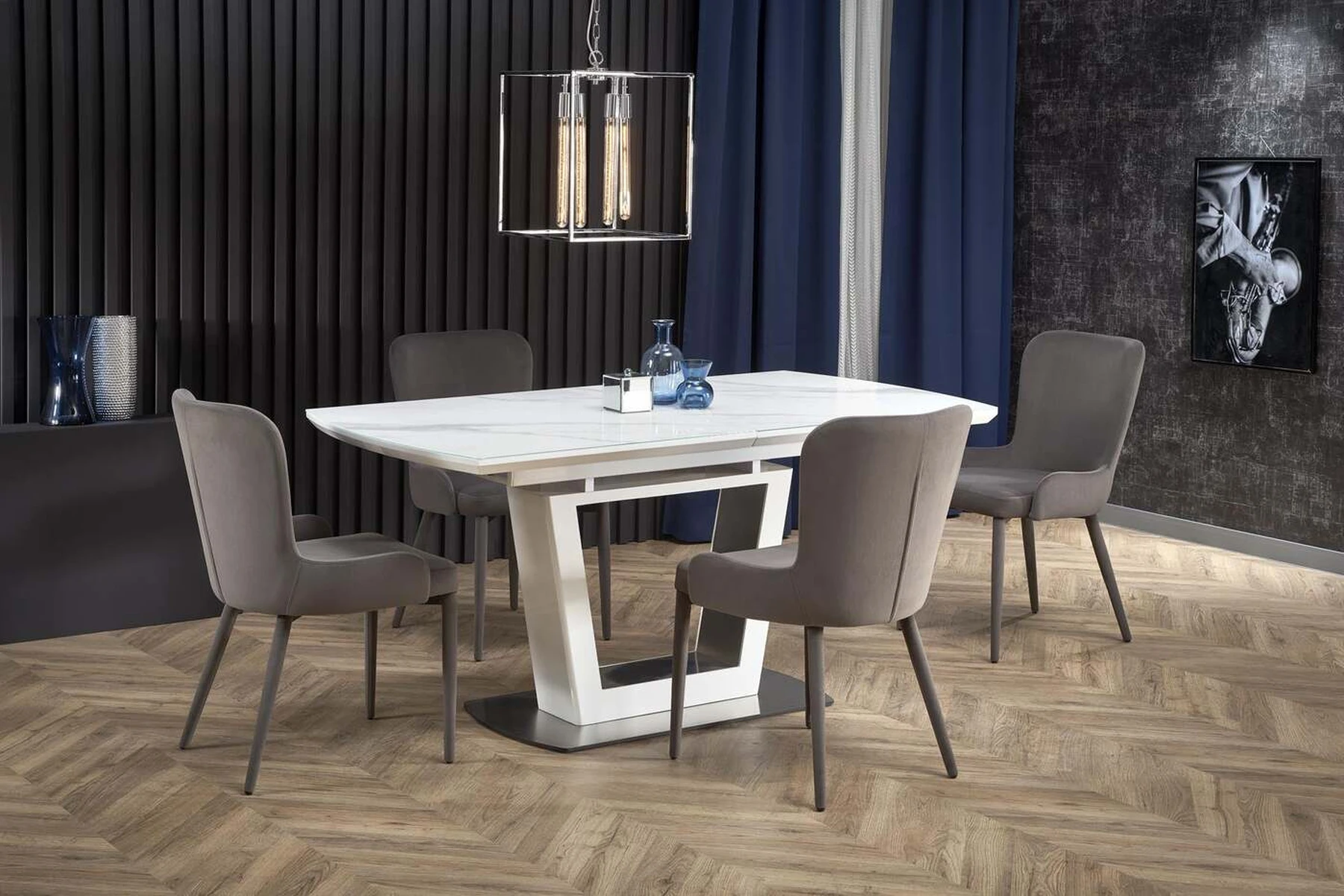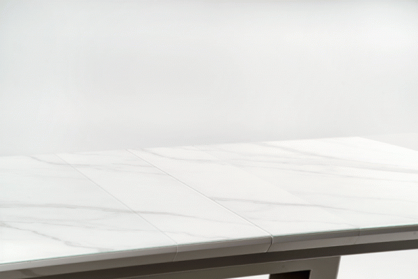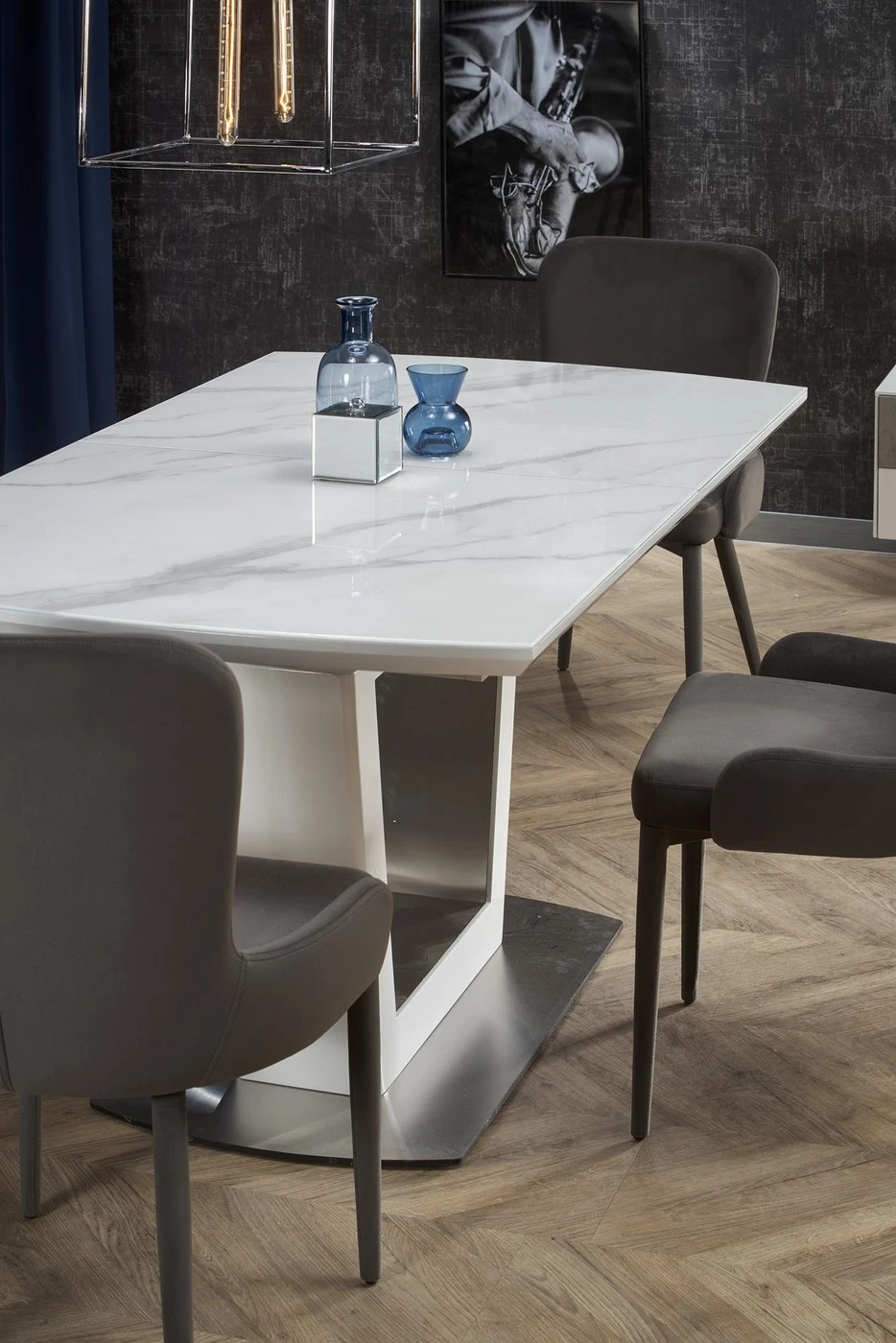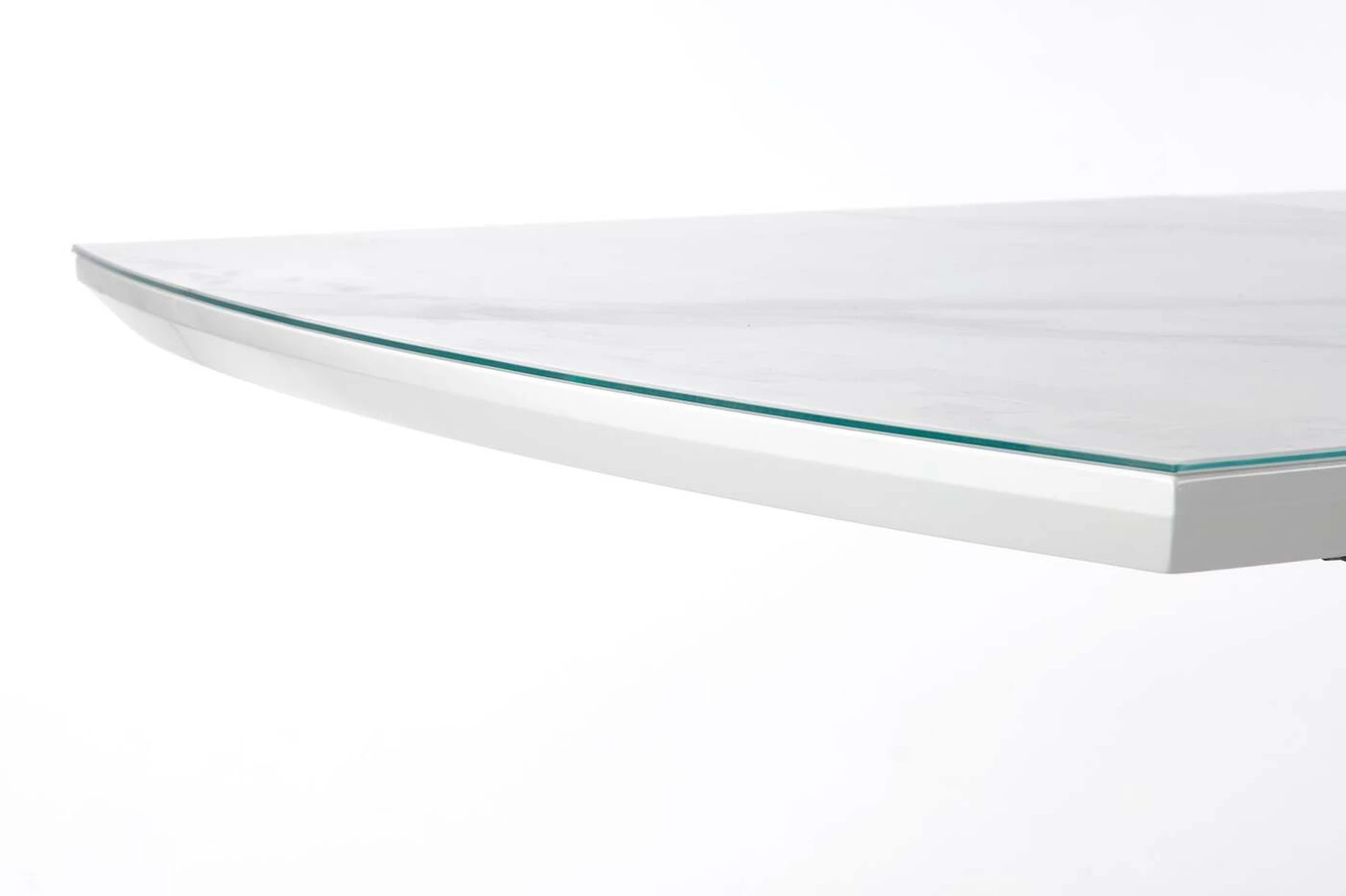 prailginamasis stalas, matmenys: 160-200/90/76 cm, medžiaga: stiklas / lakuotas MDF / nerūdijantis plienas, spalva: baltas marmuras - balta