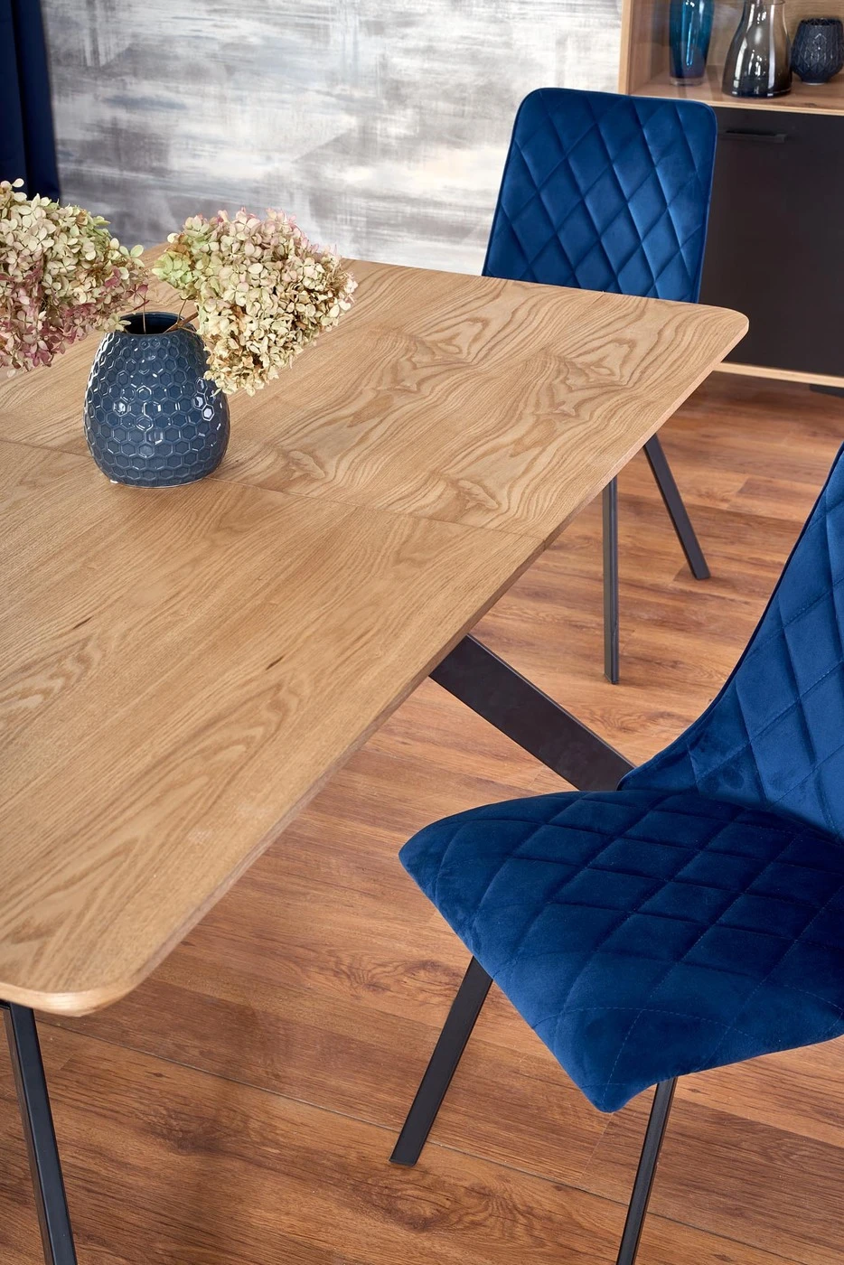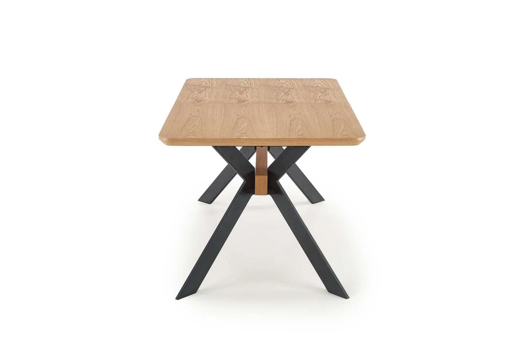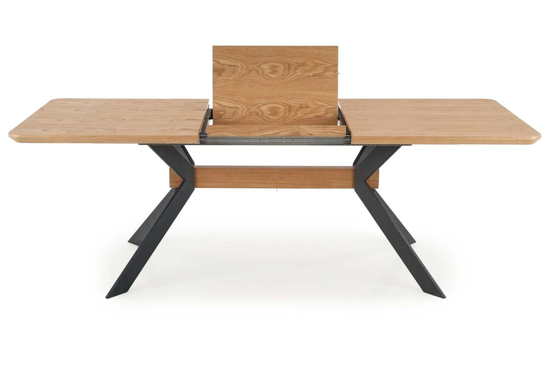 prailginamasis stalas, matmenys: 160-220/90/76 cm, medžiaga: MDF + natūrali fanera / milteliniu būdu dažytas plienas, spalva: viršus - natūralus ąžuolas, kojos - juodos