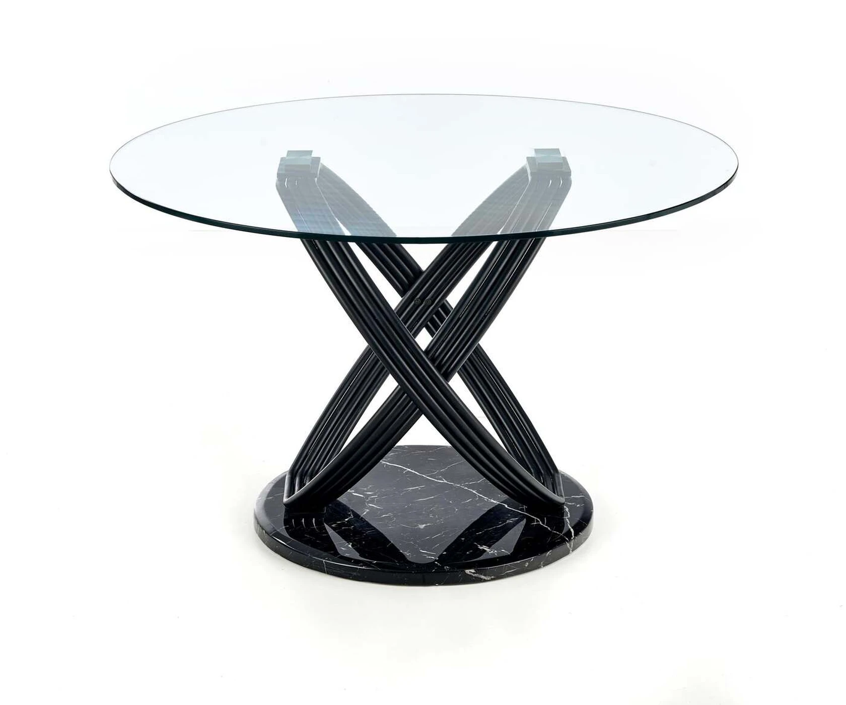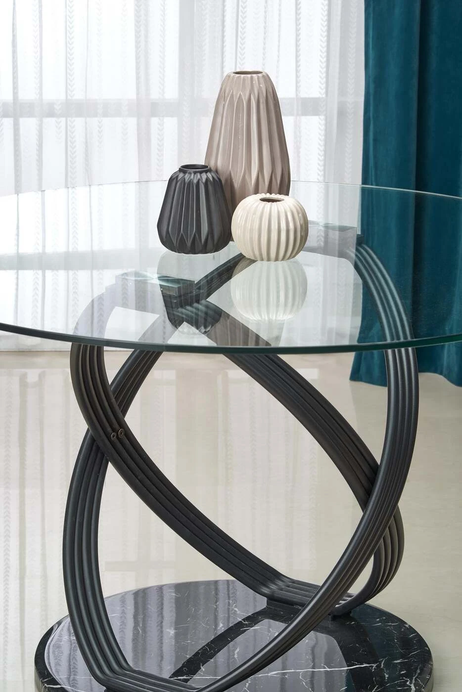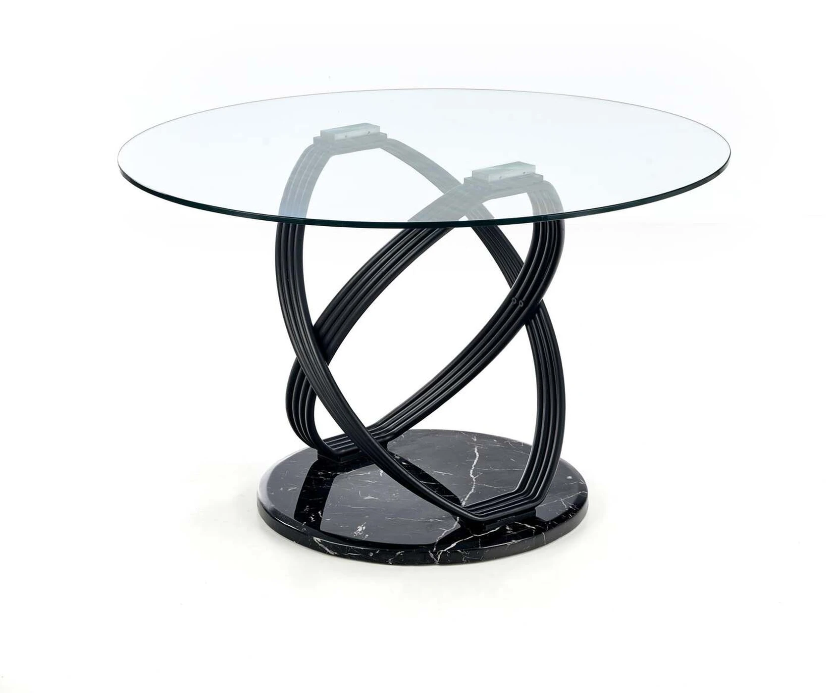 matmenys: o122/77 cm, medžiaga: stiklas / milteliniu būdu dažytas plienas / dirbtinis akmuo, spalva: viršus - skaidrus, kojos - juodos