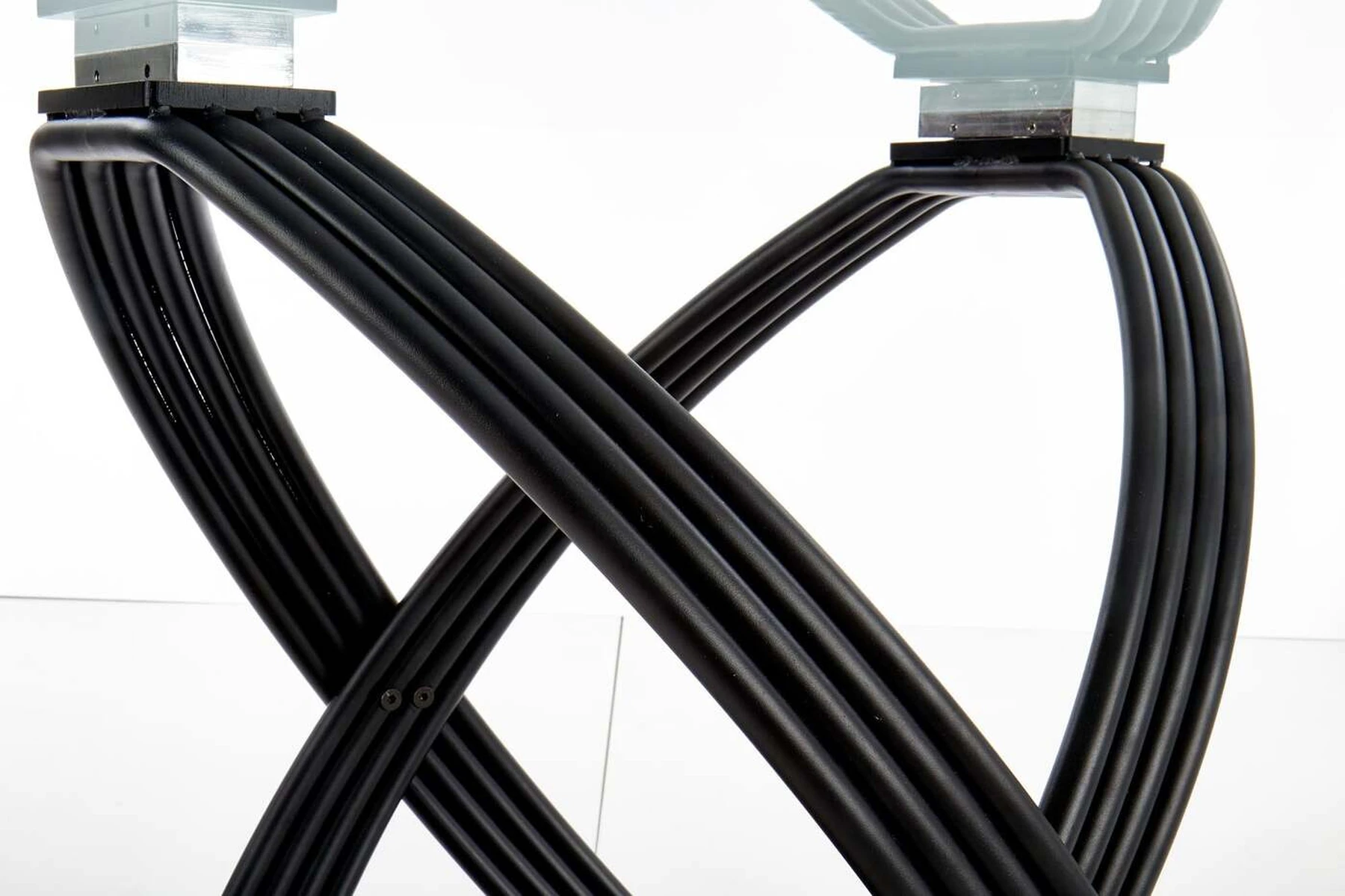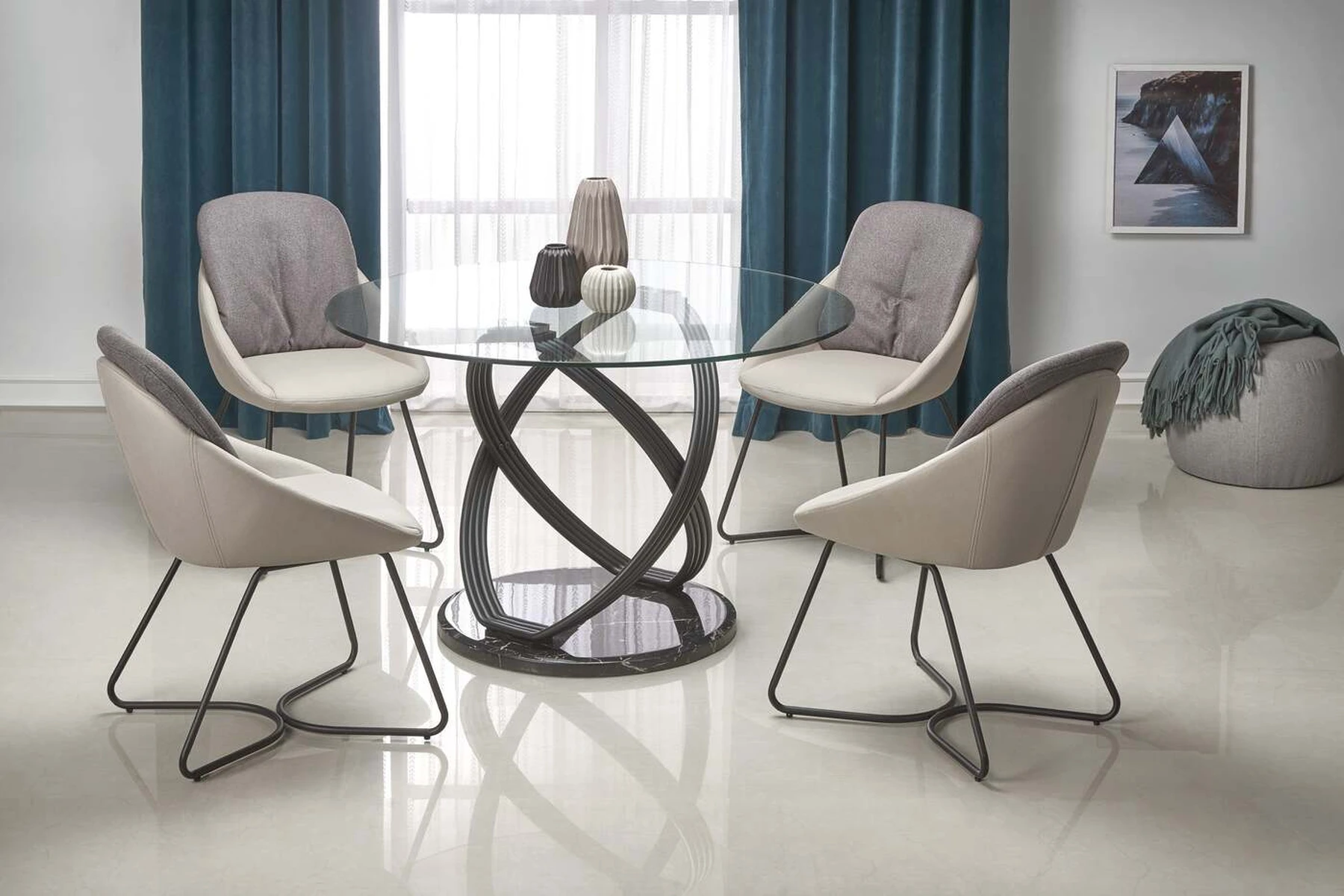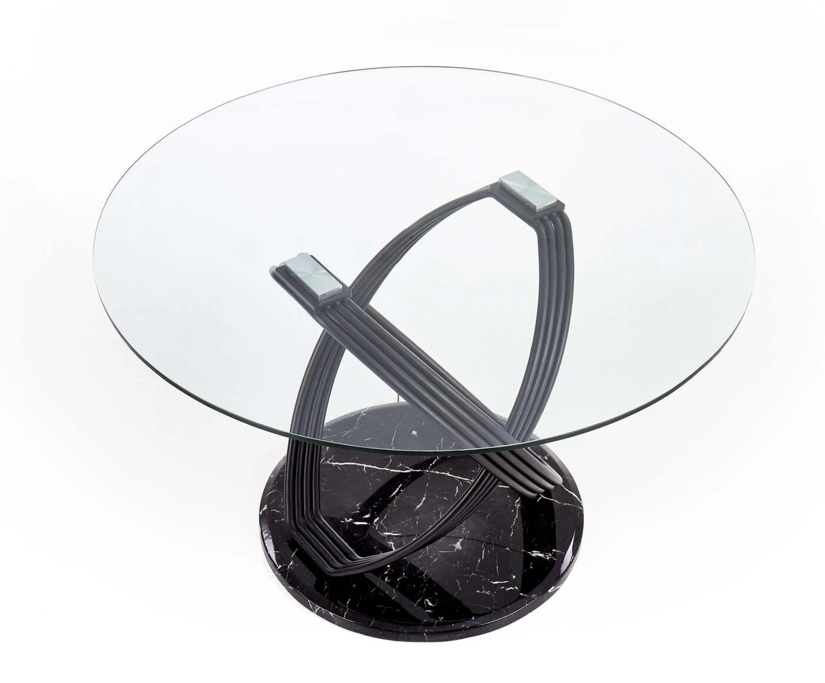 matmenys: o122/77 cm, medžiaga: stiklas / milteliniu būdu dažytas plienas / dirbtinis akmuo, spalva: viršus - skaidrus, kojos - juodos