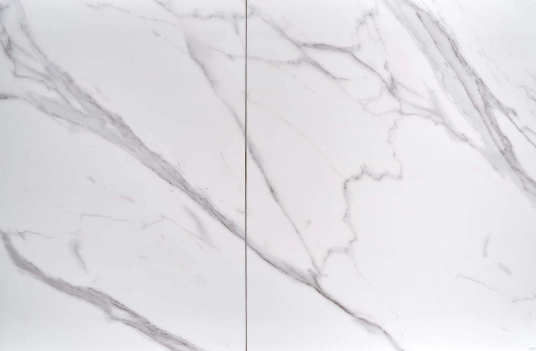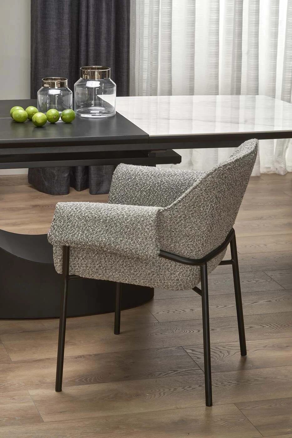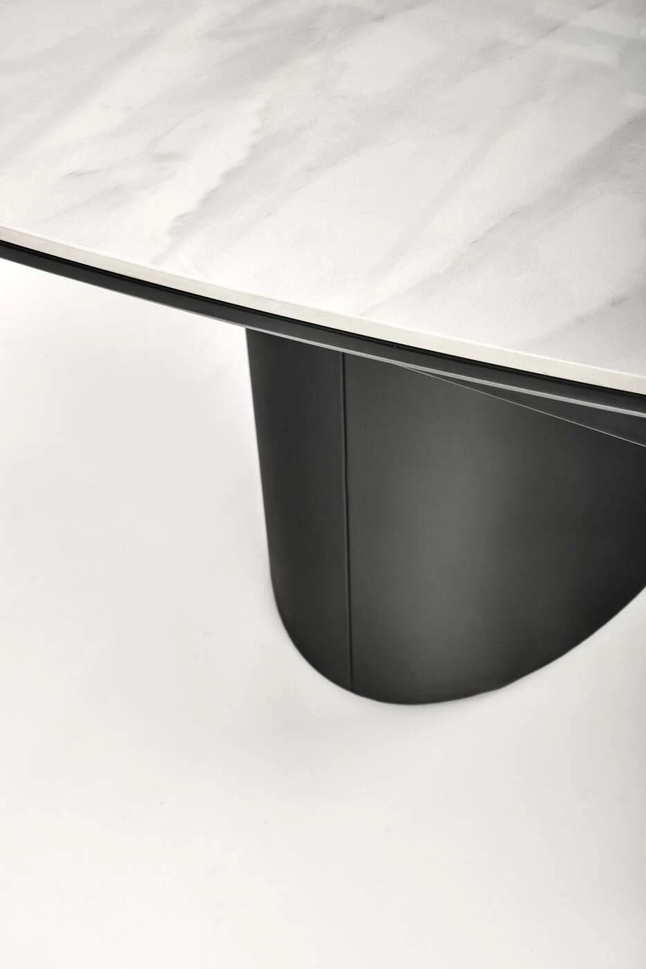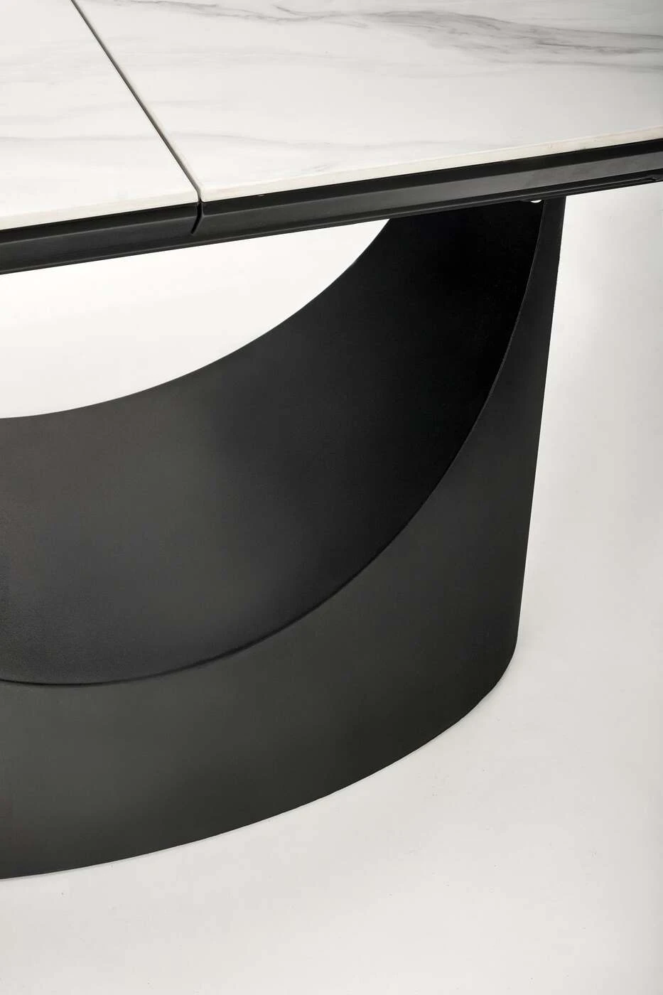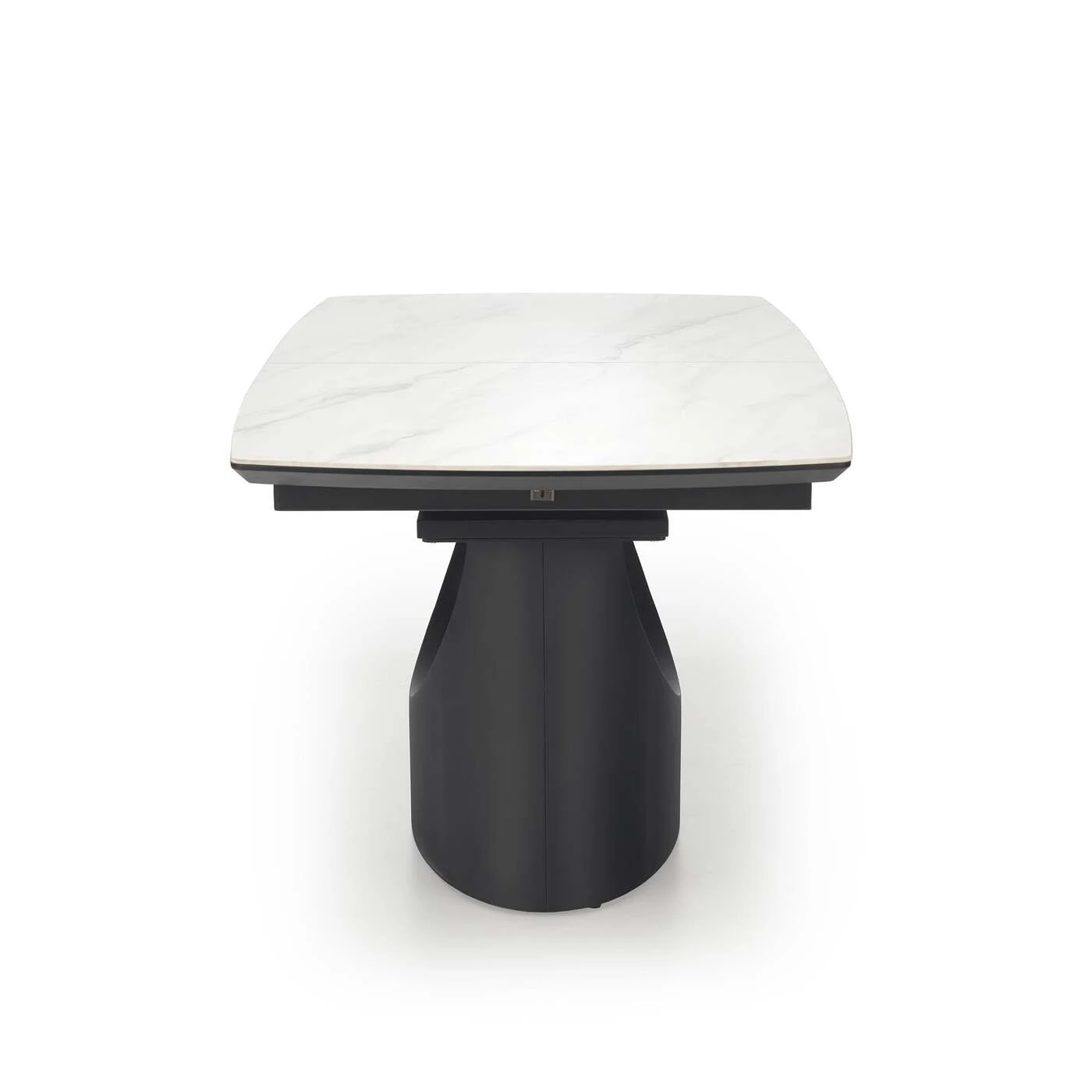 matmenys: 160-220/90/77 cm, prailginimo stalas, medžiaga: keramika / lakuotas MDF / milteliniu būdu dažytas plienas, spalva: viršus - baltas marmuras / juodas, kojos - juodos