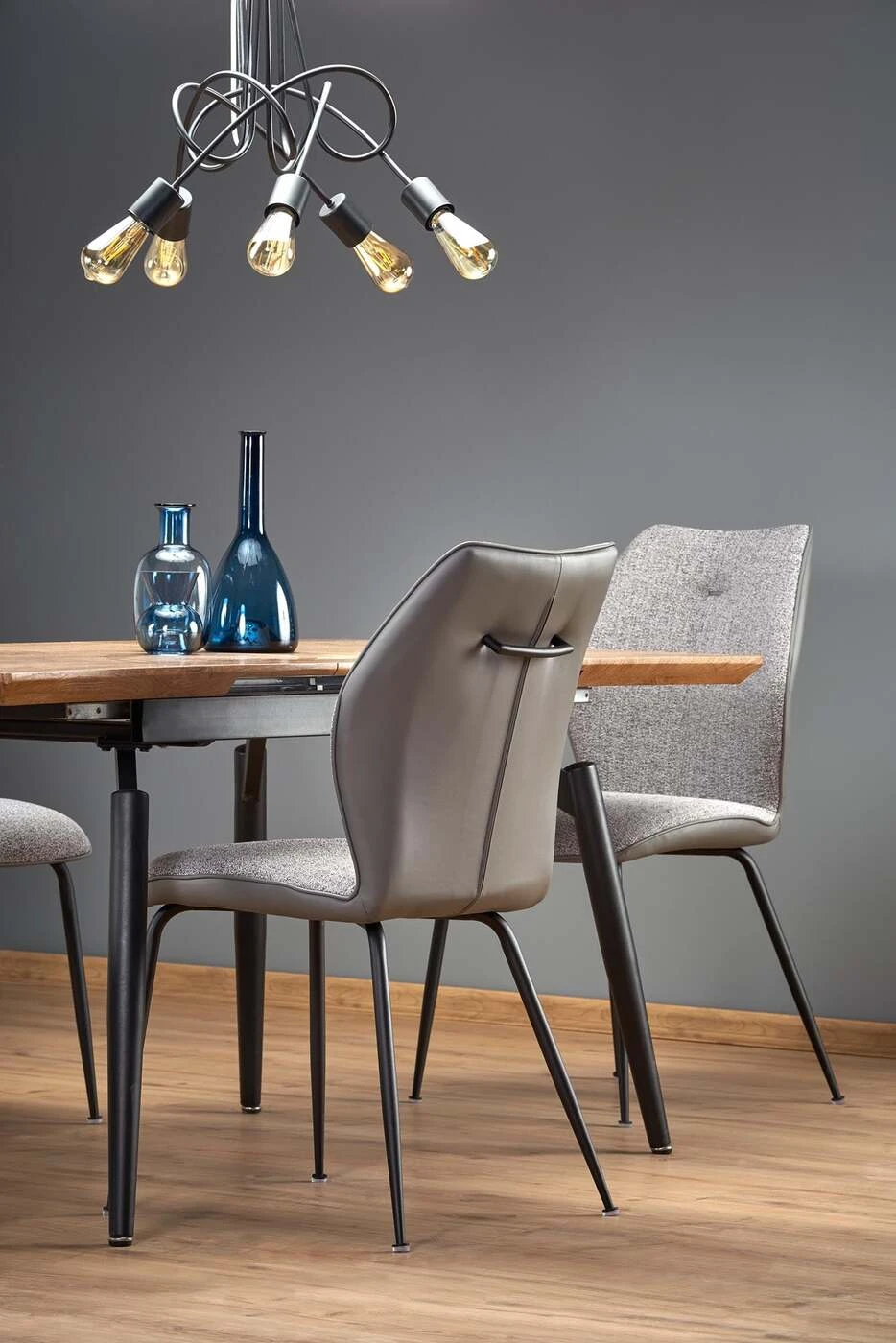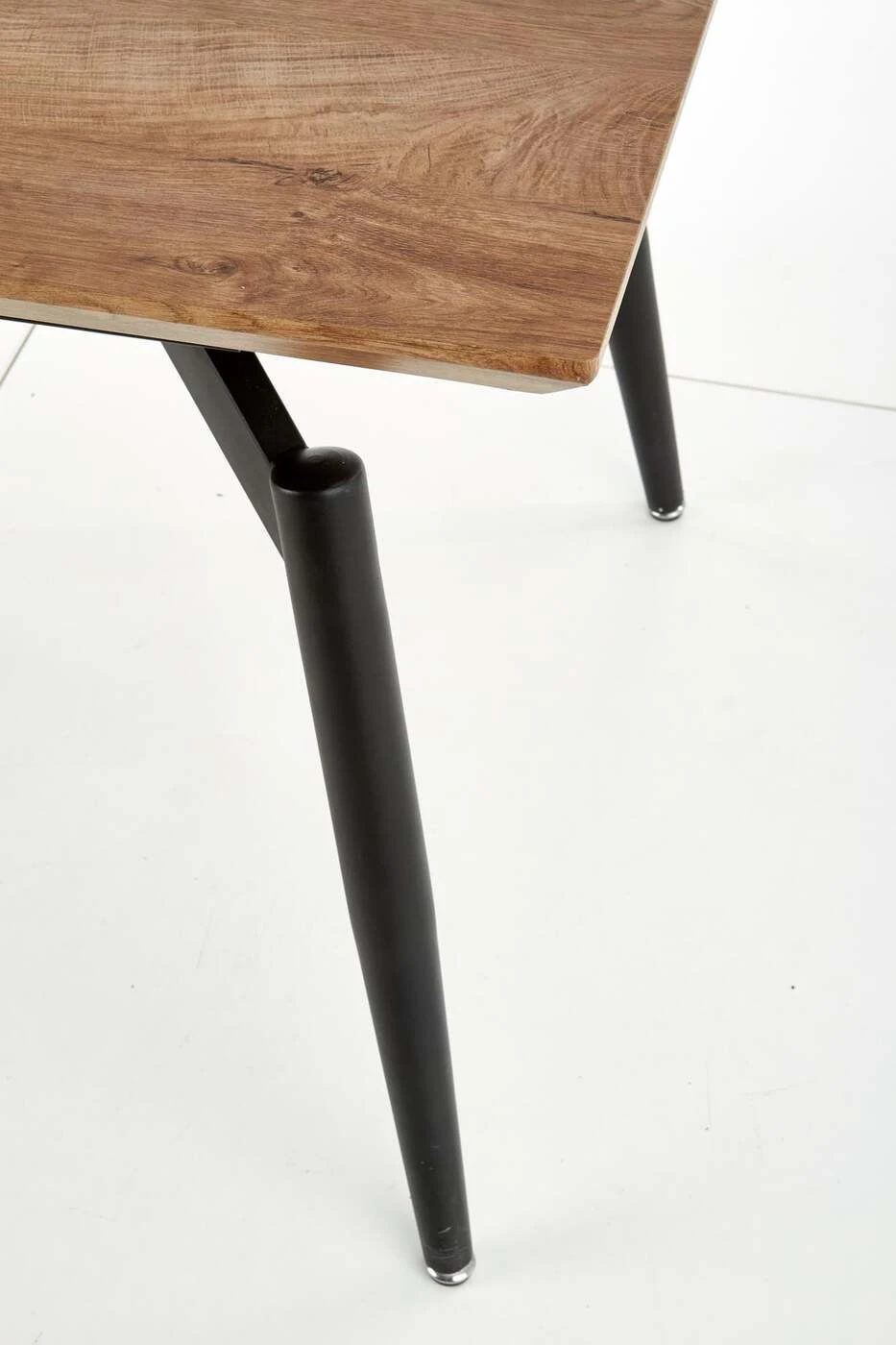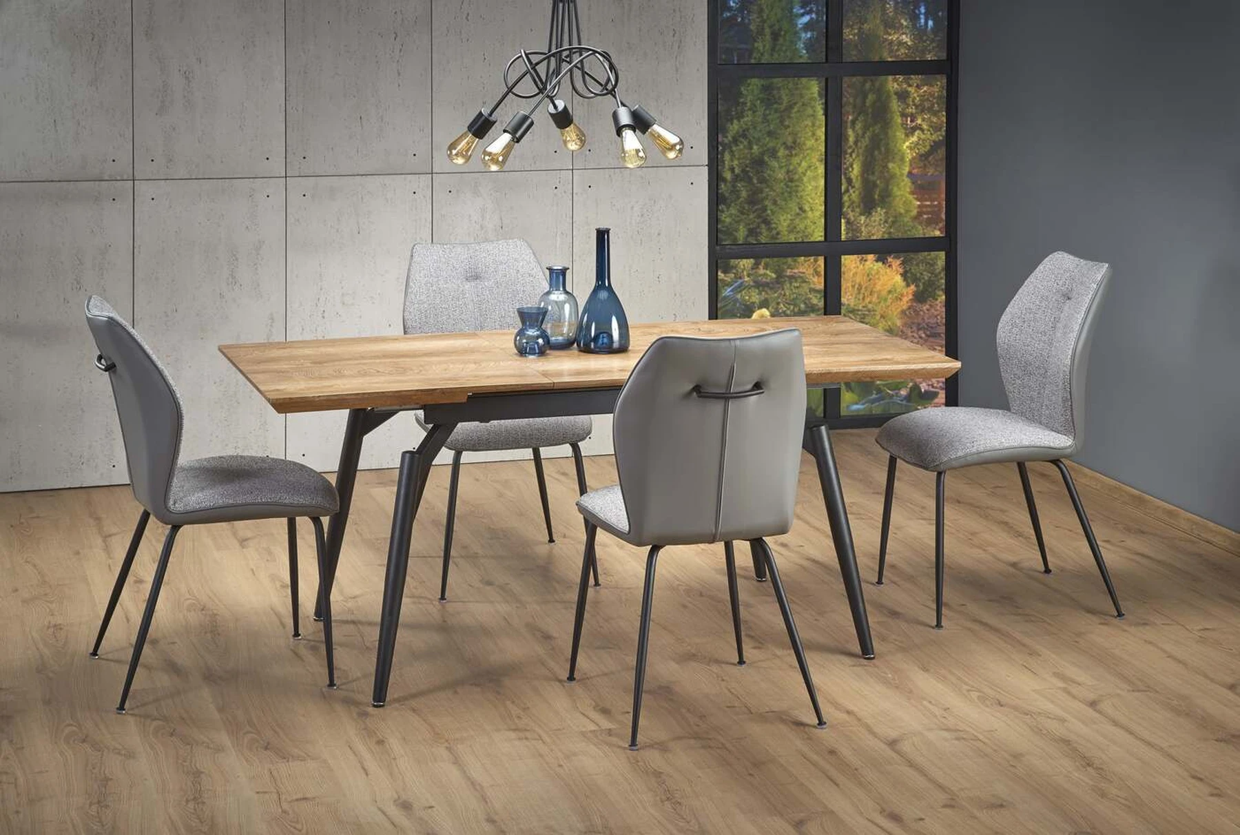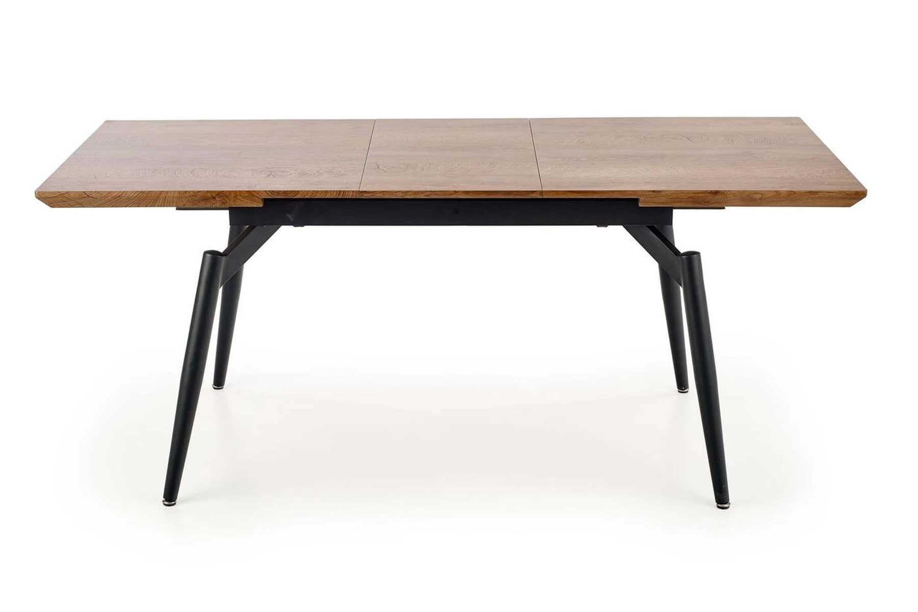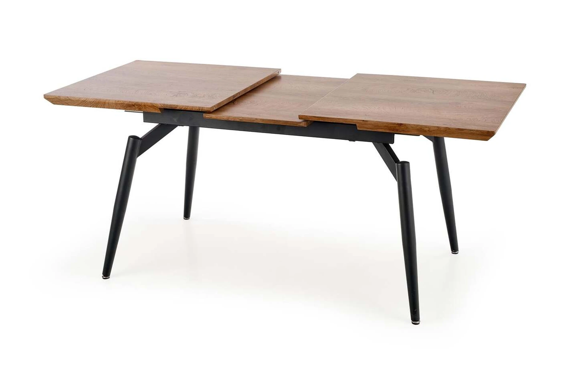 matmenys: 140-180/80/74 cm, prailginamas stalas, medžiaga: laminuotas MDF / milteliniu būdu dažytas plienas, spalva: viršus - natūralus ąžuolas, kojos - juodos