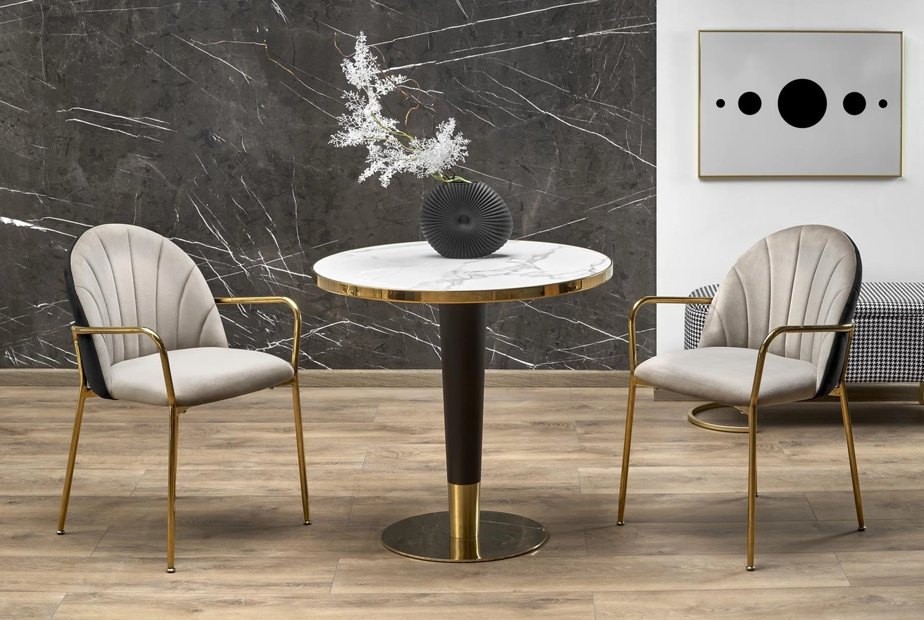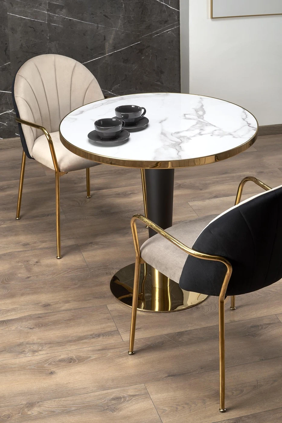 matmenys: fi79/74 cm, medžiaga: keramika / milteliniu būdu dengtas plienas / nerūdijantis plienas, spalva: viršus - baltas marmuras, kojos - juodas / auksas