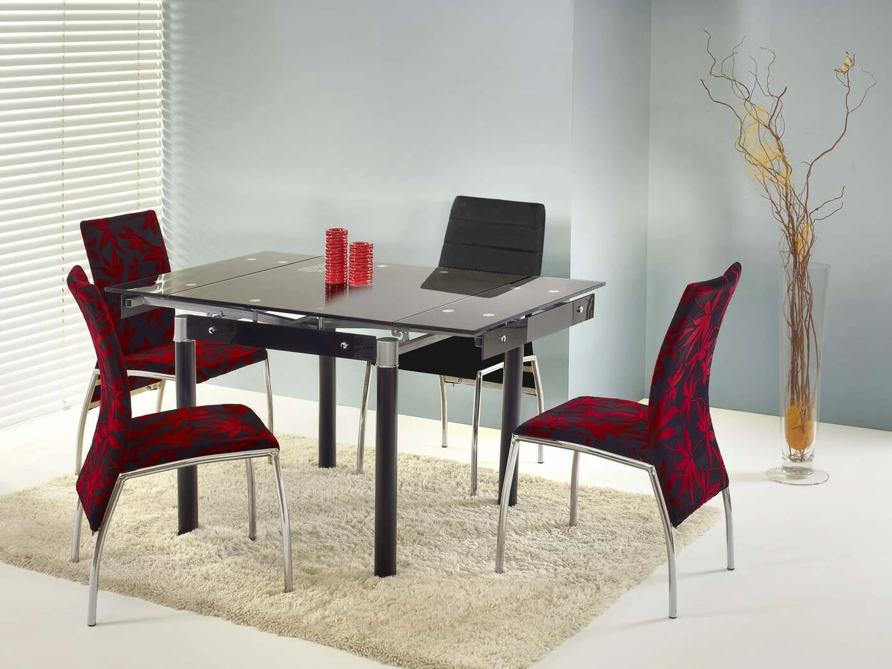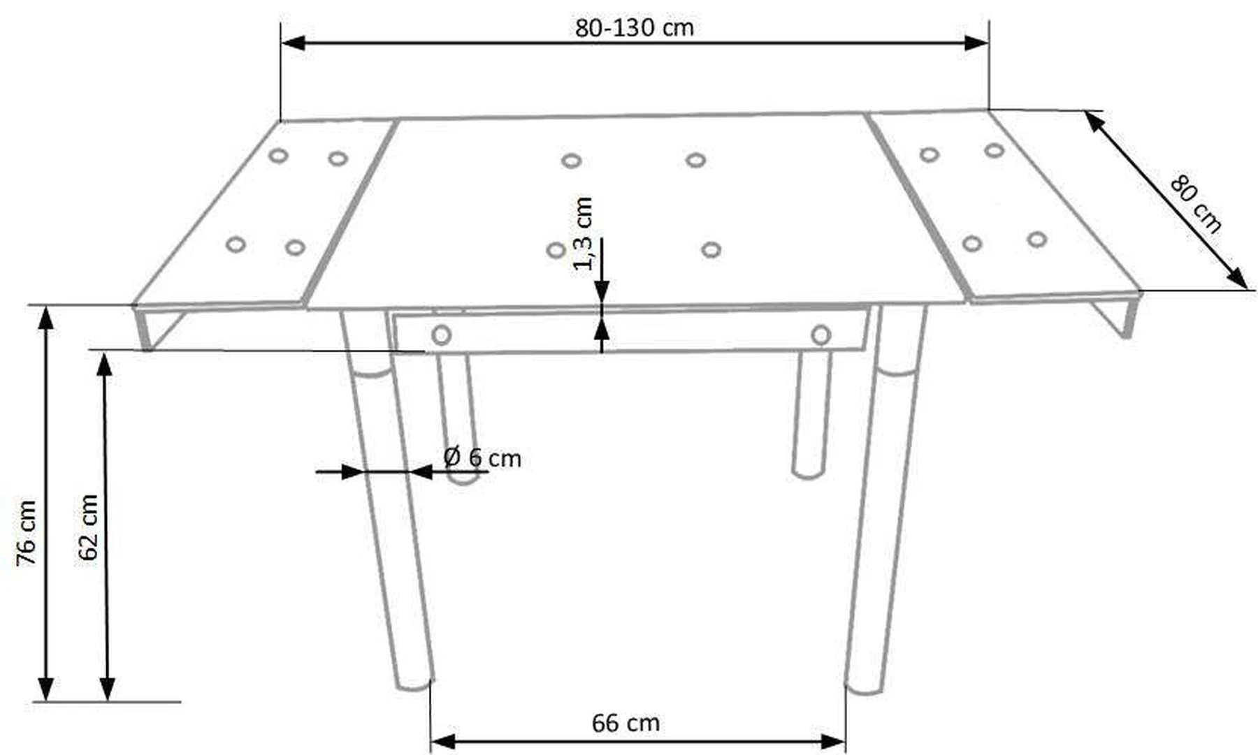 prailginimo stalas, matmenys: 80÷130/80/76 cm, medžiaga: stiklas / dažytas plienas, spalva: stiklas - juoda