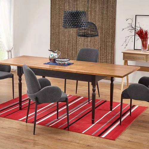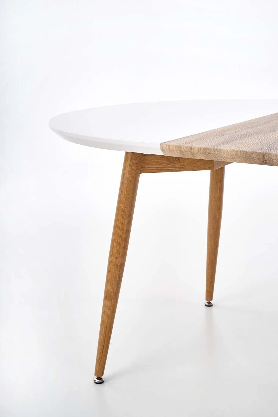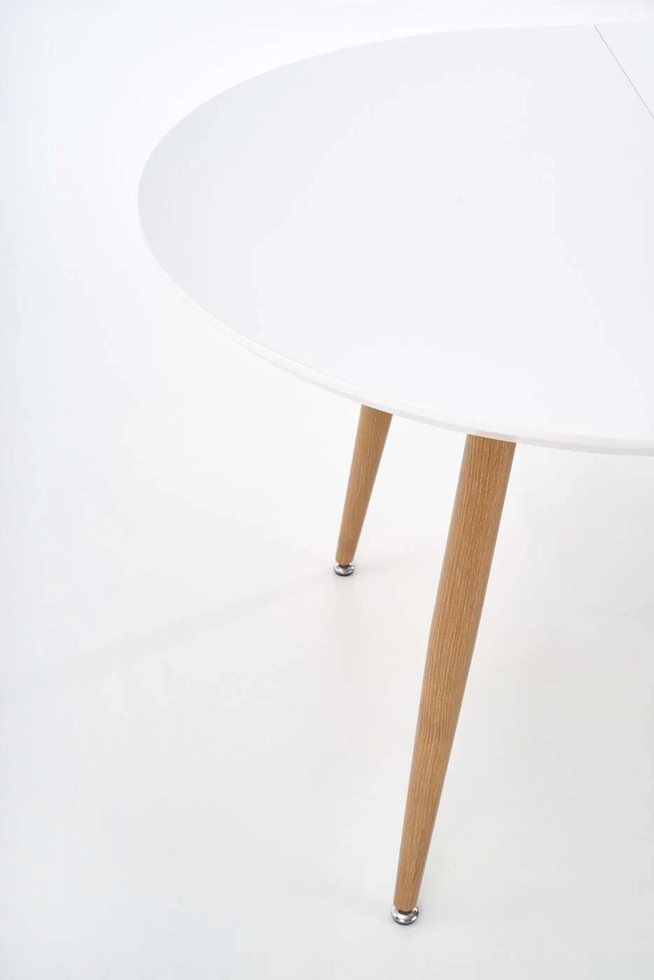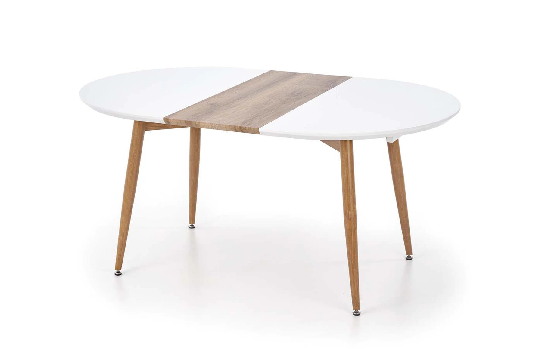 prailginamasis stalas, matmenys: 120-200/100/75 cm, medžiaga: lakuotas MDF / laminuotas MDF / dažytas plienas, spalva: viršus - baltas / medaus ąžuolas, kojos - medaus ąžuolas