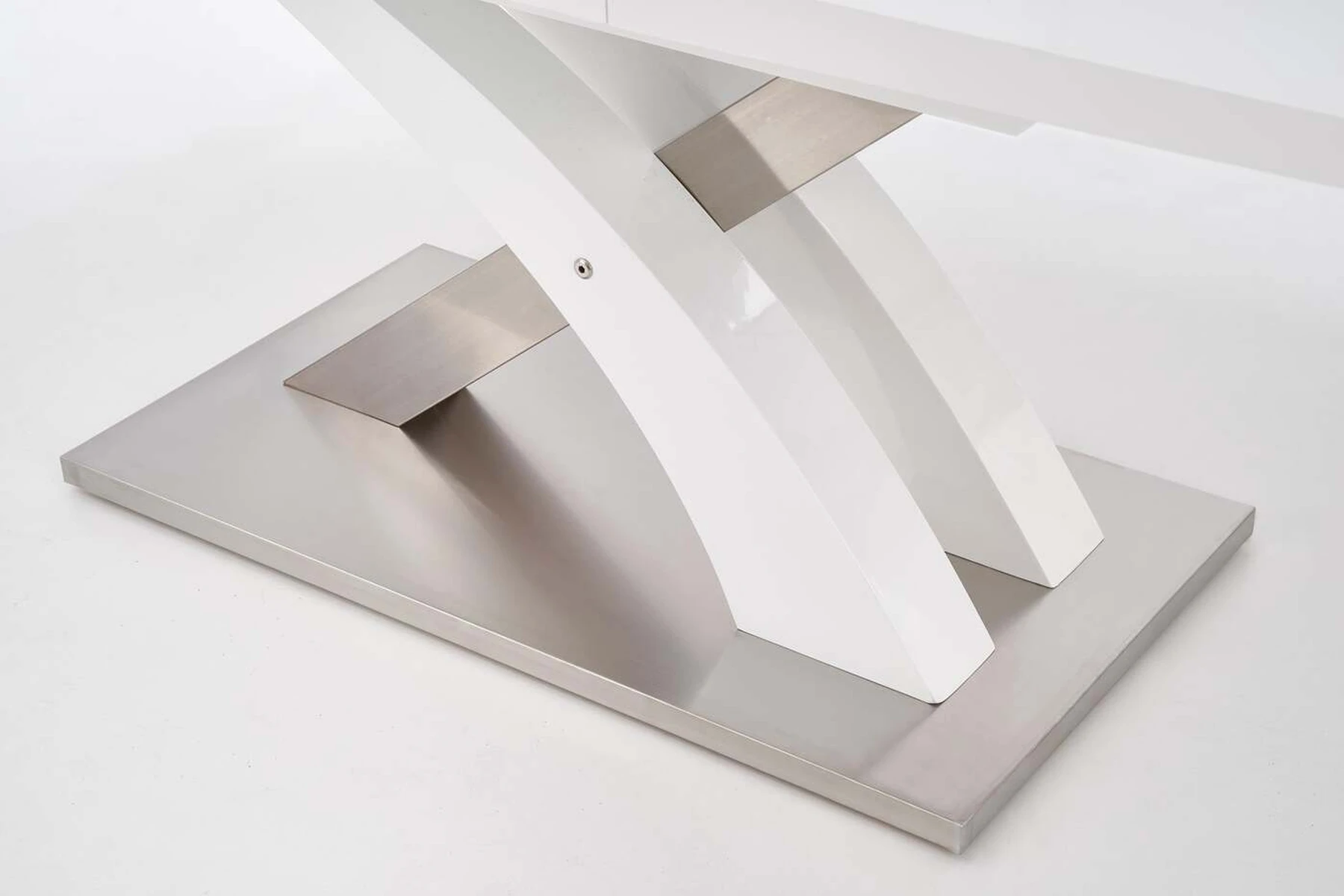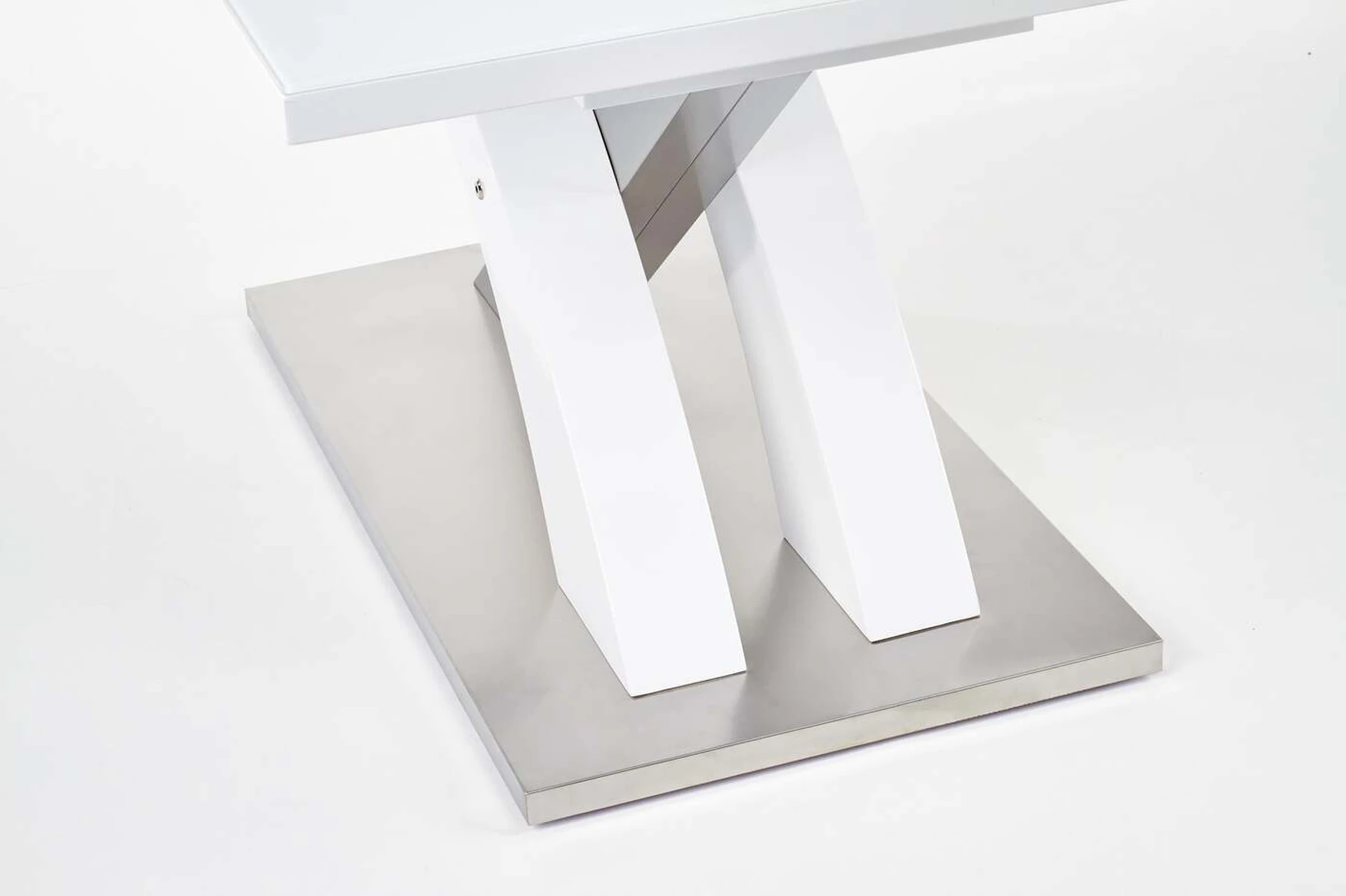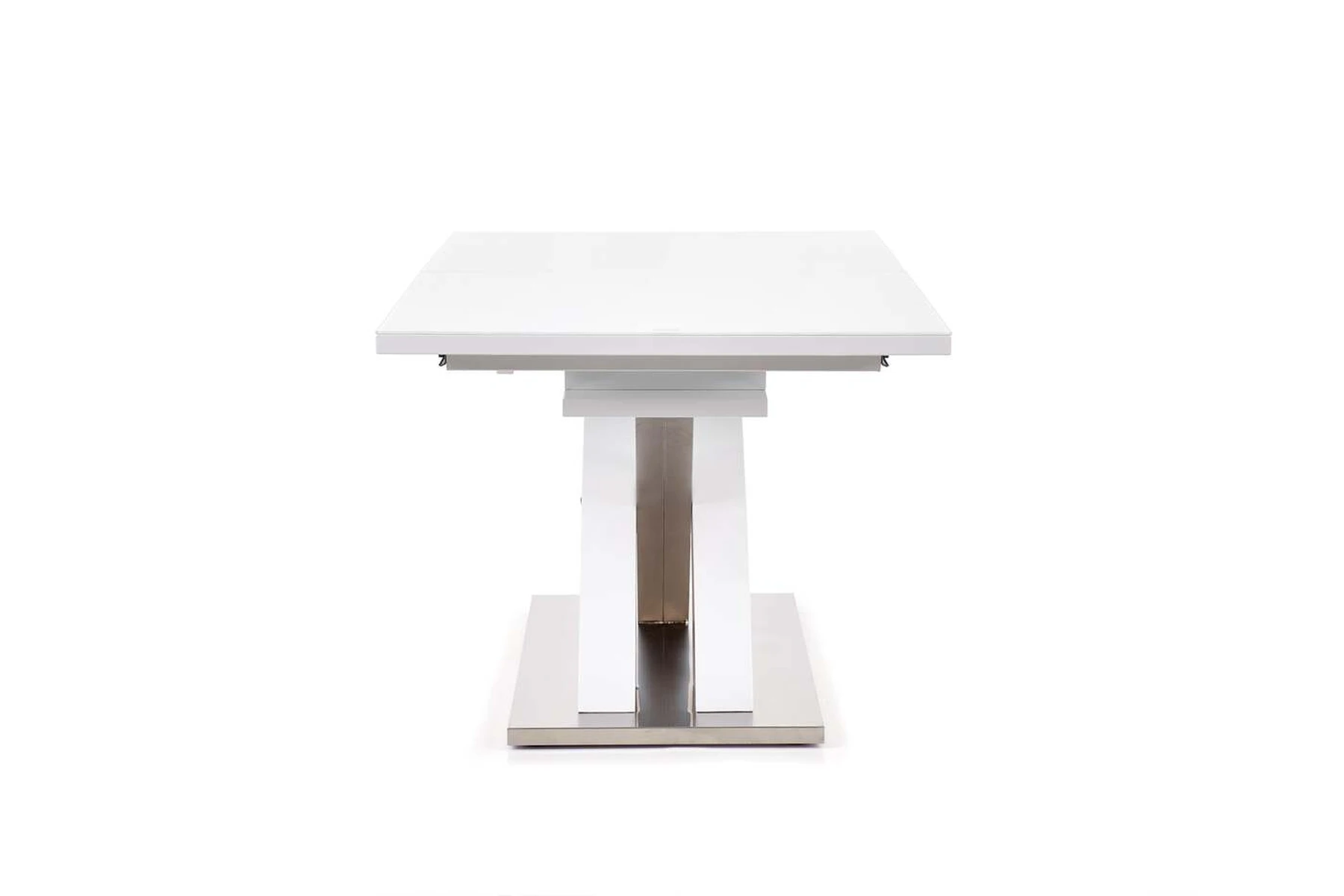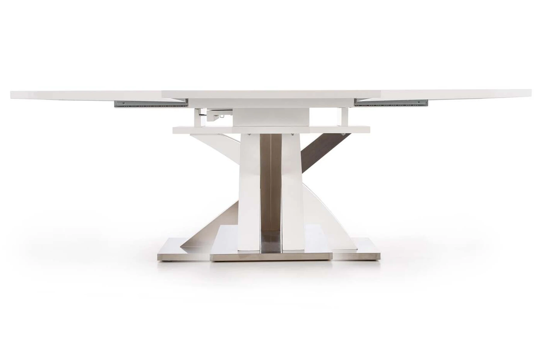 prailginamasis stalas, matmenys: 160÷220/90/78 cm, medžiaga: stiklas / lakuotas MDF / nerūdijantis plienas, spalva: stiklas - ypač balta, MDF - balta