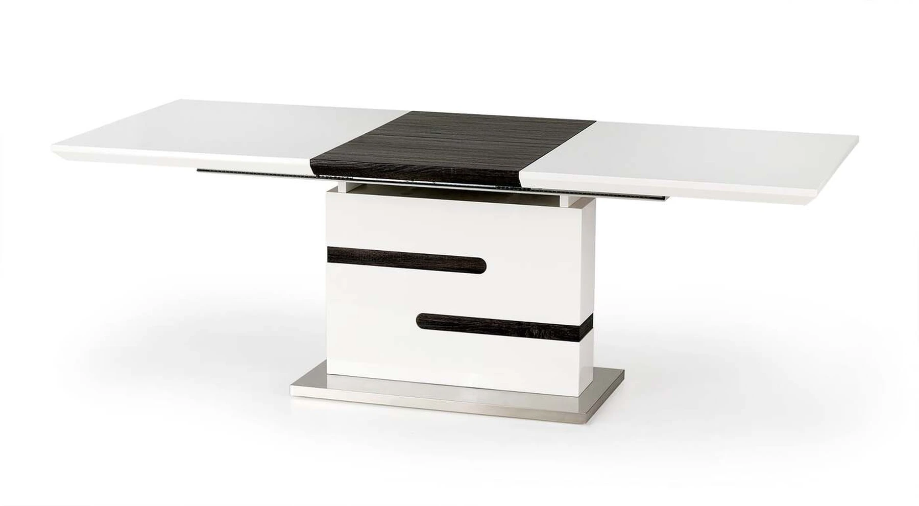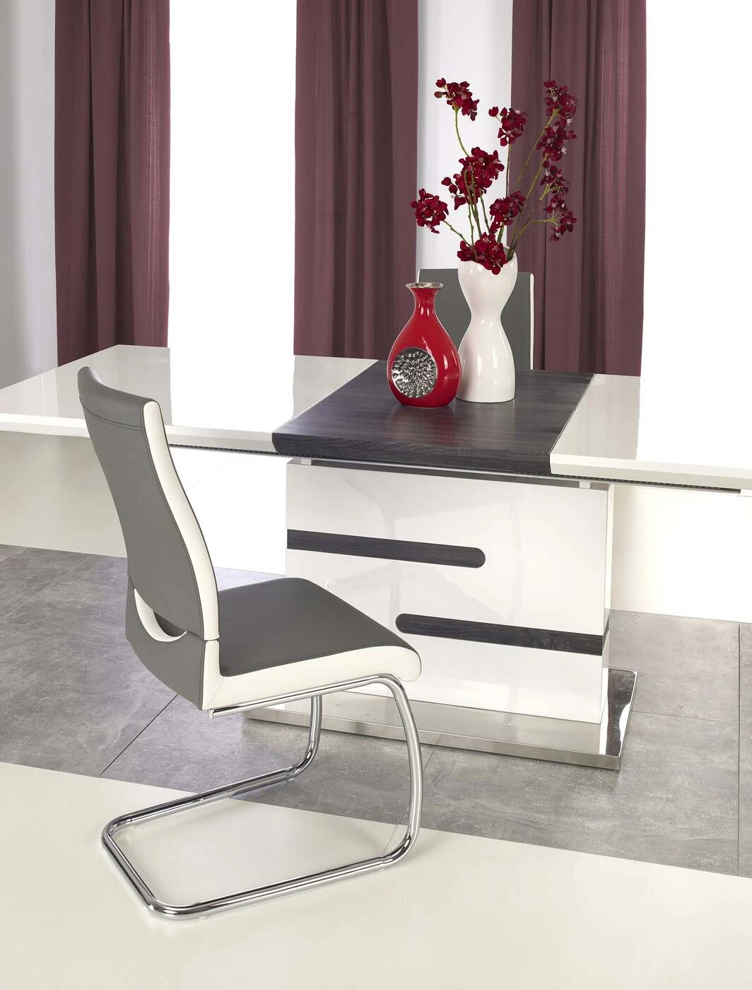 prailginamasis stalas, matmenys: 160-220/90/76 cm, medžiaga: lakuotas MDF / laminuotas MDF / nerūdijantis plienas, spalva: balta / pilka
