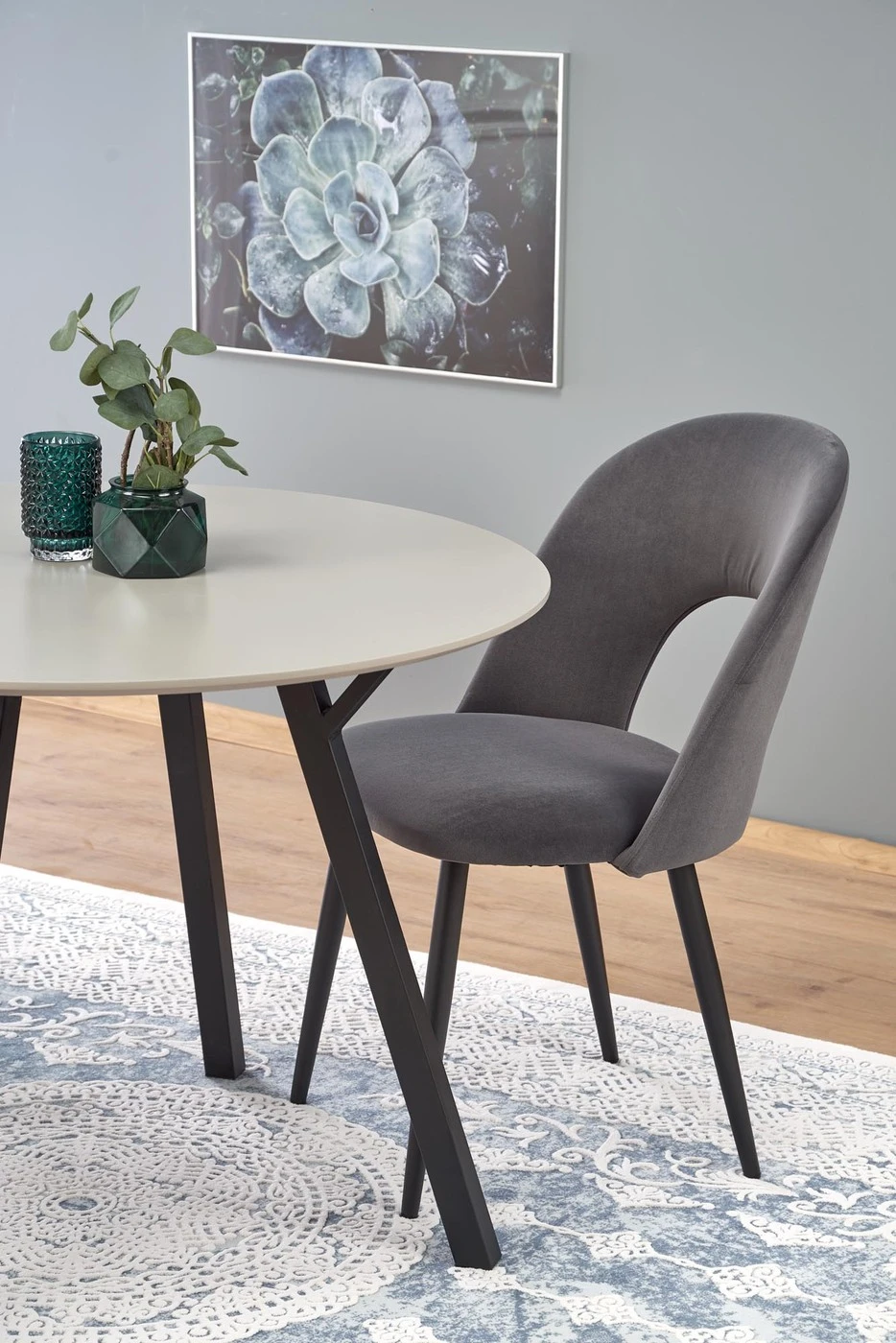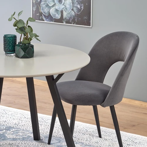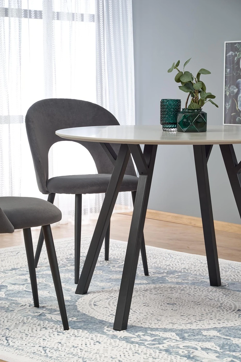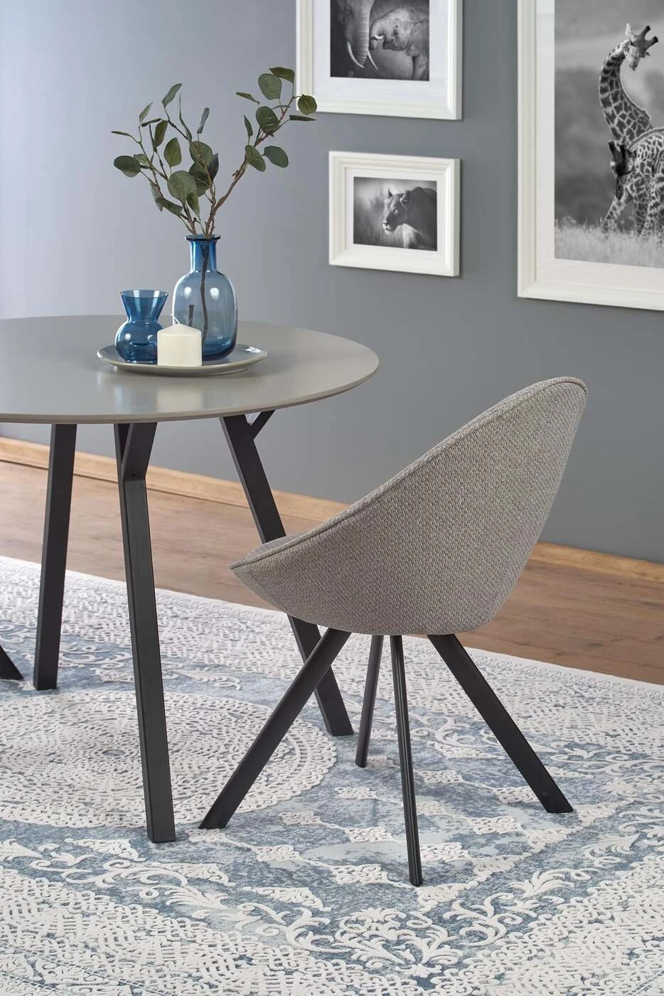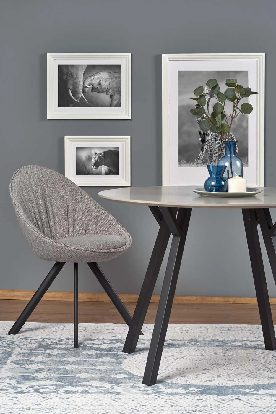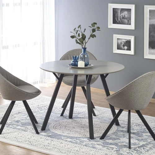 matmenys: o100/74 cm, medžiaga: lakuotas MDF / milteliniu būdu dažytas plienas, spalva: viršus - šviesiai pilka, kojos - juodos