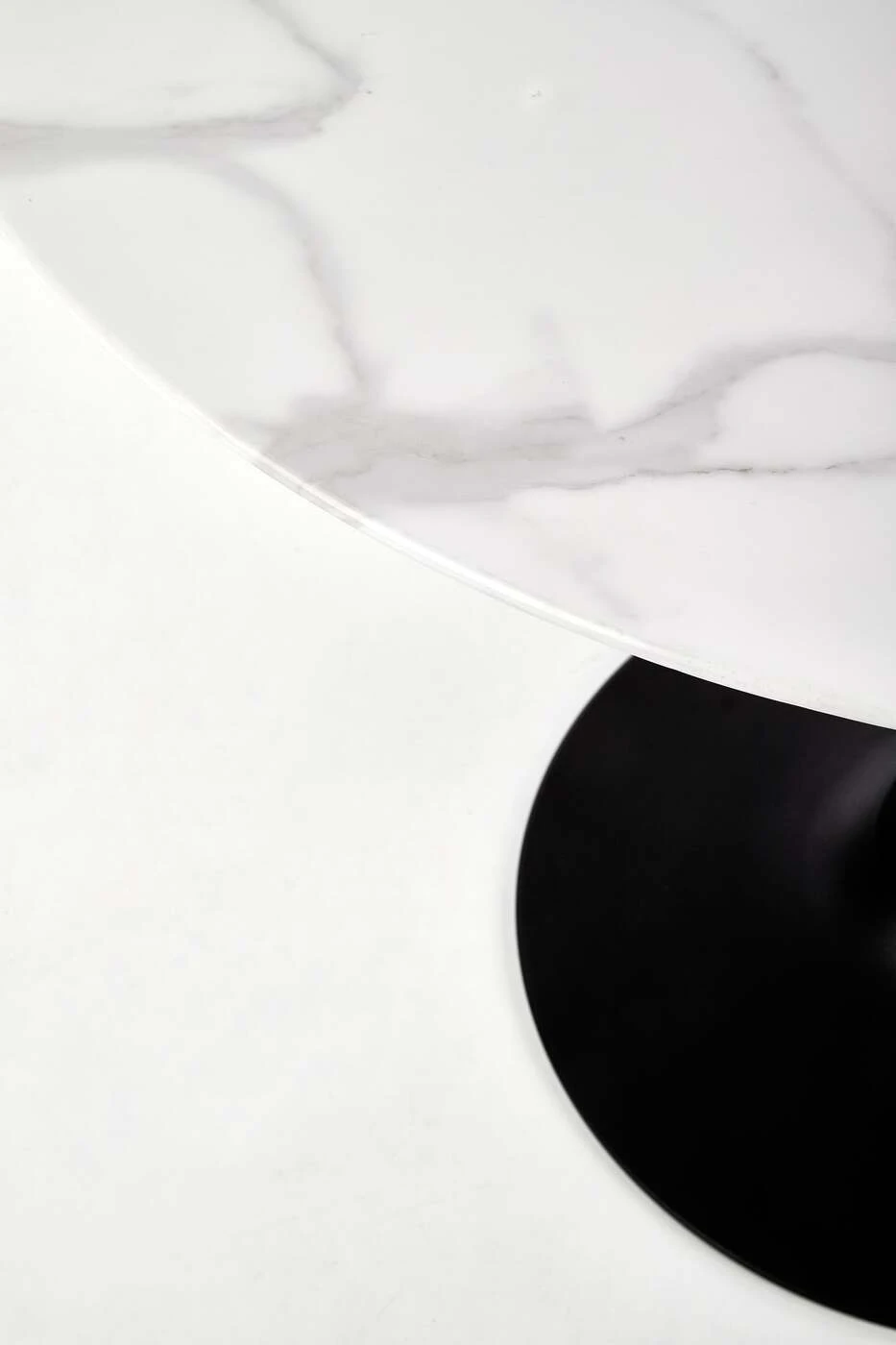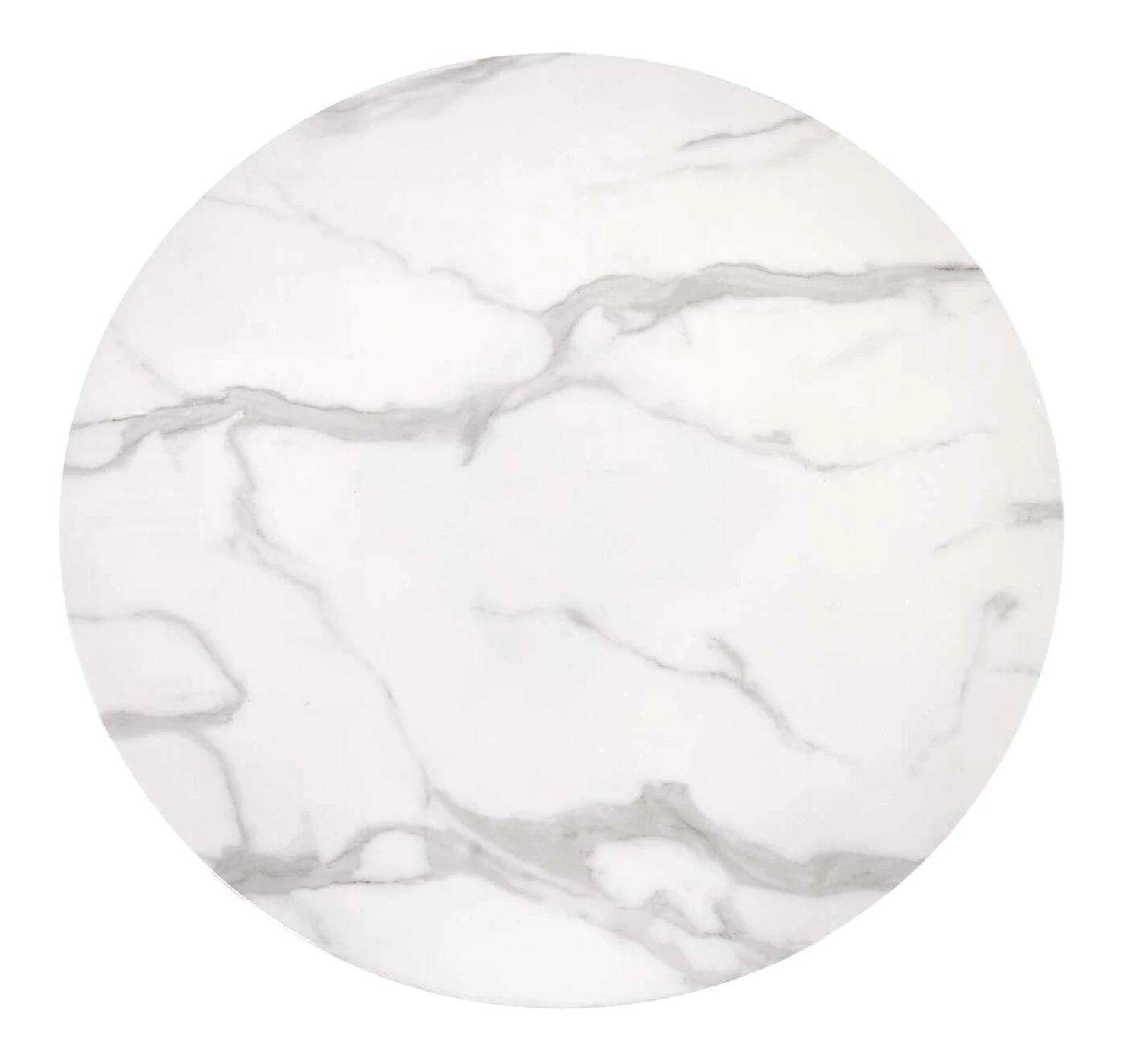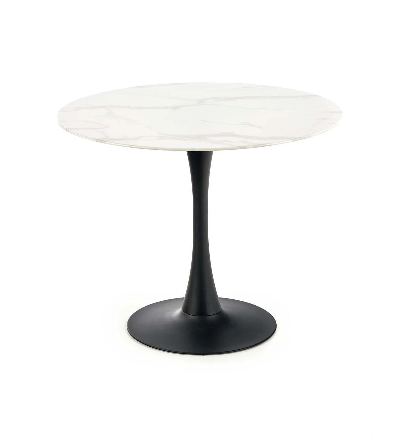matmenys: o90/72 cm, medžiaga: stiklas / milteliniu būdu dažytas plienas, spalva: viršus - baltas marmuras, kojos - juodos