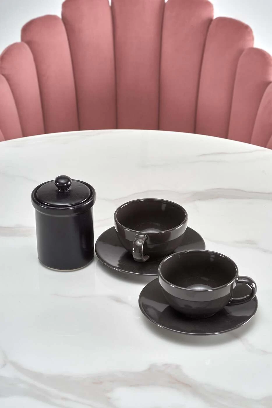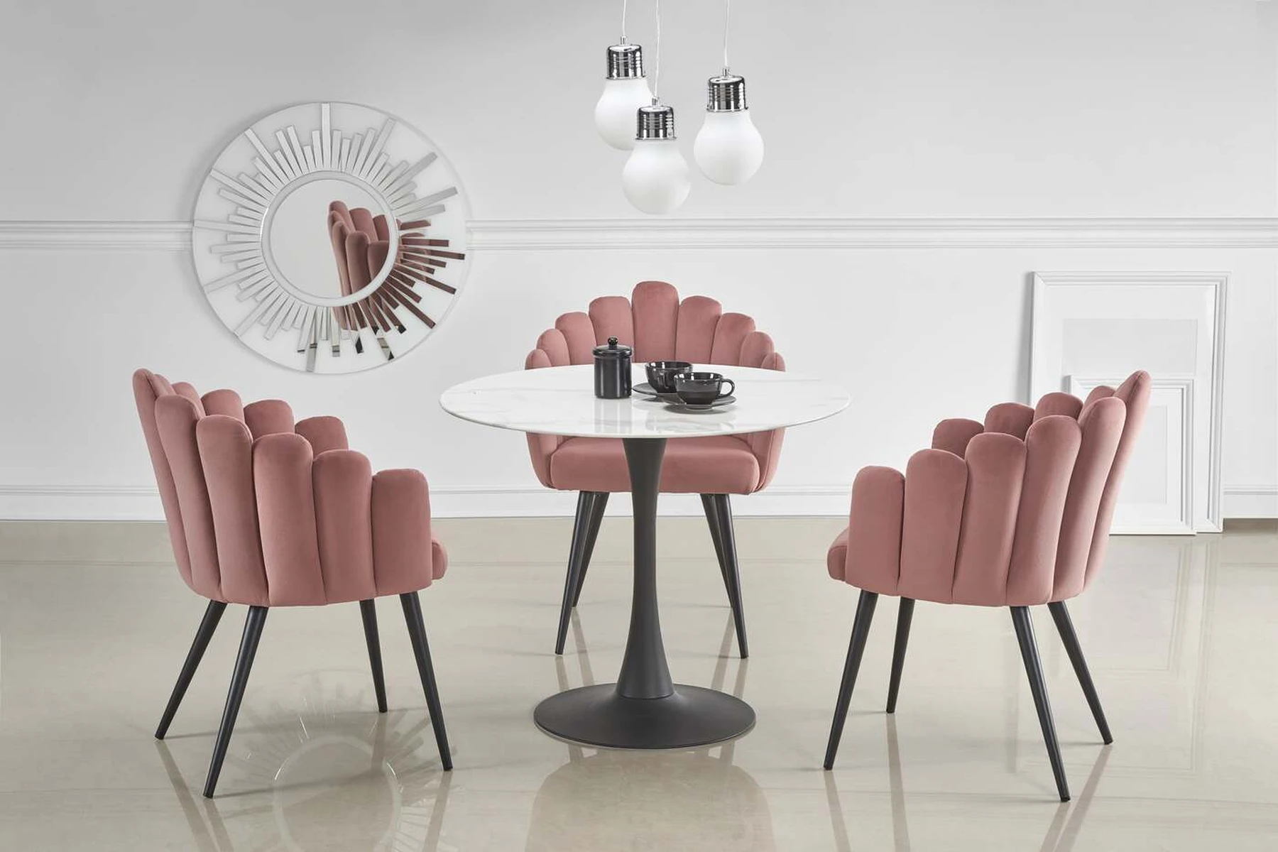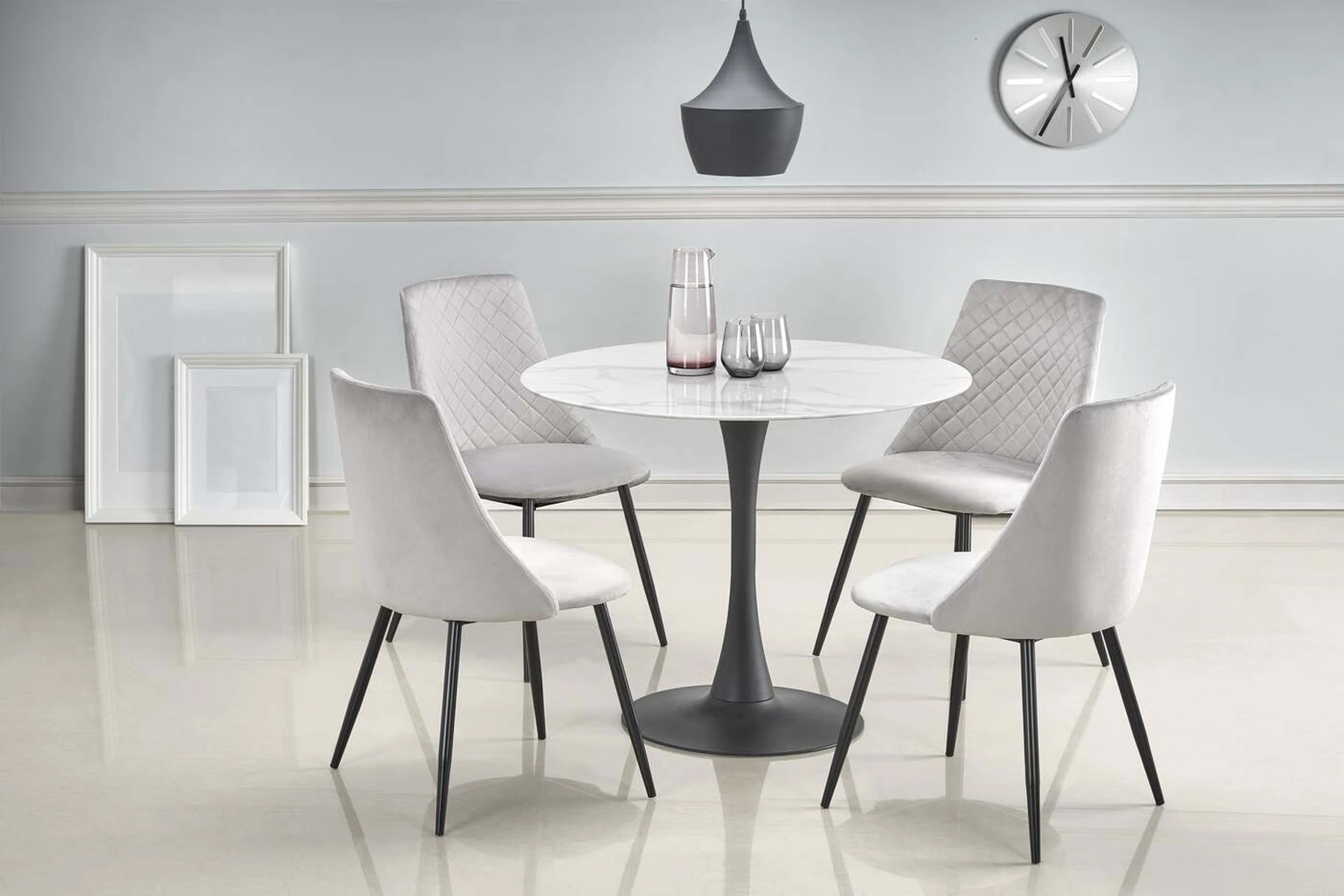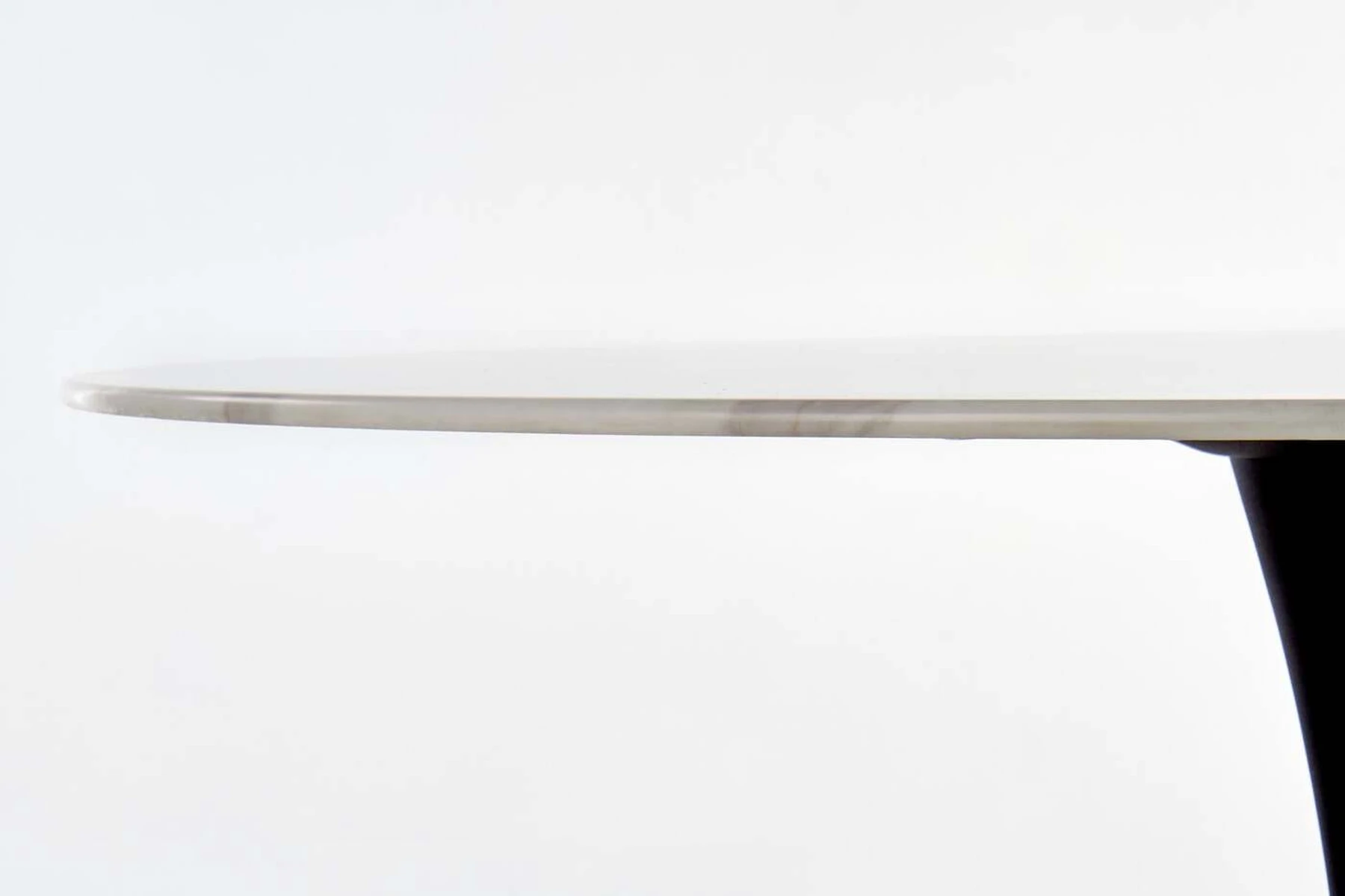 matmenys: o90/72 cm, medžiaga: stiklas / milteliniu būdu dažytas plienas, spalva: viršus - baltas marmuras, kojos - juodos