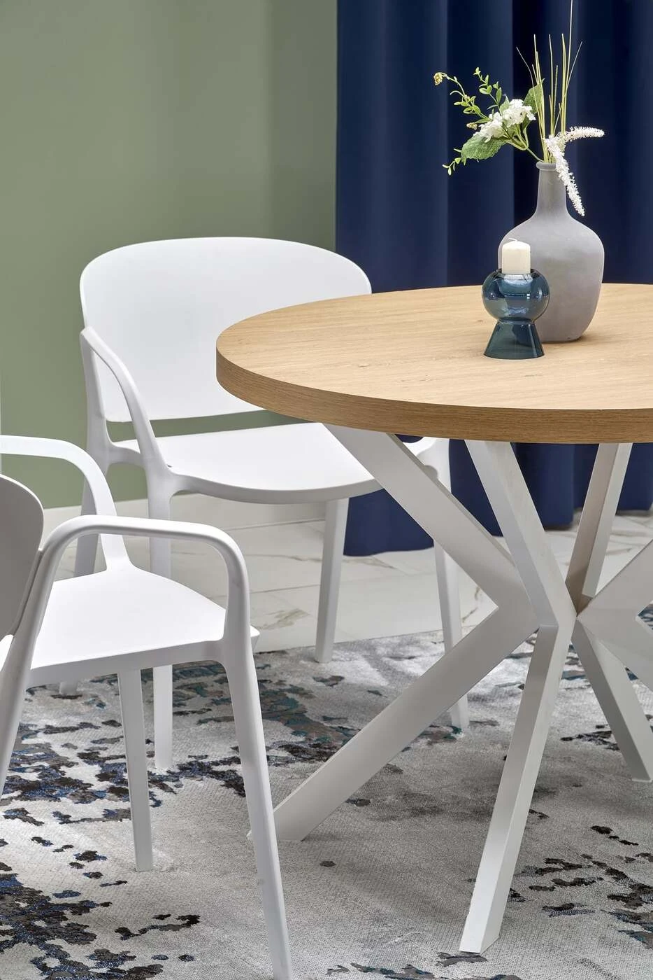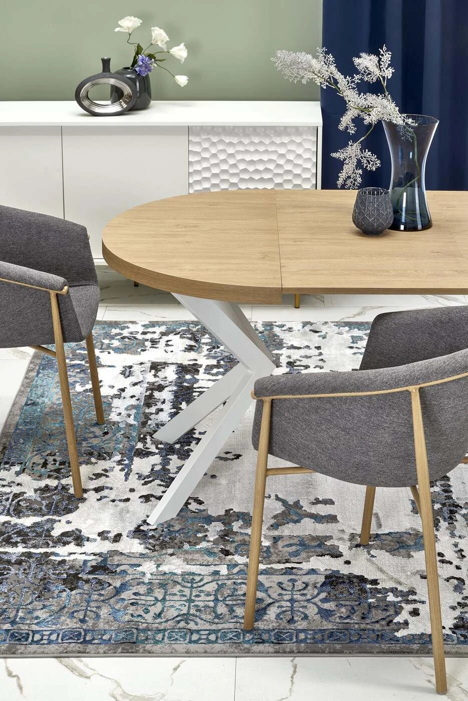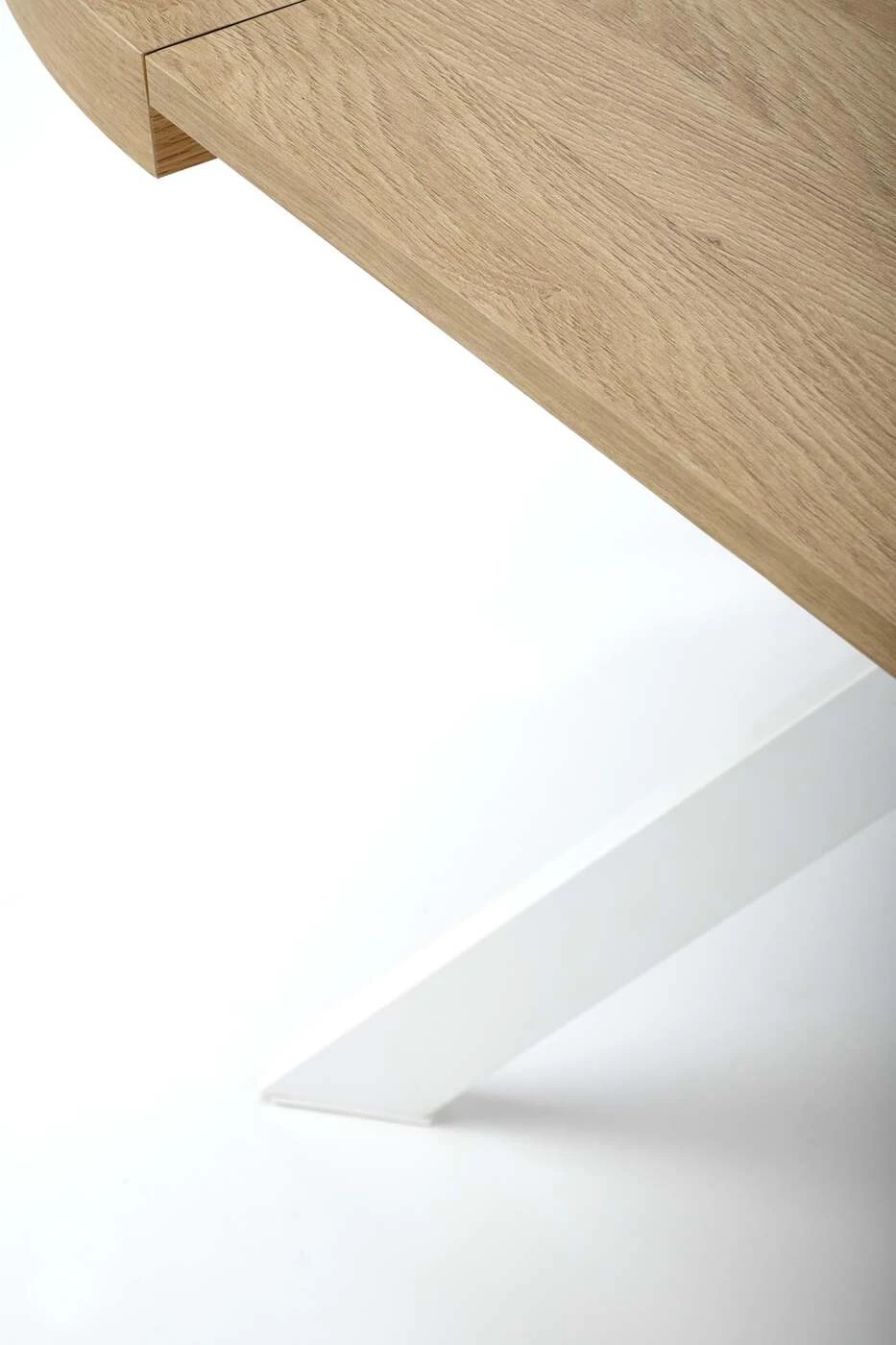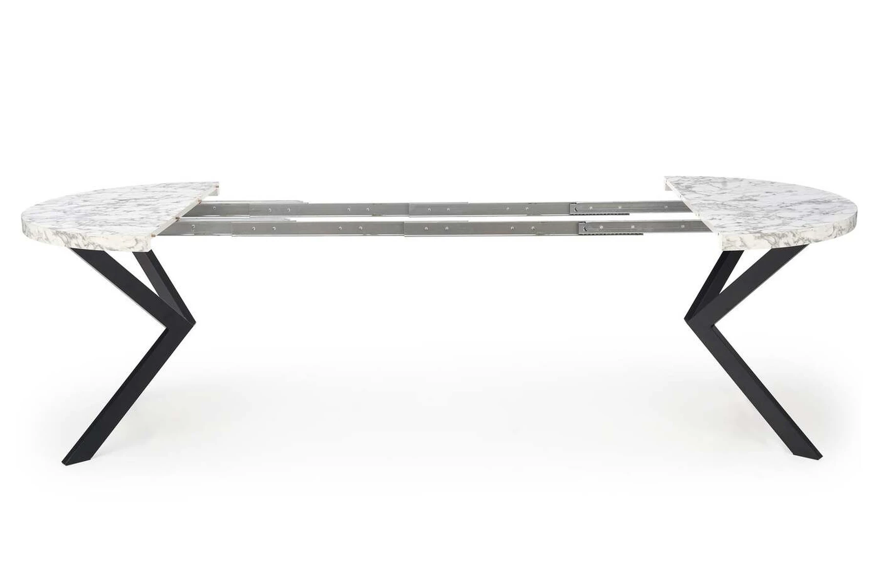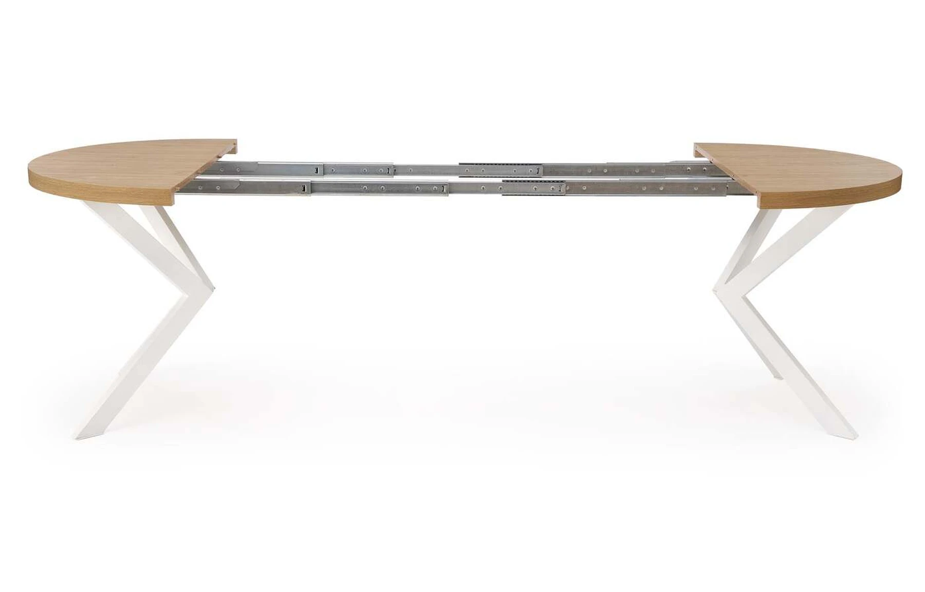 matmenys: fi100-250/100/75 cm, prailginamasis stalas, medžiaga: laminuota medžio drožlių plokštė / milteliniu būdu dažytas plienas, spalva: auksinis ąžuolas / balta