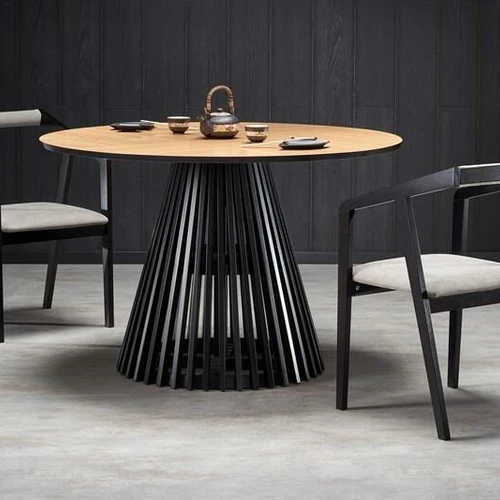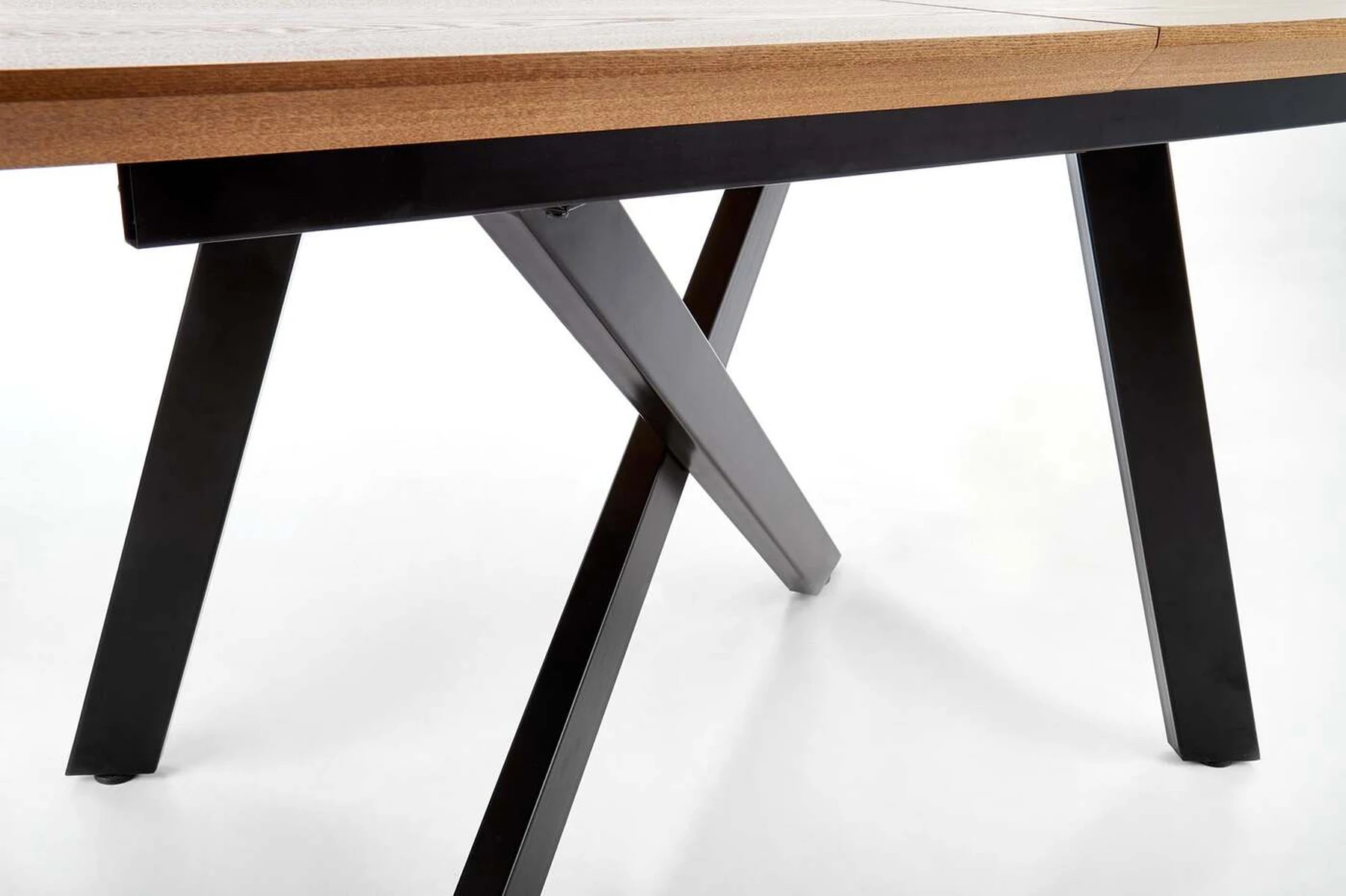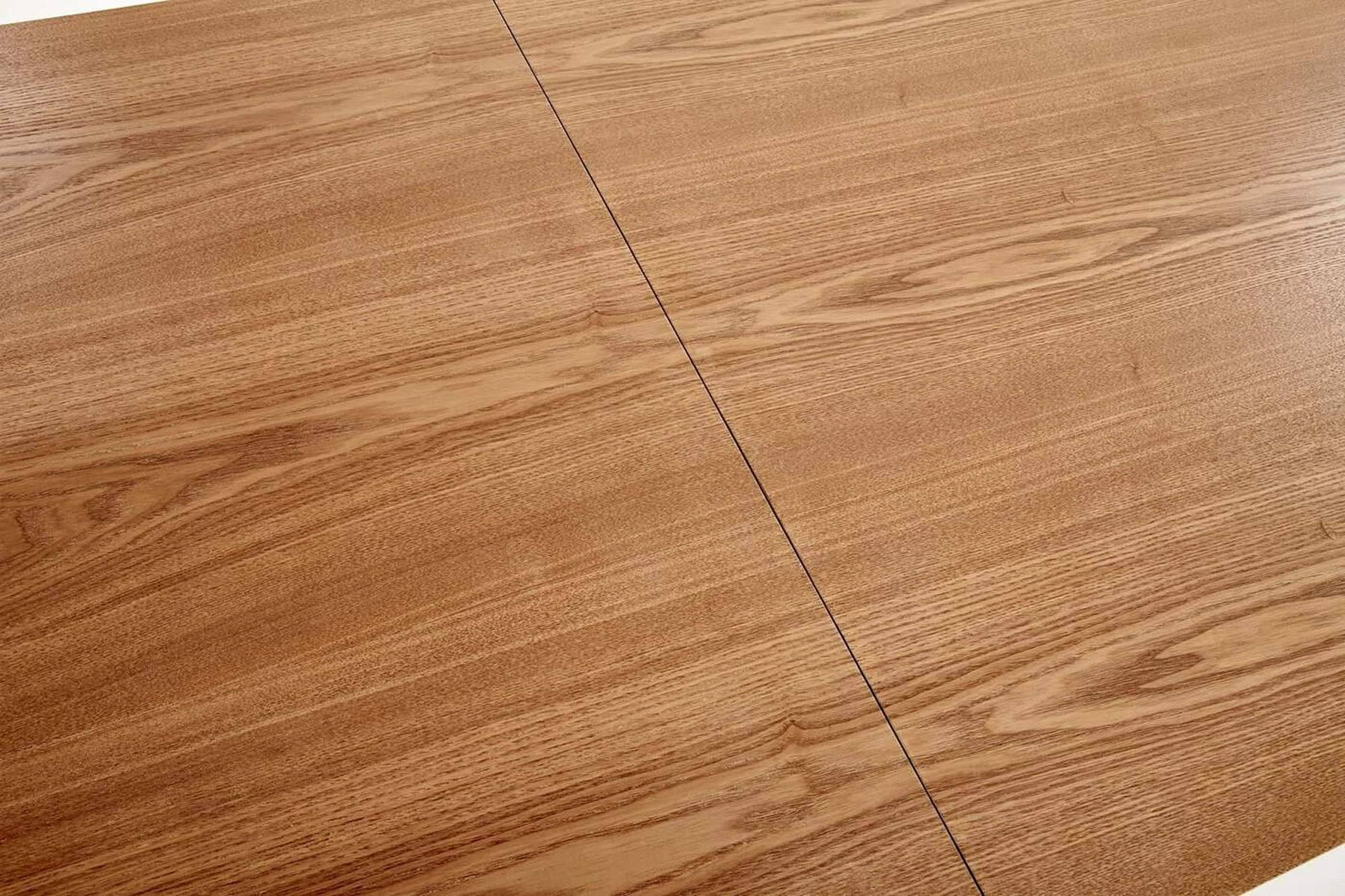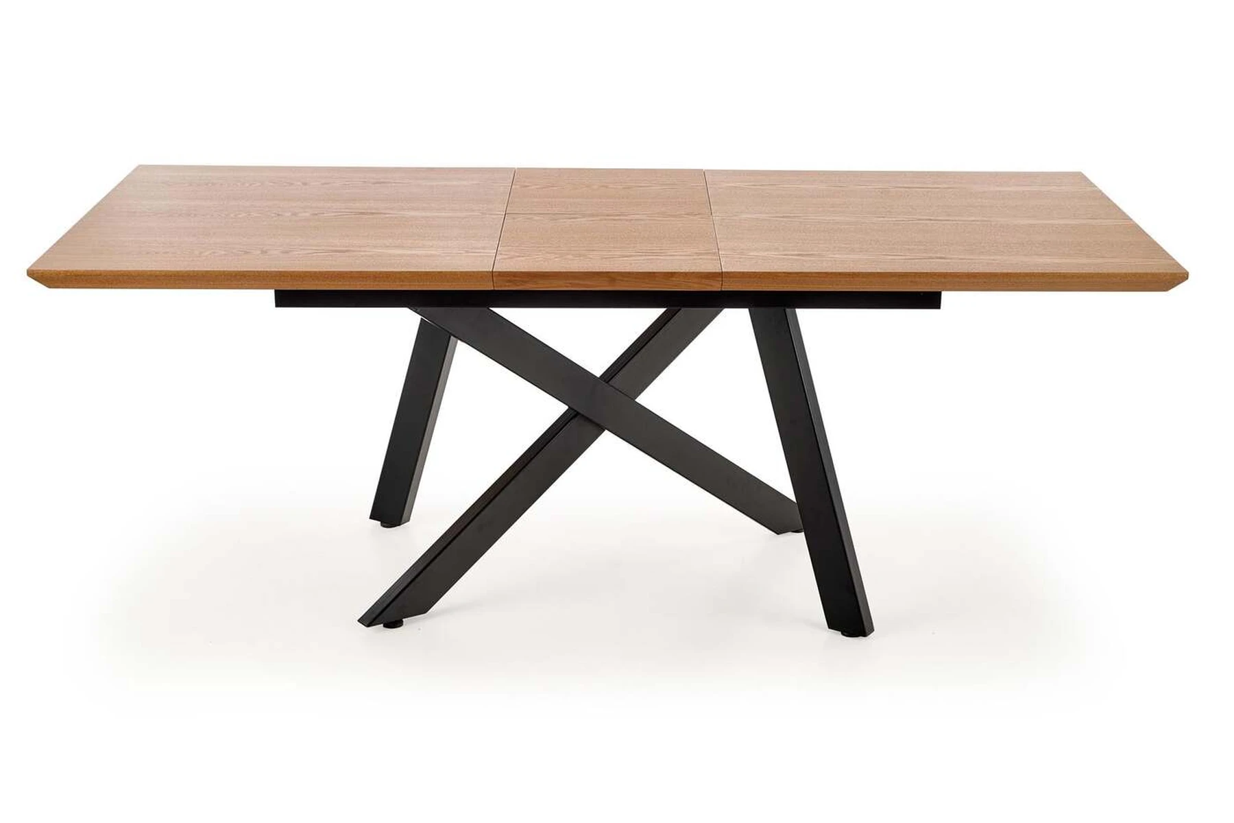 matmenys: 160-200/90/76 cm, prailginamasis stalas, medžiaga: MDF + natūrali fanera / milteliniu būdu dažytas plienas, spalva: viršus - natūralus ąžuolas, kojos - juodos