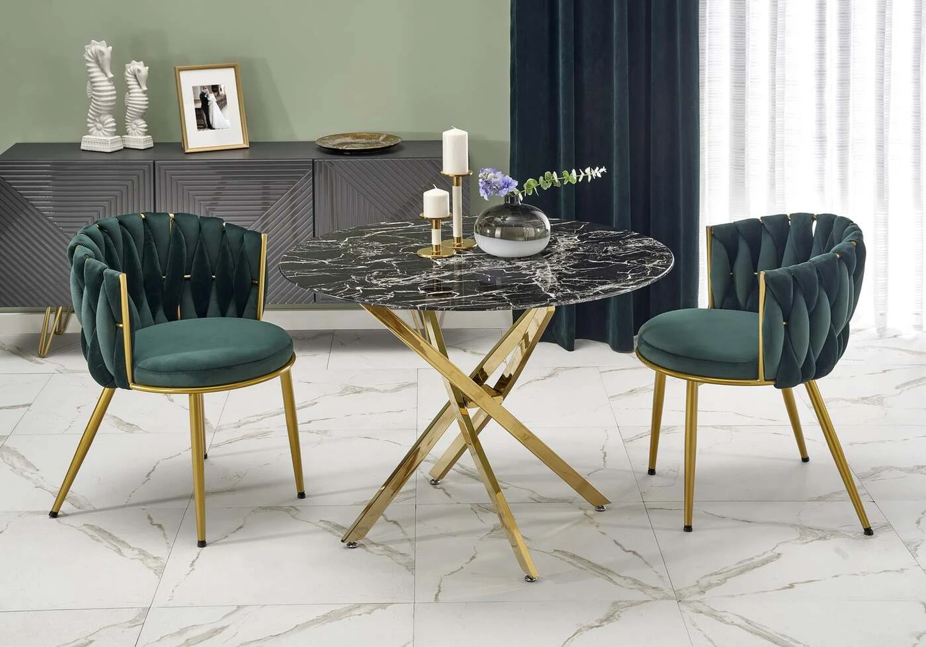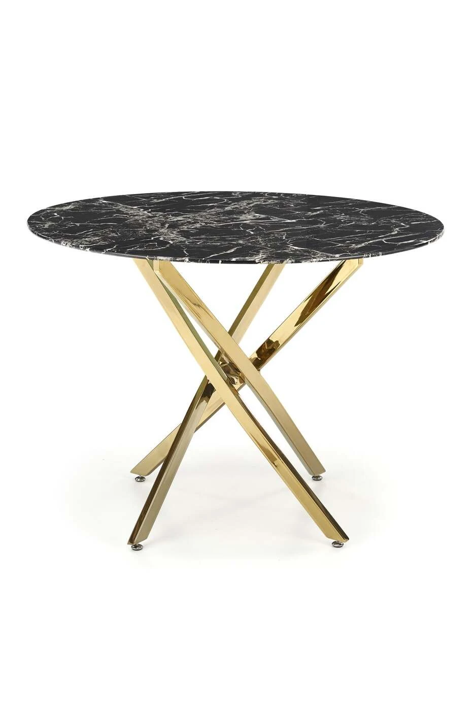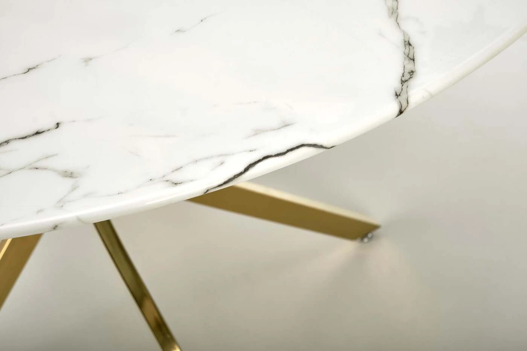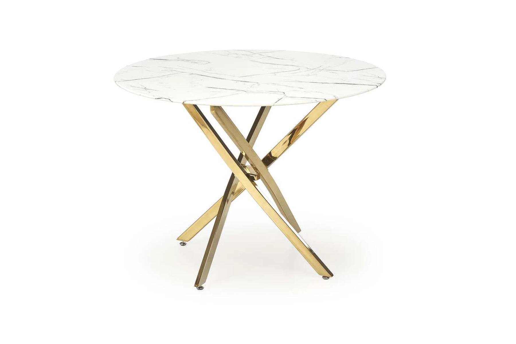 matmenys: fi100/73 cm, medžiaga: stiklas / chromo plienas, spalva: viršus - baltas marmuras, kojos - auksas