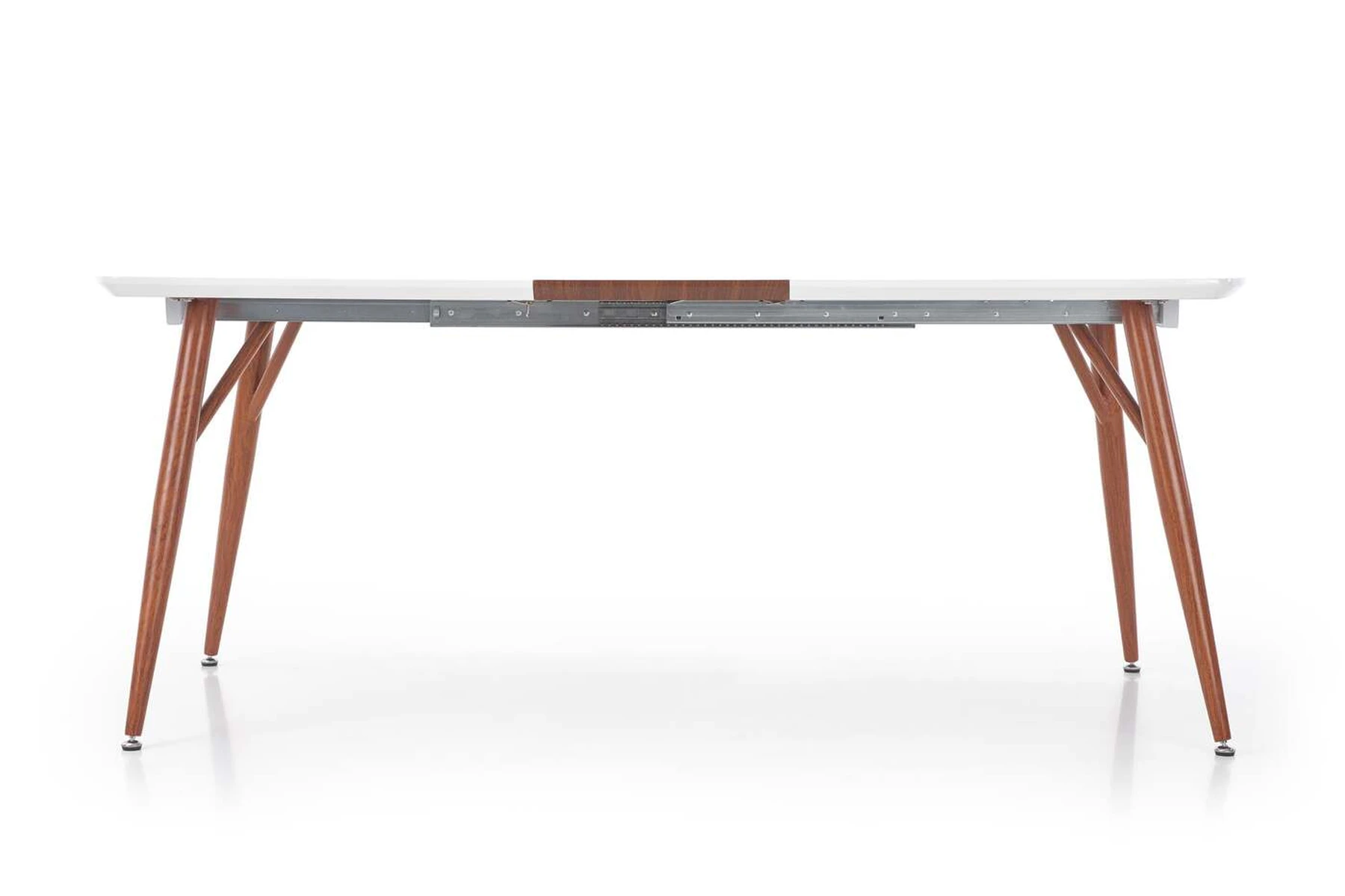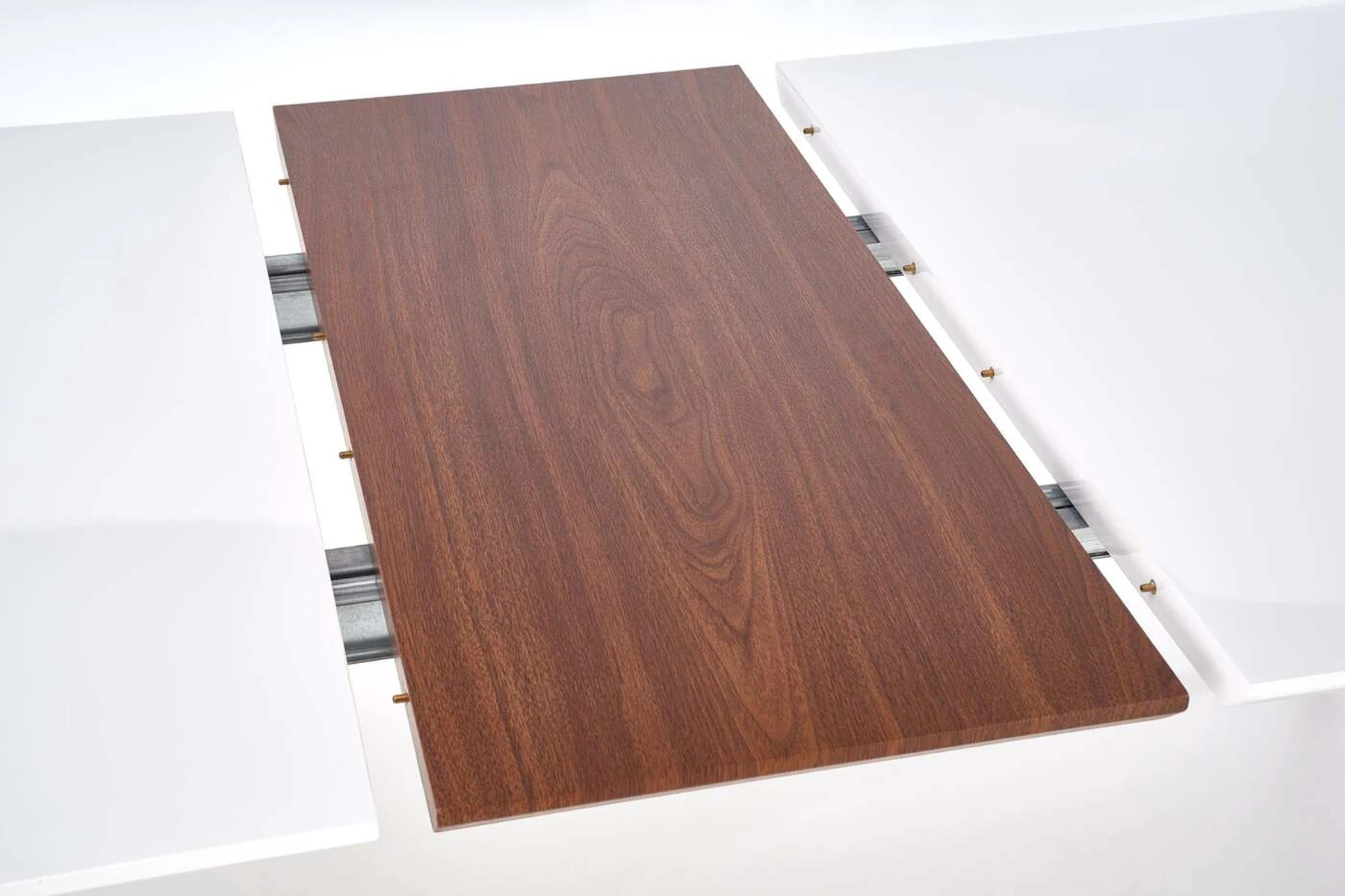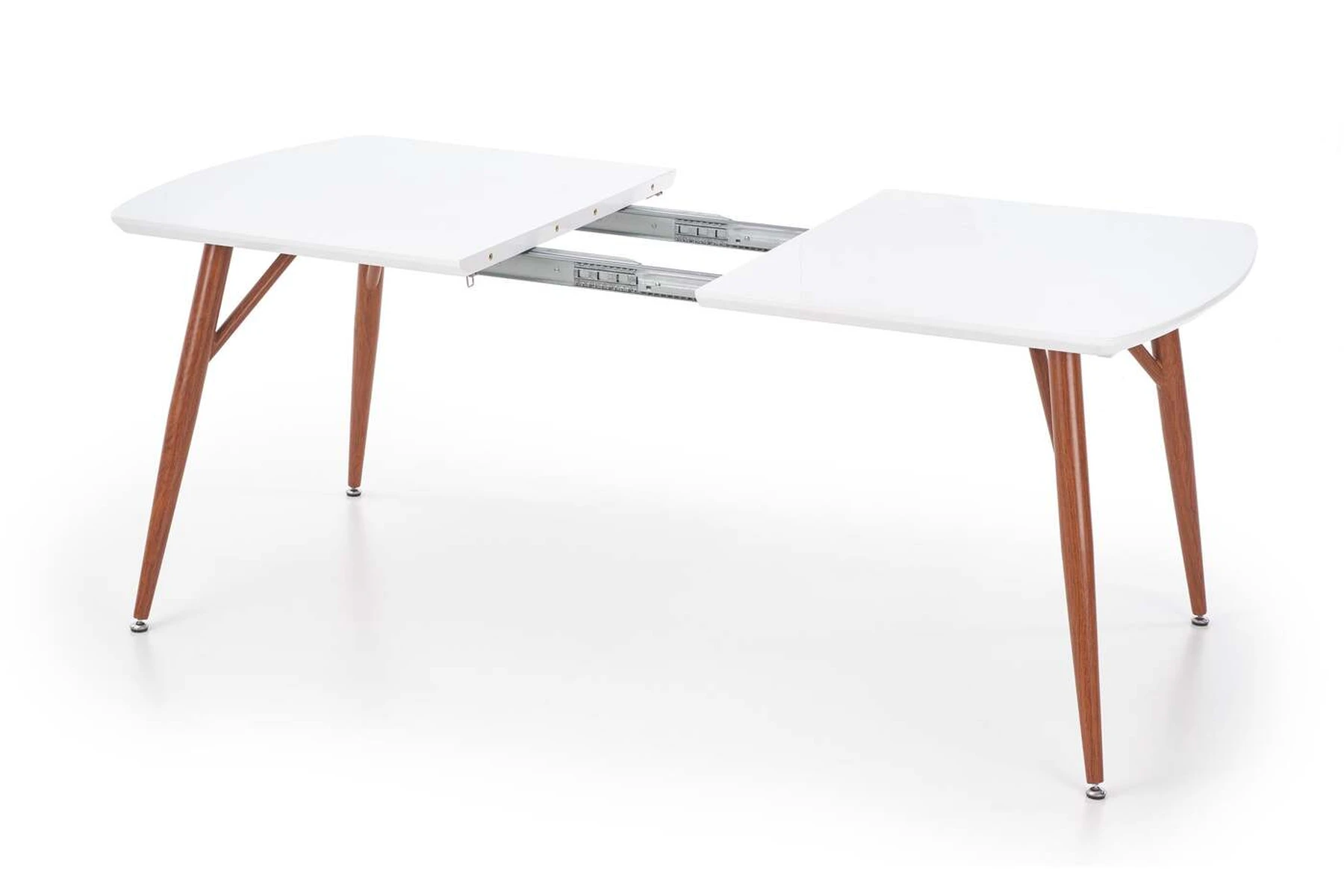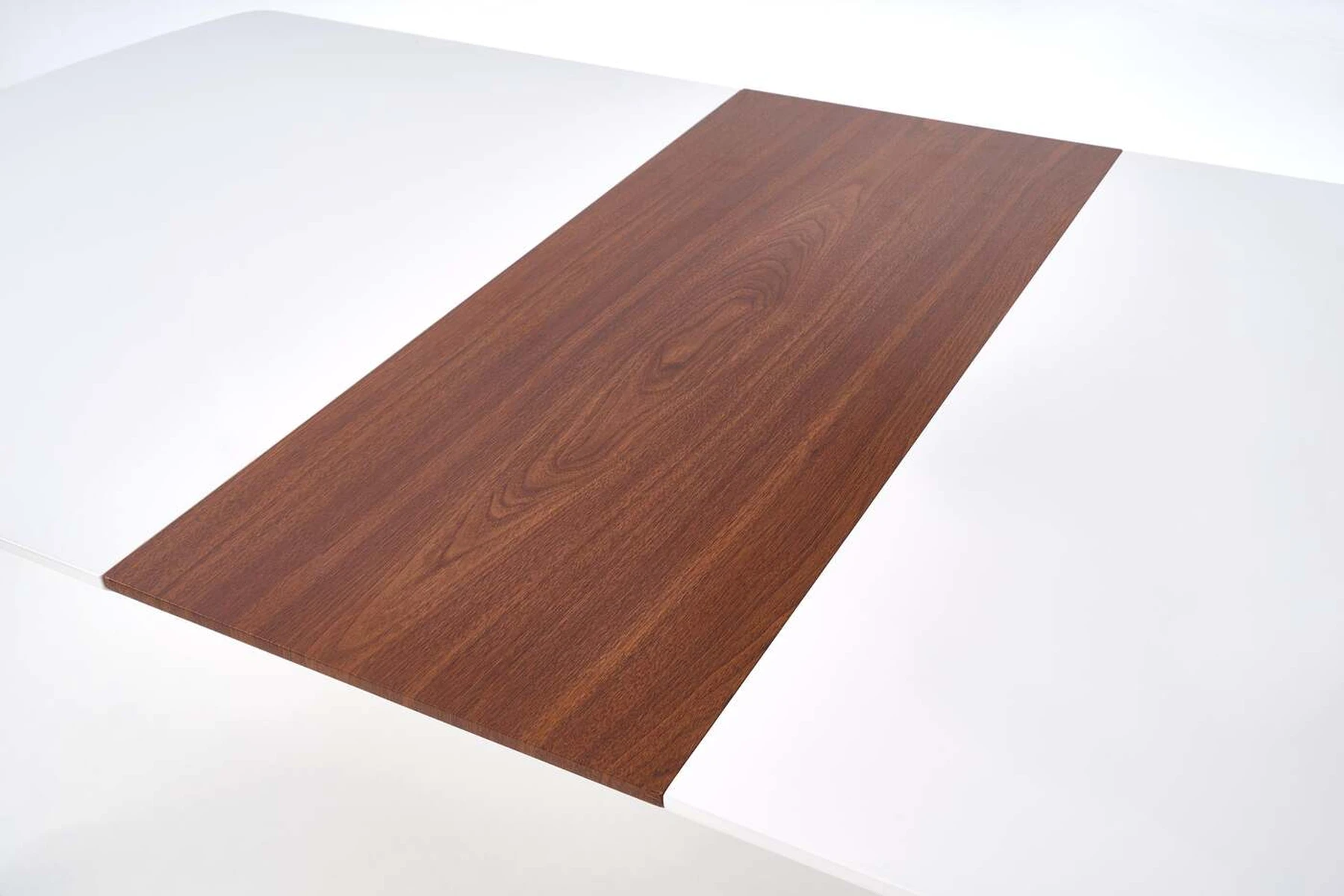 prailginimo stalas, matmenys: 150-190/90/75 cm, medžiaga: lakuotas MDF / laminuotas MDF / dažytas plienas, spalva: viršus - balta / skruzdėlynė. vyšnia III, kojos - skruzdėlynas. vyšnia III