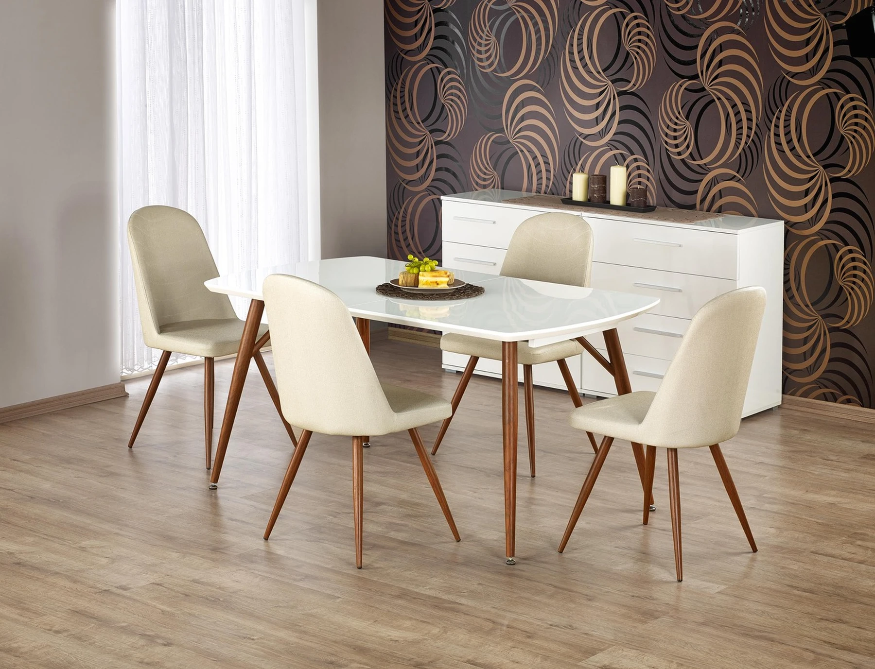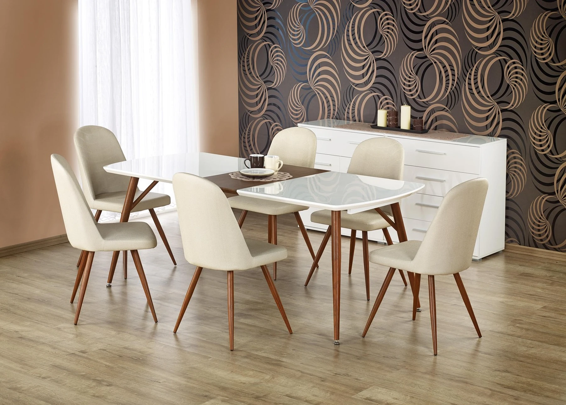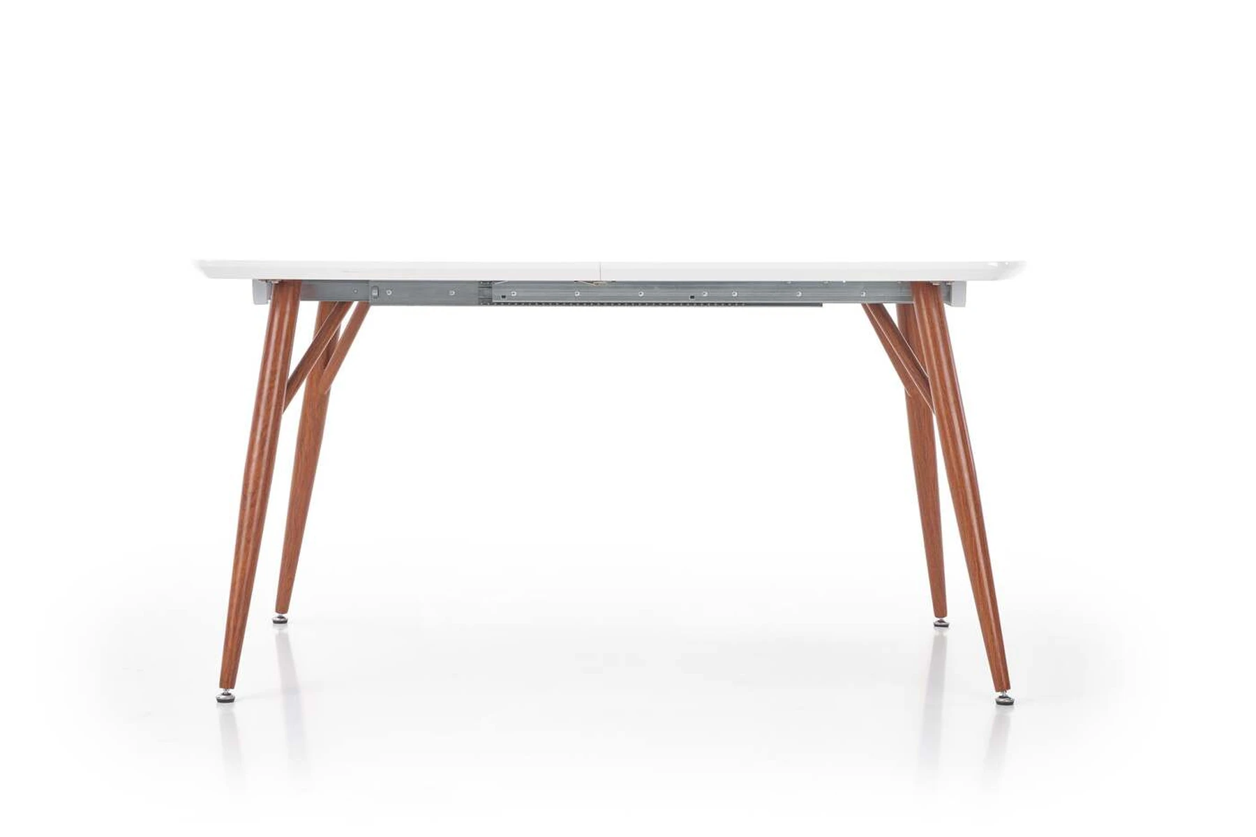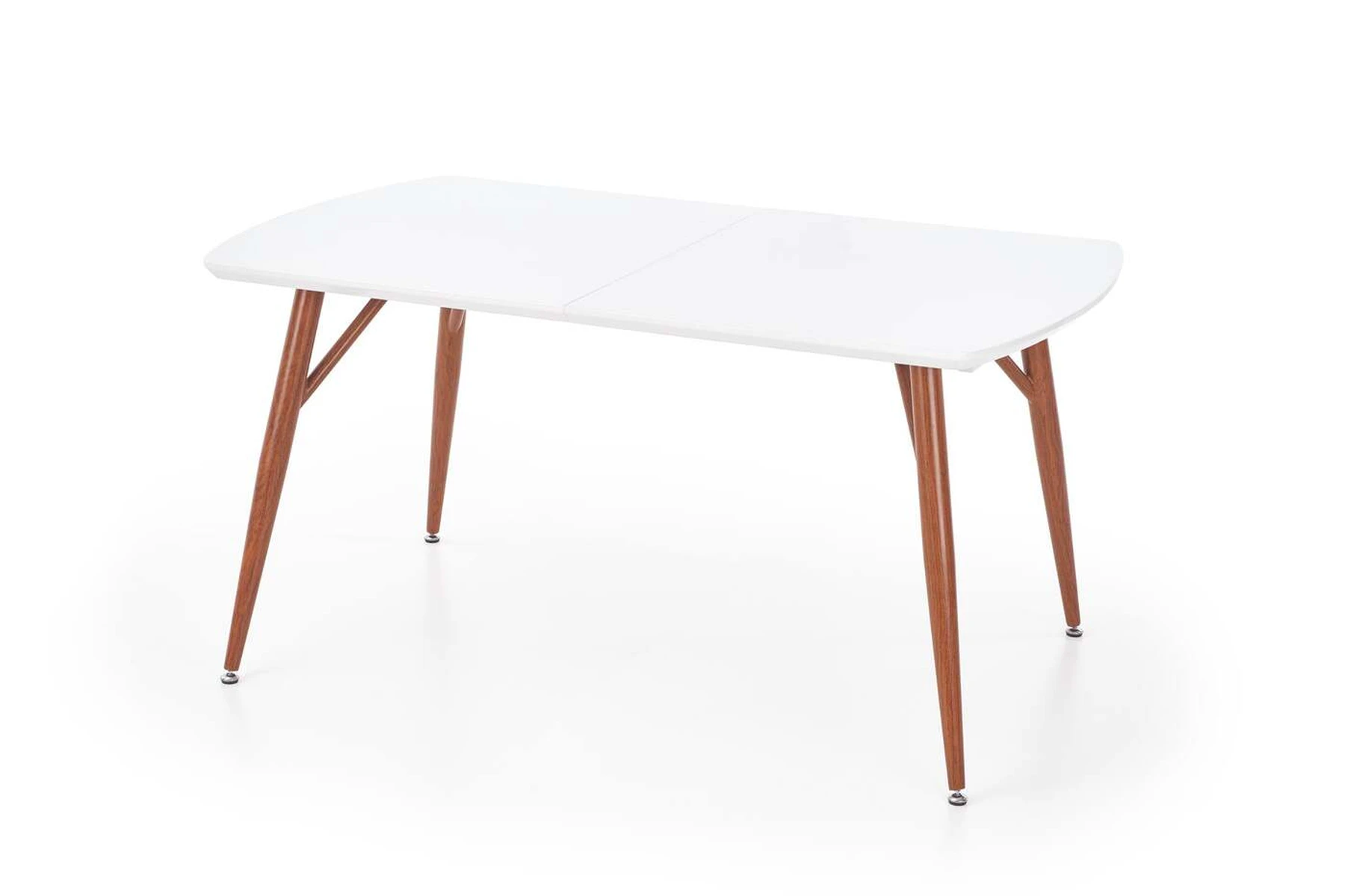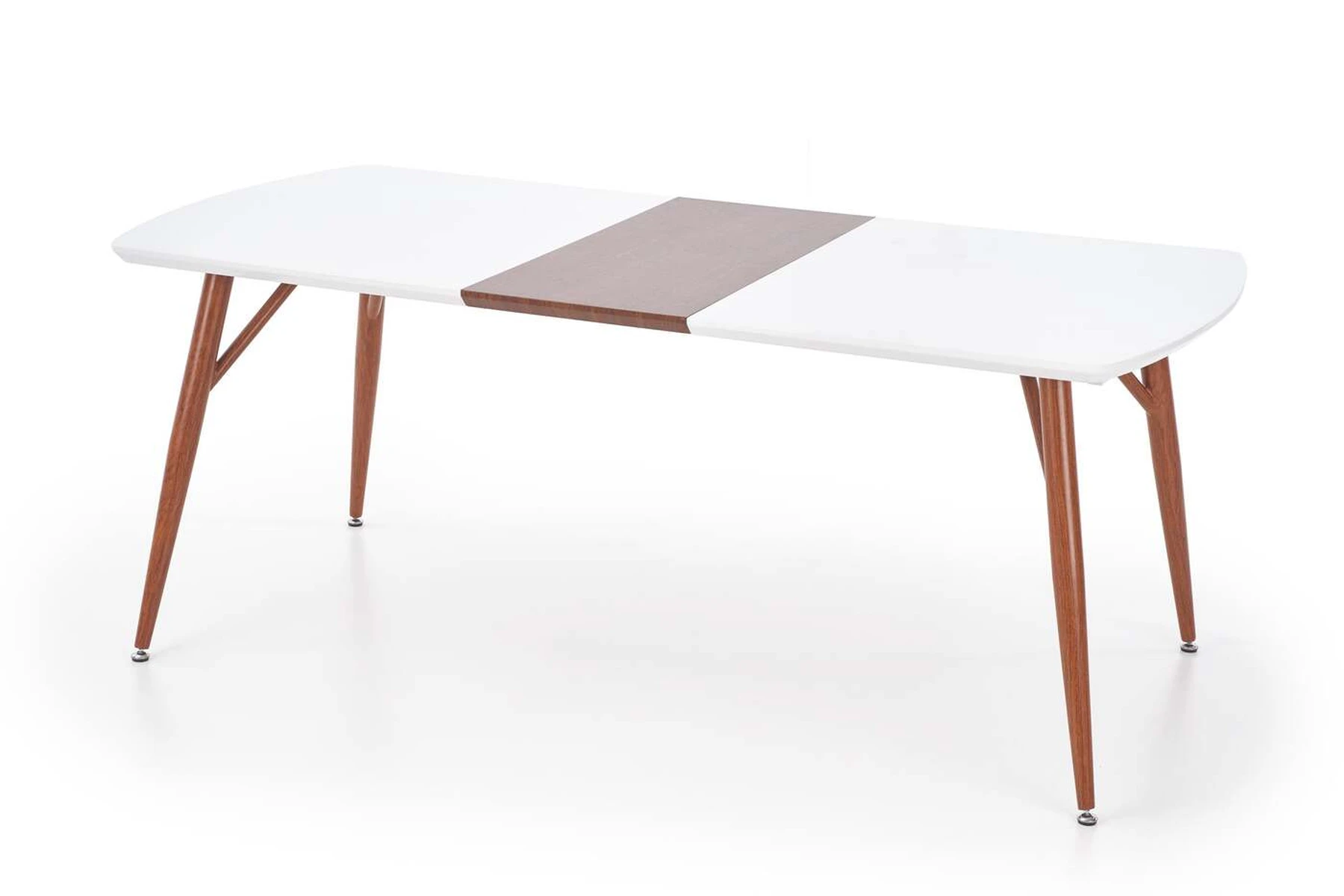 prailginimo stalas, matmenys: 150-190/90/75 cm, medžiaga: lakuotas MDF / laminuotas MDF / dažytas plienas, spalva: viršus - balta / skruzdėlynė. vyšnia III, kojos - skruzdėlynas. vyšnia III
