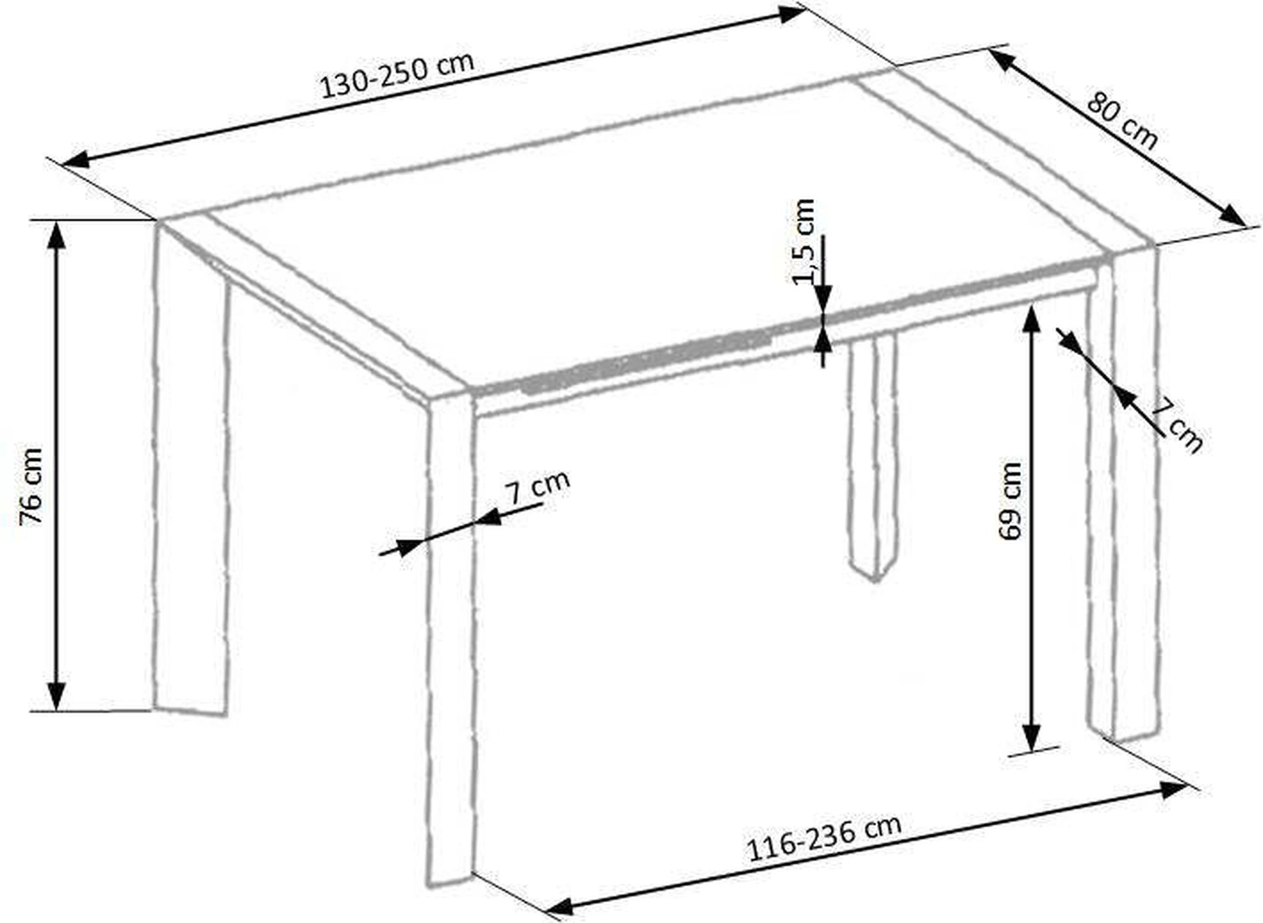 prailginimo stalas, matmenys: 130÷250/80/76 cm, medžiaga: lakuotas MDF / dažytas plienas, spalva: MDF - balta