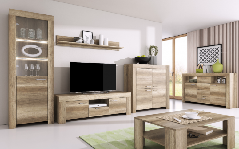 Modernaus dizaino baldas lengvai pritaikomas šiuolaikinio stiliaus interjere.Išmatavimai: plotis: 140-180 cm; aukštis: 75 cm; gylis: 80 cm.Medžiaga: LMDP plokštė, ABS plastiku dengtos briaunos.Spalva: ąžuolas riviera, ąžuolas kanjonas.