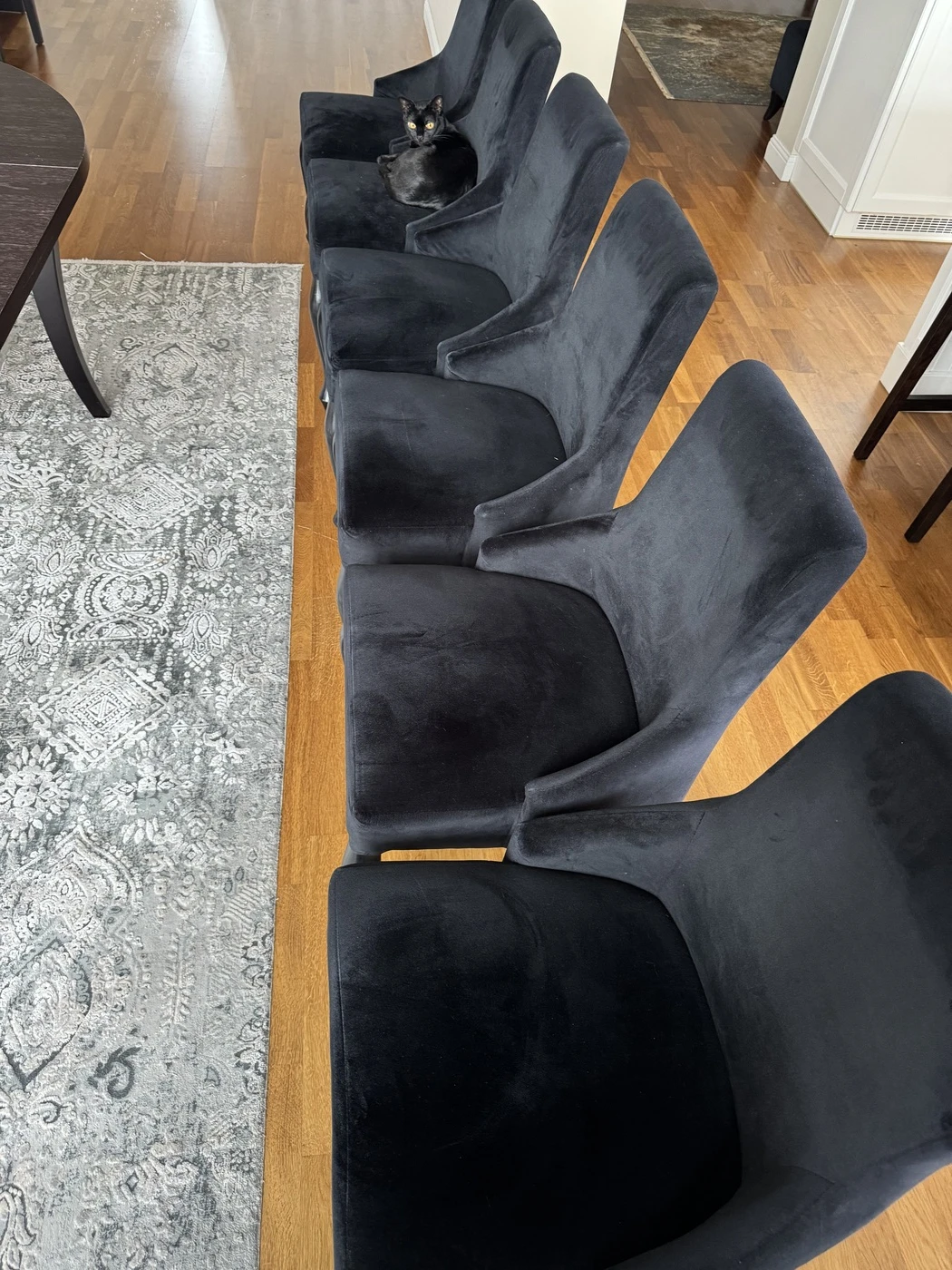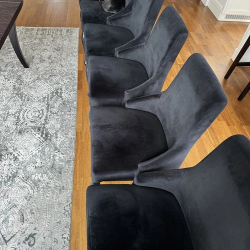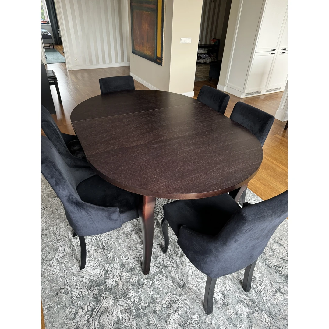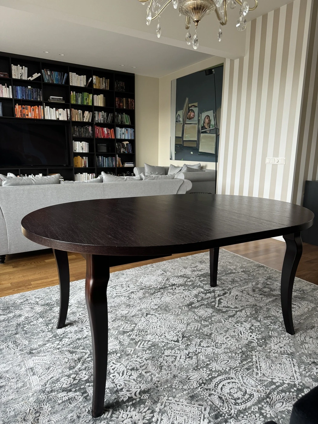 Kėdės su lengvai valoma medžiagaGeros būklės valgomasis komplektasStalas su funkcija mažinimoPatogios ir praktiškos kėdės valgomajam