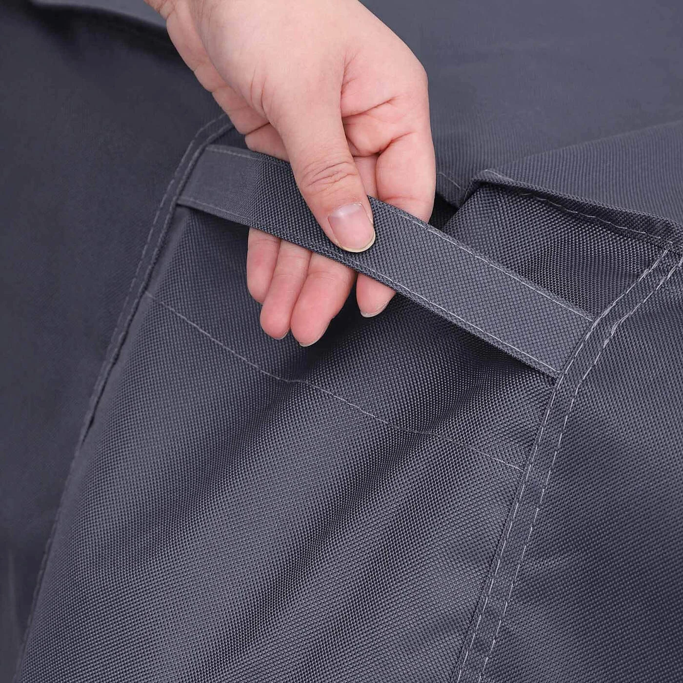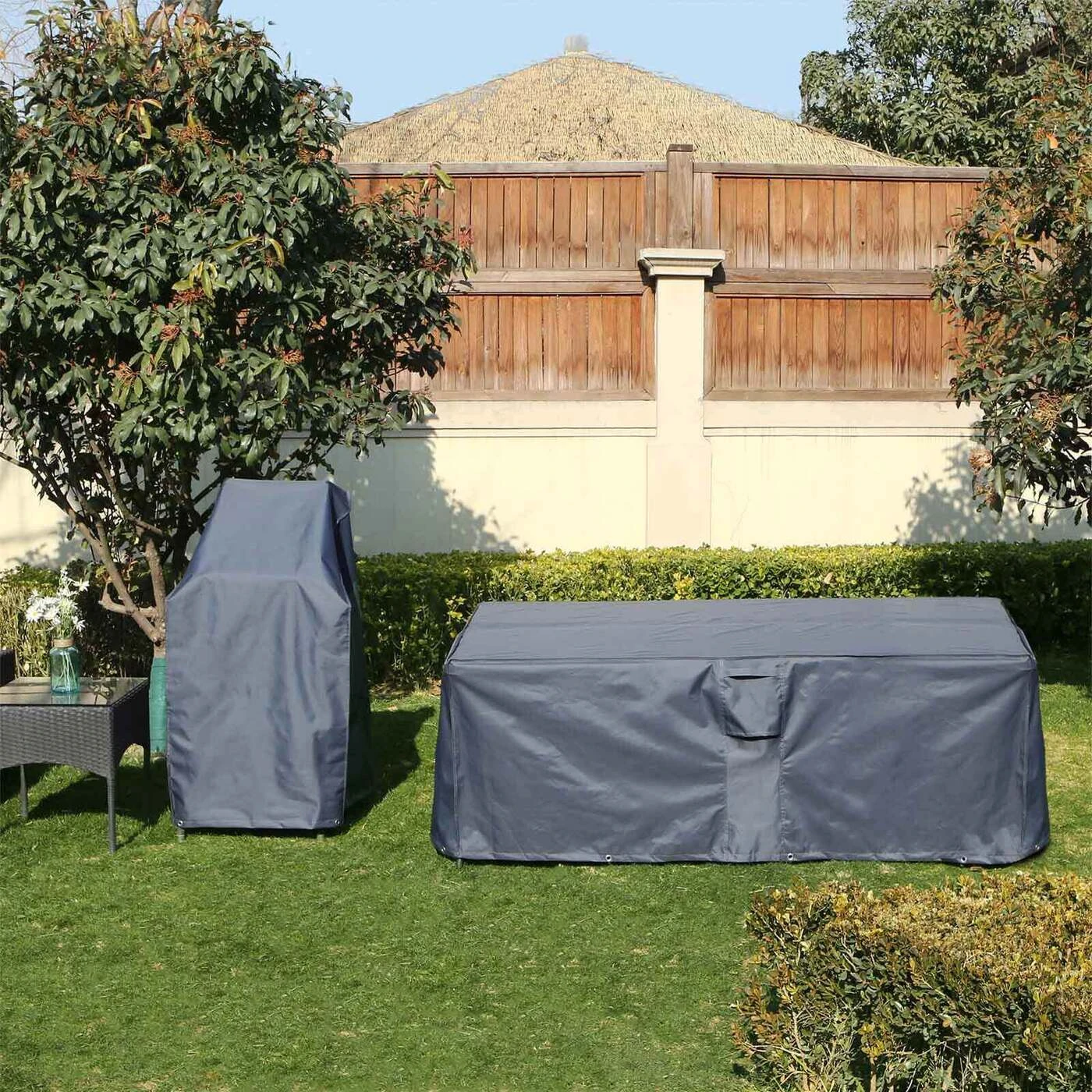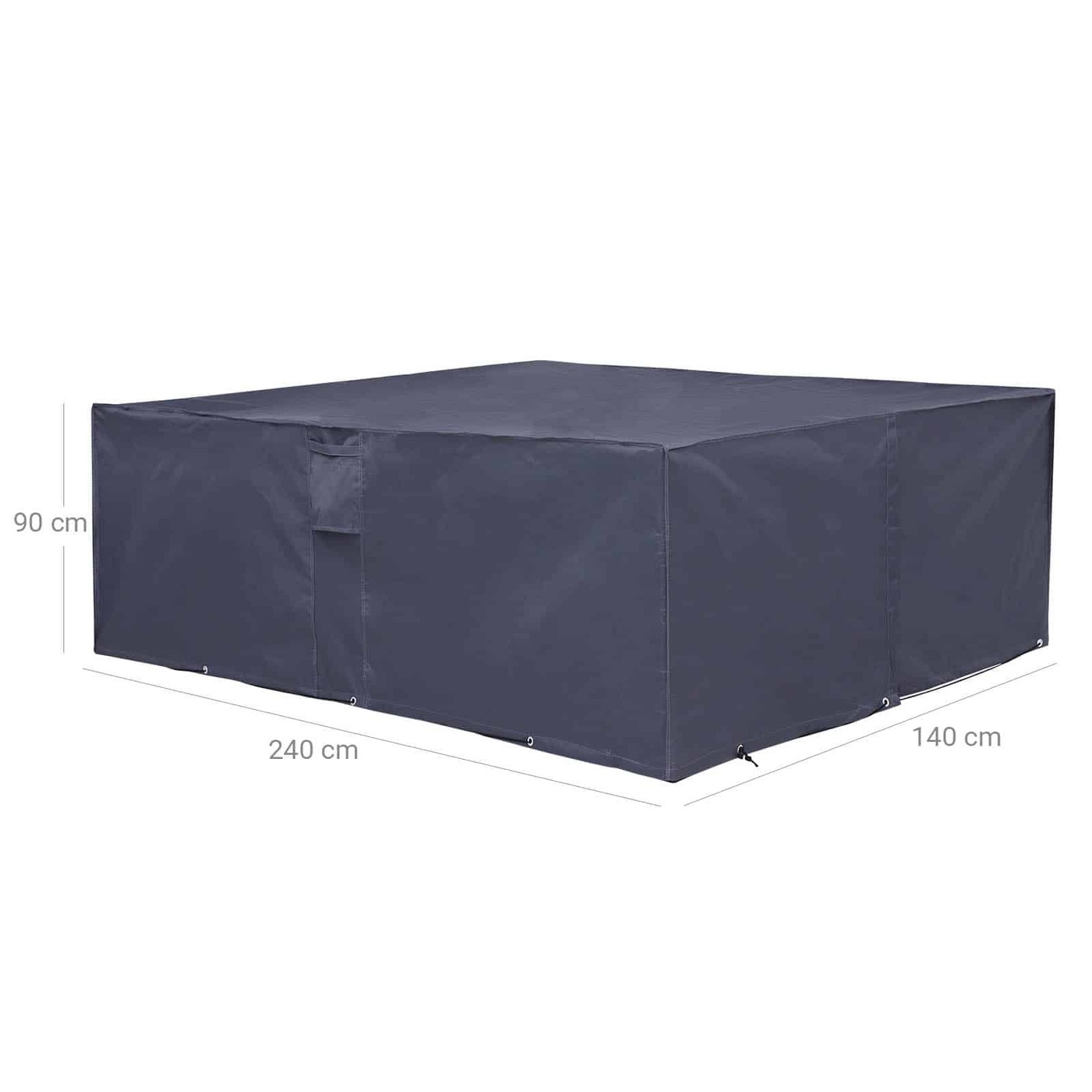 Aprašymas buvo automatiškai išverstas, gali pasitaikyti klaidų.Lietui atsparus brezentas sodo baldams Po stačiakampiu apsauginiu brezentu telpa stalas ir kėdės arba sodo suolas. Jis apsaugo sodo baldus nuo lietaus, dulkių, purvo ir žiedadulkių, taip pat gali būti naudojamas žiemą. Apatiniame krašte yra ąselės su metaliniais žiedais, su kuriomis galima pritvirtinti brezentą su pridedama tvirtinimo virvele ir taip geriau apsaugoti nuo vėjo. Su ventiliacijos angomis ir rankenomis Dėl tento rankenėlių lengva pritvirtinti ir nuimti sodo baldus. Vėdinimo angos užtikrina vėdinimą viduje, todėl sulaikoma mažiau drėgmės ir tuo pačiu išvengiama pelėsio. Brezentą galima lengvai sudėti ir laikyti pridedamame maišelyje, kol jo prireiks. Tvirtas ir oro sąlygoms atsparus apsauginis dangtelis Pagamintas iš aukštos kokybės 280 g/m² 600D Oksfordo audinio su PVC danga, brezentas puikiai apsaugo nuo oro sąlygų. Spalvos atsparumas šviesai ir vandeniui patikrintas ir sertifikuotas TÜV Rheinland (ataskaita Nr. 1160042500a 001). Kai jis nešvarus, jį galima nuplauti šaltu vandeniu ir nuvalyti minkšta šluoste bei švelniu plovikliu.Išsami informacija apie gaminį: - Spalva: pilka - Medžiaga: Oksfordo audinys - Gaminio matmenys: 240 x 90 x 140 cm (P x G x A) - Svoris: 3,7 kg Pakuotės turinys: - 1 x užvalkalas - 1 x laikymo krepšys - 1 x virvė