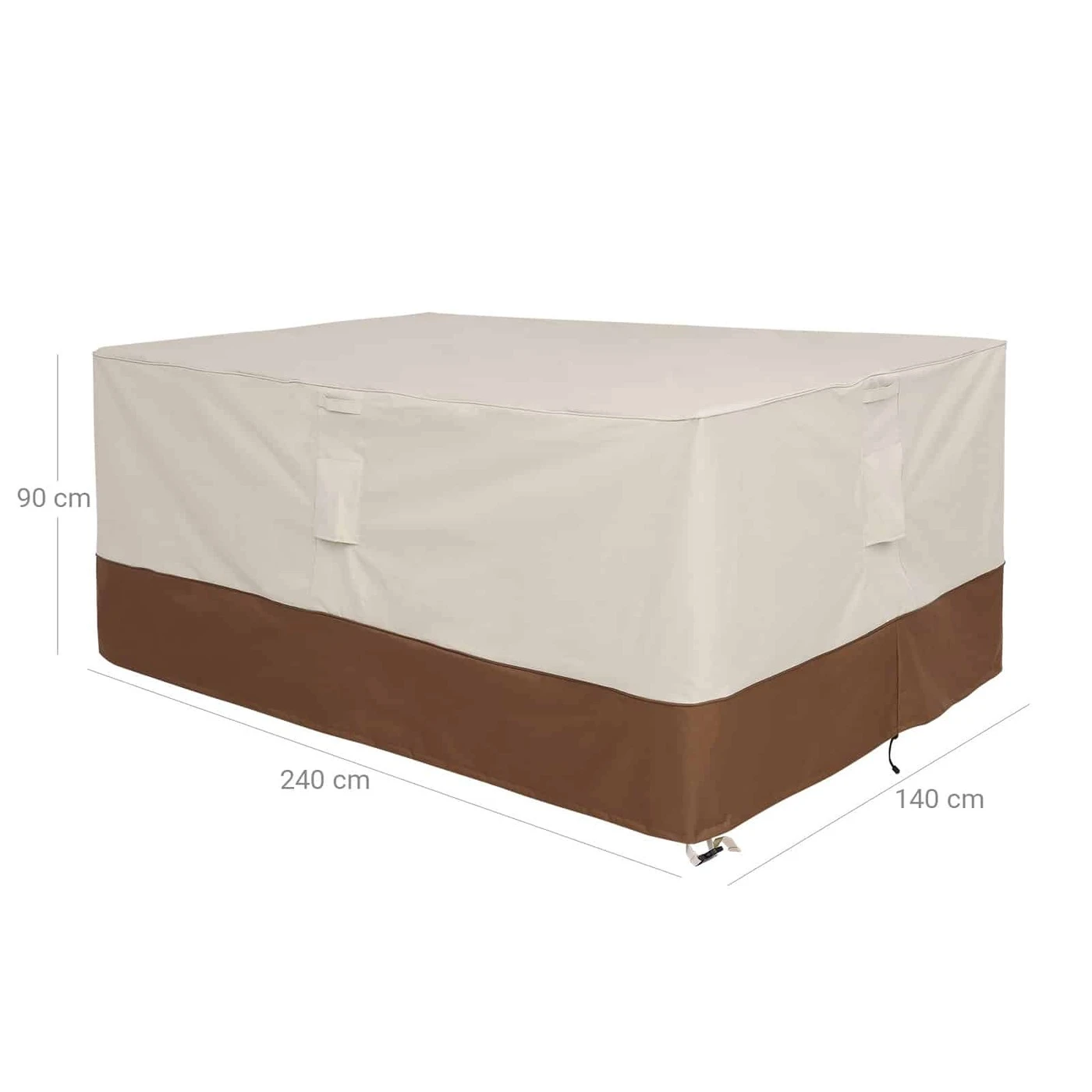 Aprašymas buvo automatiškai išverstas, gali pasitaikyti klaidų.Ar pamiršote uždengti stalą ir kėdes ir jau pradėjo lyti? Nesijaudinkite, nes dvi aukštos kokybės rankenos brezento šonuose leidžia lengvai uždengti stalą ir kėdes negaištant daug laiko. Stiprus vėjas? Priveržkite dangtelio apačioje esančią virvę, kad jis nenuskristų kaip balionas.Pažiūrėkite kitus SONGMICS siūlomus užvalkalus, kad apsaugotumėte visus lauko baldus!Prekės informacija: - Spalva: smėlio spalvos - Medžiaga: 600D Oksfordo audinys su PVC danga - Matmenys: 240 x 140 x 90 cm (P x P x A) - Svoris: 3,6 kg Pristatymo komplektas: - 1 x apsauginis užvalkalas sodo baldams SONGMICS Pastabos: - Nelaikykite gaminio aukštoje temperatūroje ir laikykite vėsioje, sausoje vietoje. - Neplaukite mašinoje.