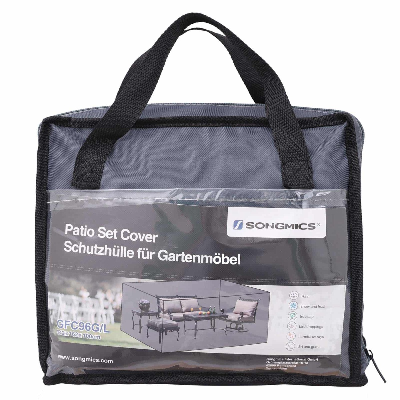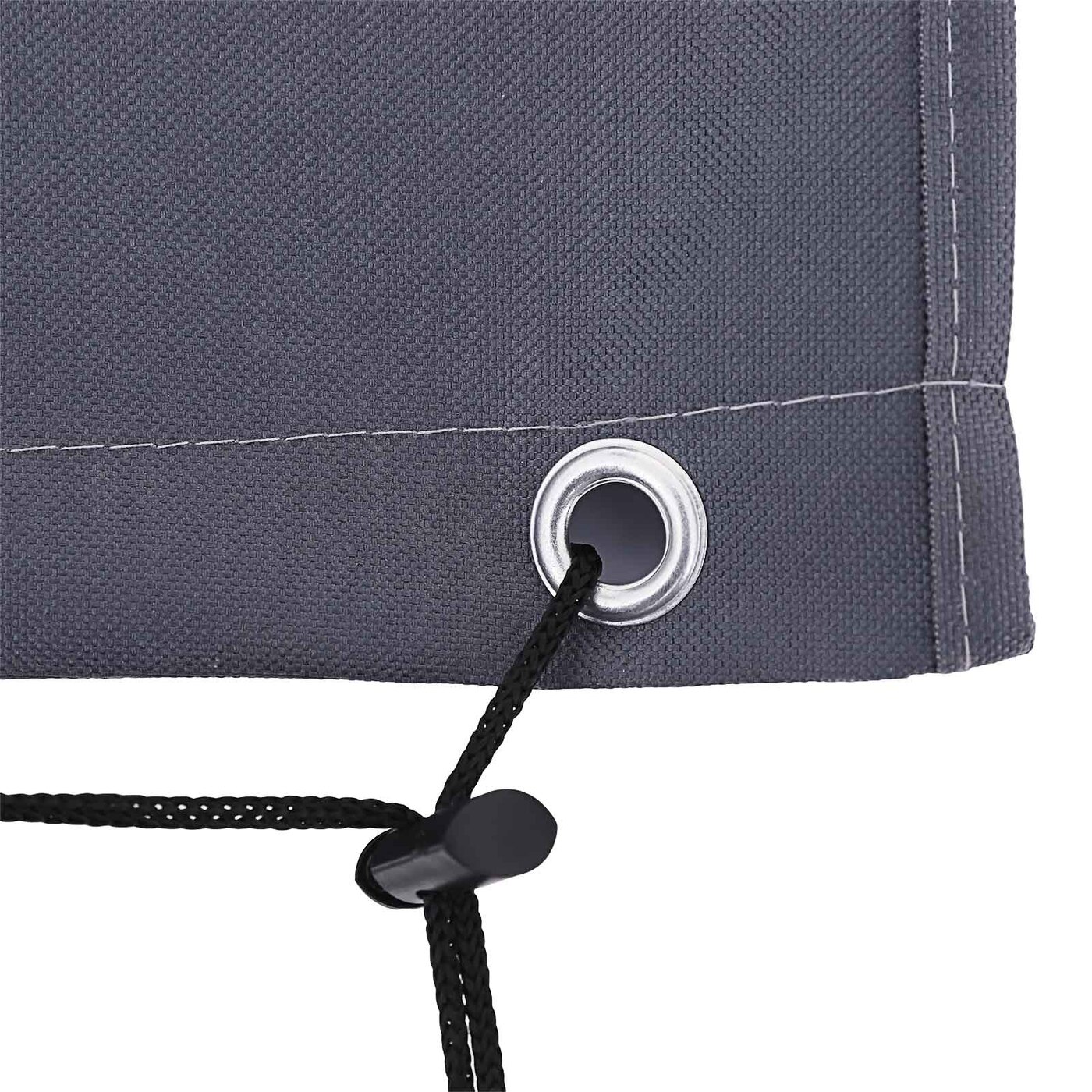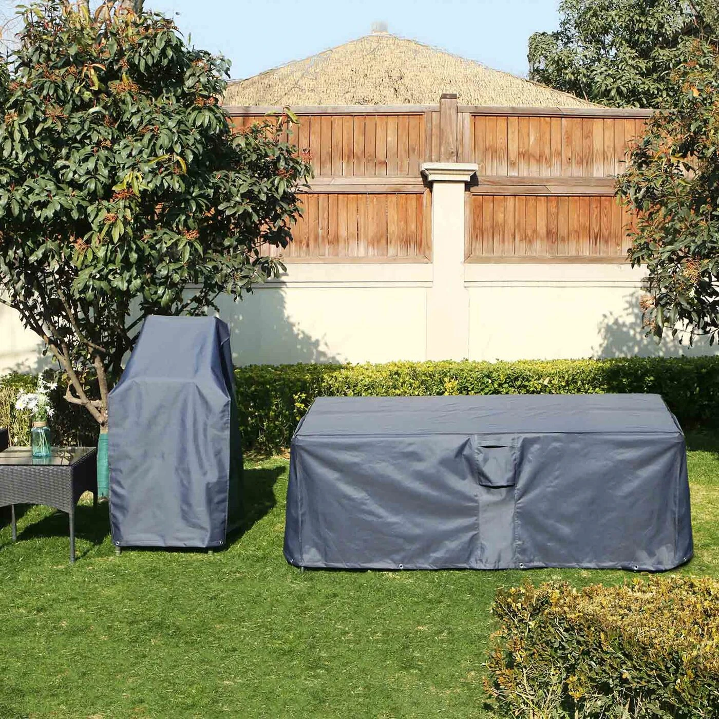 Aprašymas buvo automatiškai išverstas, gali pasitaikyti klaidų.Lietui atsparus tentas sodo baldams: po stačiakampiu apsauginiu brezentu telpa stalas ir kėdės arba sodo suoliukas. Jis apsaugo sodo baldus nuo lietaus, dulkių, purvo ir žiedadulkių, taip pat gali būti naudojamas žiemą. Apatiniame krašte yra ąselės su metaliniais žiedais, su kuriomis brezentą galima pritvirtinti pridedamu tvirtinimo virvele ir taip geriau apsaugo nuo vėjo. Su ventiliacijos angomis ir rankenomis: ant tento esančios rankenos palengvina pritvirtinimą ir nuėmimą nuo sodo baldai. Vėdinimo angos užtikrina vėdinimą viduje, todėl sulaikoma mažiau drėgmės ir tuo pačiu išvengiama pelėsio. Brezentą galima lengvai sudėti ir laikyti pridedamame maišelyje, kol jo prireiks Tvirtas ir oro sąlygoms atsparus apsauginis dangtelis: Pagamintas iš aukštos kokybės 280 g/m² 600D Oksfordo audinio su PVC danga, brezentas puikiai apsaugo nuo oro sąlygų. Spalvų atsparumą šviesai ir vandeniui išbandė TÜV Rheinland (ataskaita Nr. 1160042500a 001). Kai jis nešvarus, jį galima nuplauti šaltu vandeniu ir nuvalyti minkšta šluoste bei švelniu plovikliu.Išsami informacija apie gaminį: Spalva: pilka Medžiaga: Oksfordo audinys Gaminio matmenys: 242 x 162 x 100 cm (P x G x A) Svoris: 3,7 kg Pakuotės turinys: 1 x užvalkalas 1 x maišelis laikymui 1 x virvė