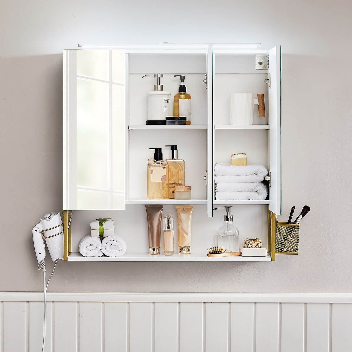 Aprašymas buvo automatiškai išverstas, gali pasitaikyti klaidų.Išsami informacija apie gaminį: - Spalva: baltas auksas - Medžiaga: medžio drožlių plokštė, plienas, stiklas - Dydis: 70 x 14,5 x 70 cm (P x P x A) - Lempos aukštis: 5 cm - Svoris: 14,8 kg - Maksimali statinė apkrova viršutinės lentynos: 20 kg - Maksimali reguliuojamos lentynos statinė apkrova: 5 kg - Maksimali atviro skyriaus statinė apkrova: 5 kgDėžutės turinys: - 1 x vonios spintelė - 1 x laikymo krepšys - 1 x plaukų džiovintuvo laikiklis - 1 x priedų pakuotė - 1 x instrukcijos