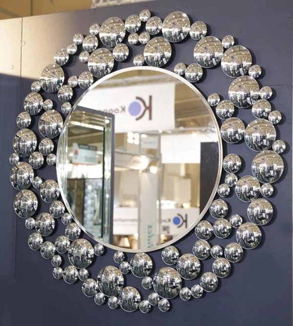 Stilingas veidrodis su moderniu veidrodiniu rėmeliu. Išoriniai matmenys 100x100cm, vidiniai paties veidrodžio matmenys 61x61cm.