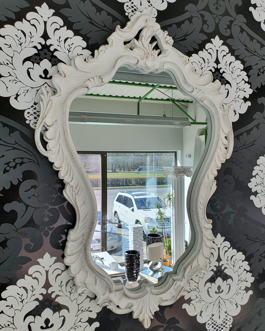 Stilingas klasikinio stiliaus veidrodis PU274, baltos spalvos