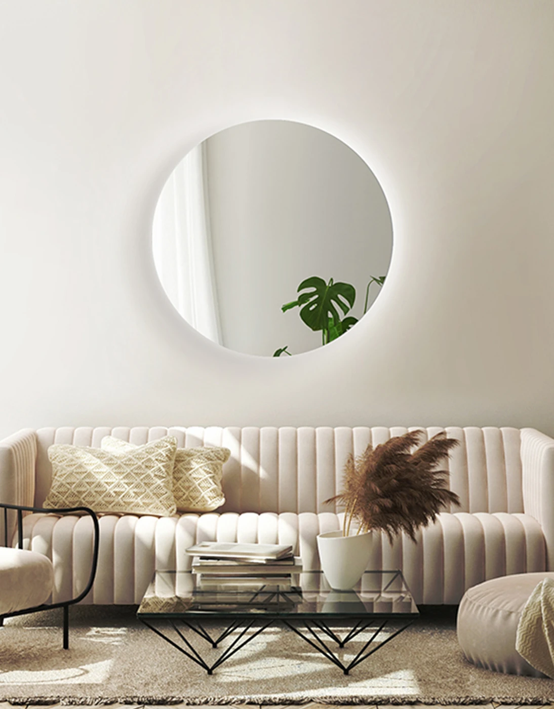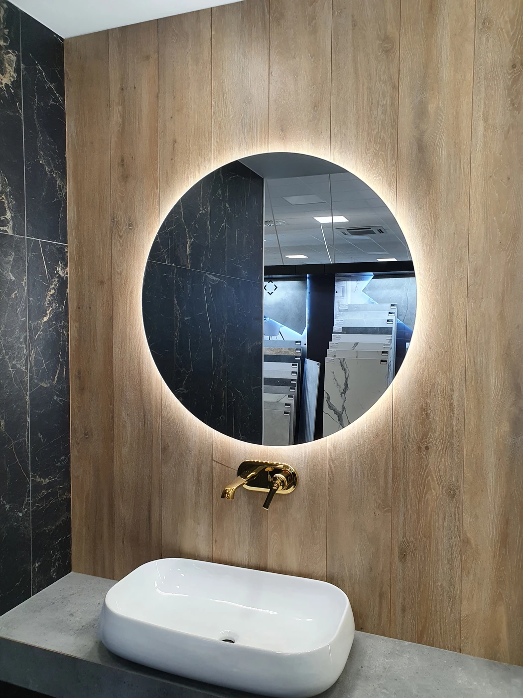Vonios veidrodis su Led apšvietimu Sirijus. Veidrodžiai gaminami individualiai, todėl galima pasirinkti Jums reikiamą dydį 60,80,100cm, apšvietimo spalvą, bei kitas funkcijas, tokias kaip sensorinis jungtukas, laikrodis ar šildomas kilimėlis