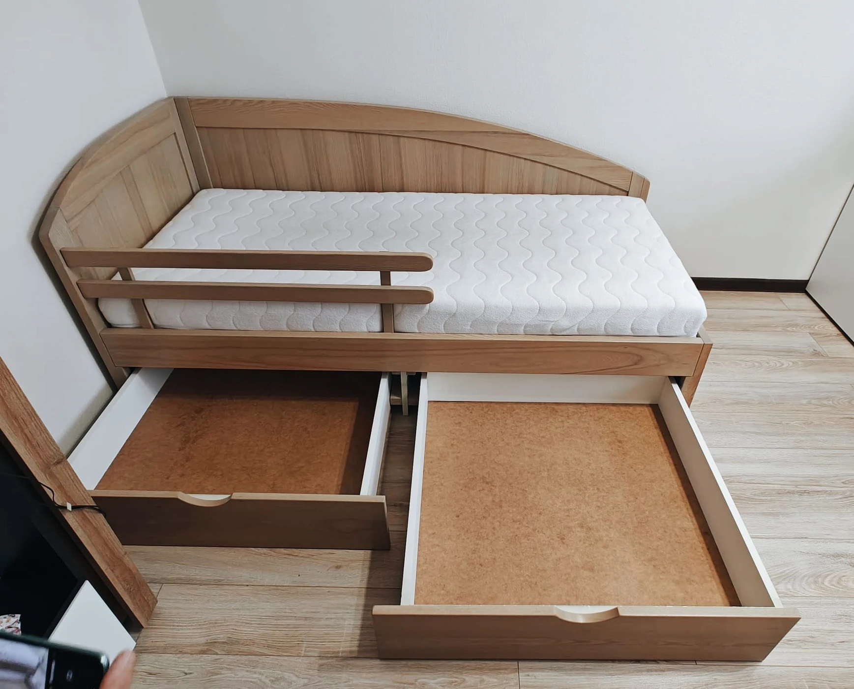 Pridedamos dvi atskiros patalynės dėžės ir nuimamas užtvaras, apsaugantis nuo iškritimo.