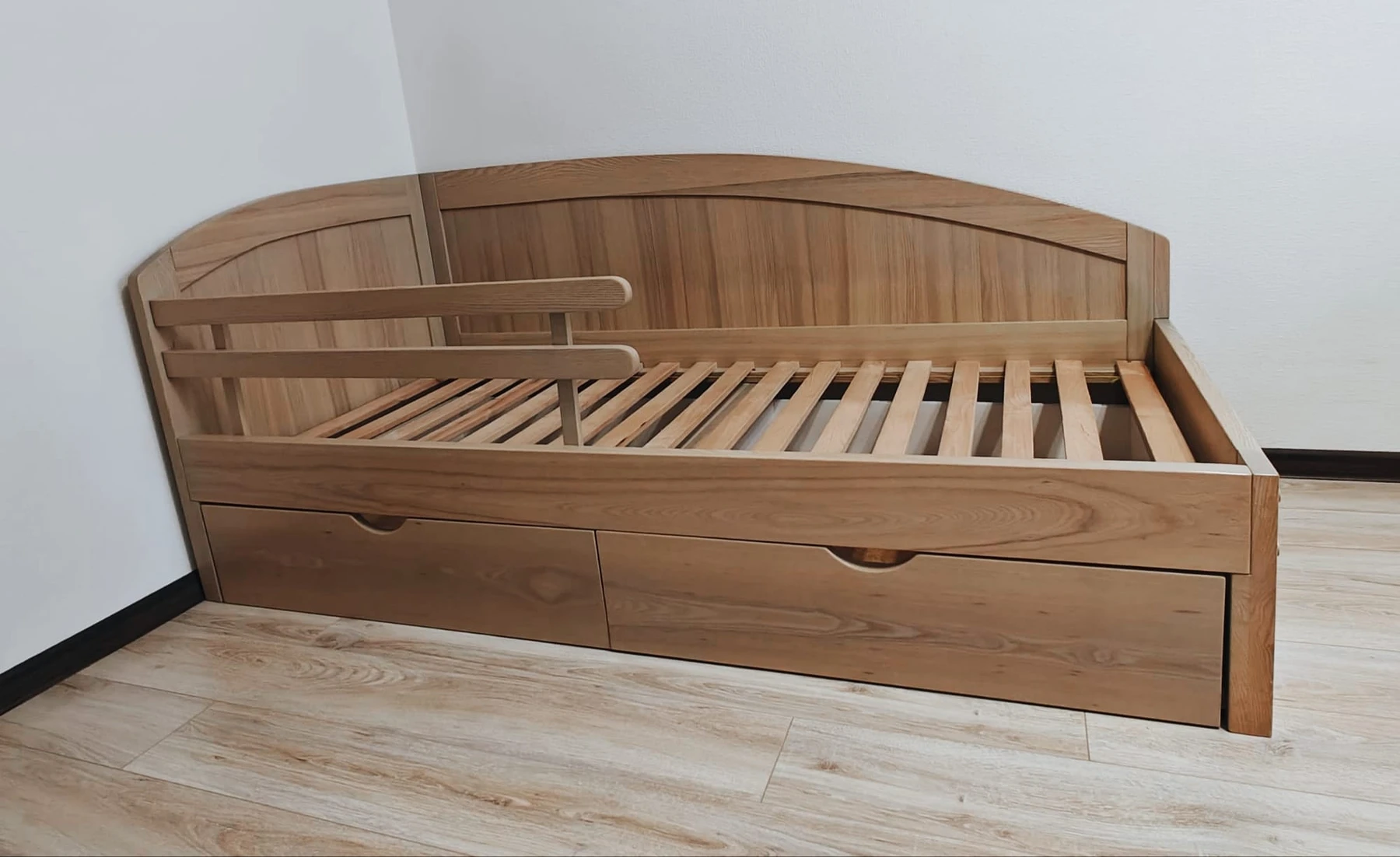 Lova lengvai išsiardo – ją galima daug kartų surinkti ir išardyti. Jungtys kokybiškos ir ilgaamžės, todėl konstrukcija išlieka stabili. Išardžius lovą, transportavimas tampa paprastas ir patogus.