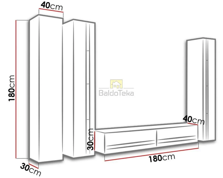 – Pakabinama vitrina VIGO NEW 180 (2 vnt.). Plotis/Aukštis/Gylis: 40/180/30 cm;