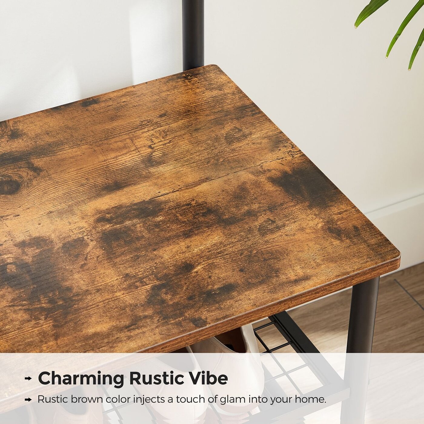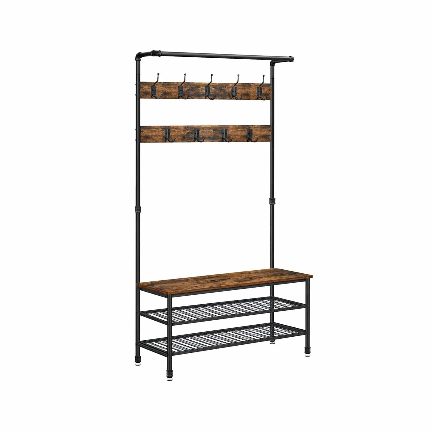 Aprašymas buvo automatiškai išverstas, gali pasitaikyti klaidų.VASAGLE dizaineriai nuolat pateikia naujų idėjų praktiškiems baldams, kurie stilingai ir už prieinamą kainą gali padaryti jūsų gyvenimą šiek tiek patogesnį. Tai suteikia galimybę savo namus paversti kažkuo ypatinga. Kaimiška pramoninio dizaino drabužių spinta Pavyzdžiui, jie sukūrė aukščiau pavaizduotą drabužių kabyklą su suoliuku, kuris suteikia patogią sėdėjimą ir 2 grotelių lentynas batams laikyti, taip pat drabužių kabyklą ir 9 kabliukus raktams, krepšiams ar drabužiams laikyti. . Sukurta pagal madingą pramoninį dizainą ir su vandens vamzdžių elementais bei kaimiškais mediniais elementais, spinta ypač tinka didelėms ar atviroms patalpoms, kurios dar nėra perkrautos kitais baldais. Padėkite drabužių kabyklą savo koridoriuje, pavyzdžiui, kad galėtumėte pakabinti striukes ir paltus ir lengvai apsiauti batus. Tačiau ši spinta neturėtų būti vienintelė pramoninio dizaino detalė jūsų namuose. Taip pat kviečiame pasižiūrėti ir kitas VASAGLE kompozicijas.Informacija apie gaminį: - Spalva: vintažinė ruda-juoda - Medžiaga: medžio drožlių plokštė, plienas - Dydis: 100 x 41,5 x 182 cm (P x P x A) - Svoris: 16,5 kg - Maksimali suoliuko apkrova: 100 kg - Maks. Vienos tinklelio lentynos apkrova: 20 kg - Maksimali apkrova vienam kabliui: 3 kg Pristatymo komplektas: - 1 x drabužių spinta - 1 x priedų krepšys - 1 x apsauga nuo apvirtimo - 1 x rankinis (DE, EN, FR, ES, IT) ) VASAGLE Pastabos: - Nauda Apsaugokite gaminį ir pritvirtinkite prie sienos, kad užtikrintumėte drabužių spintos saugumą. - Nekabinkite jokių per sunkių daiktų ant medinės lentos viršutinėje dalyje arba ant kabliukų.