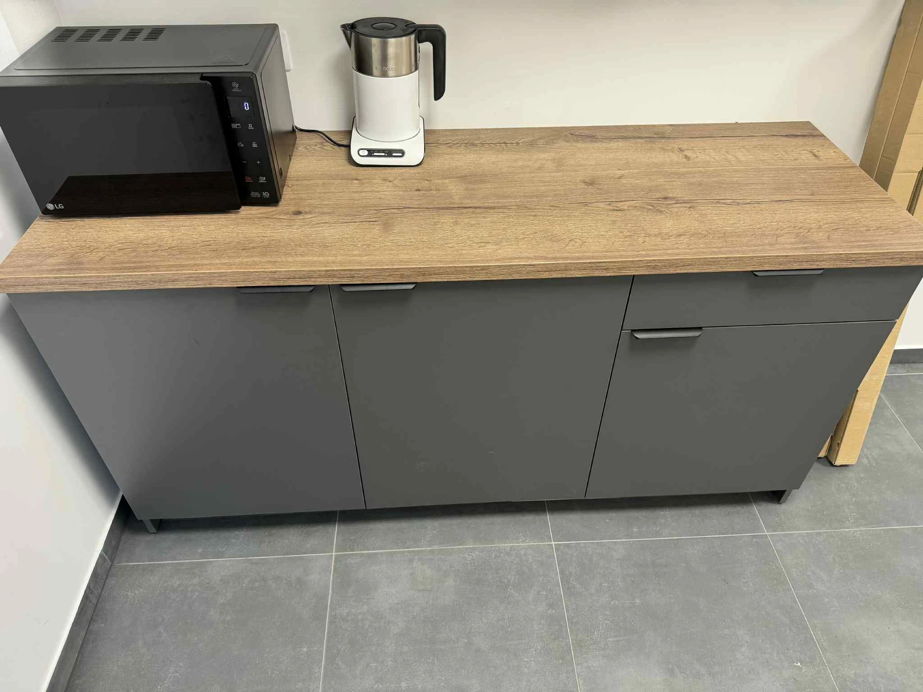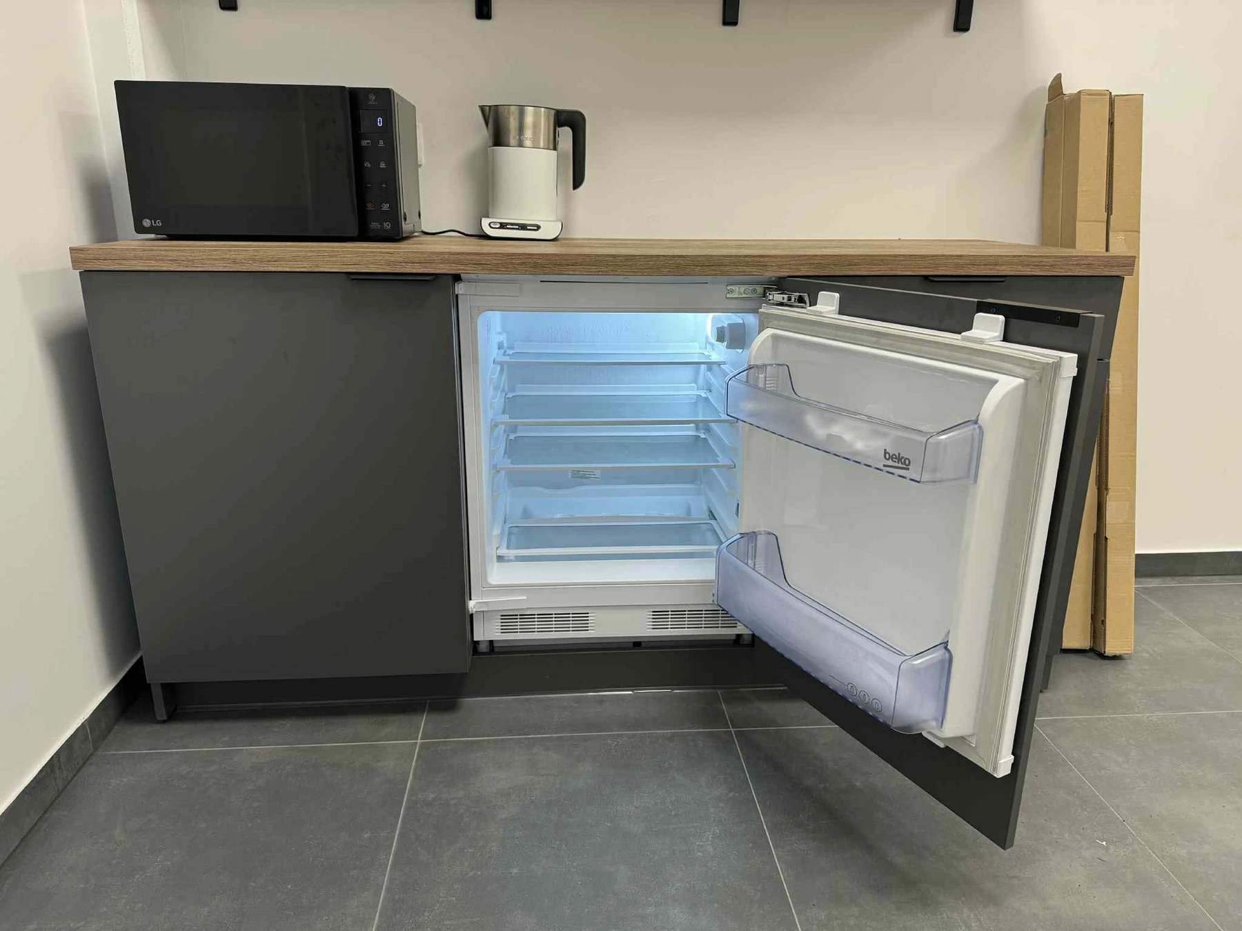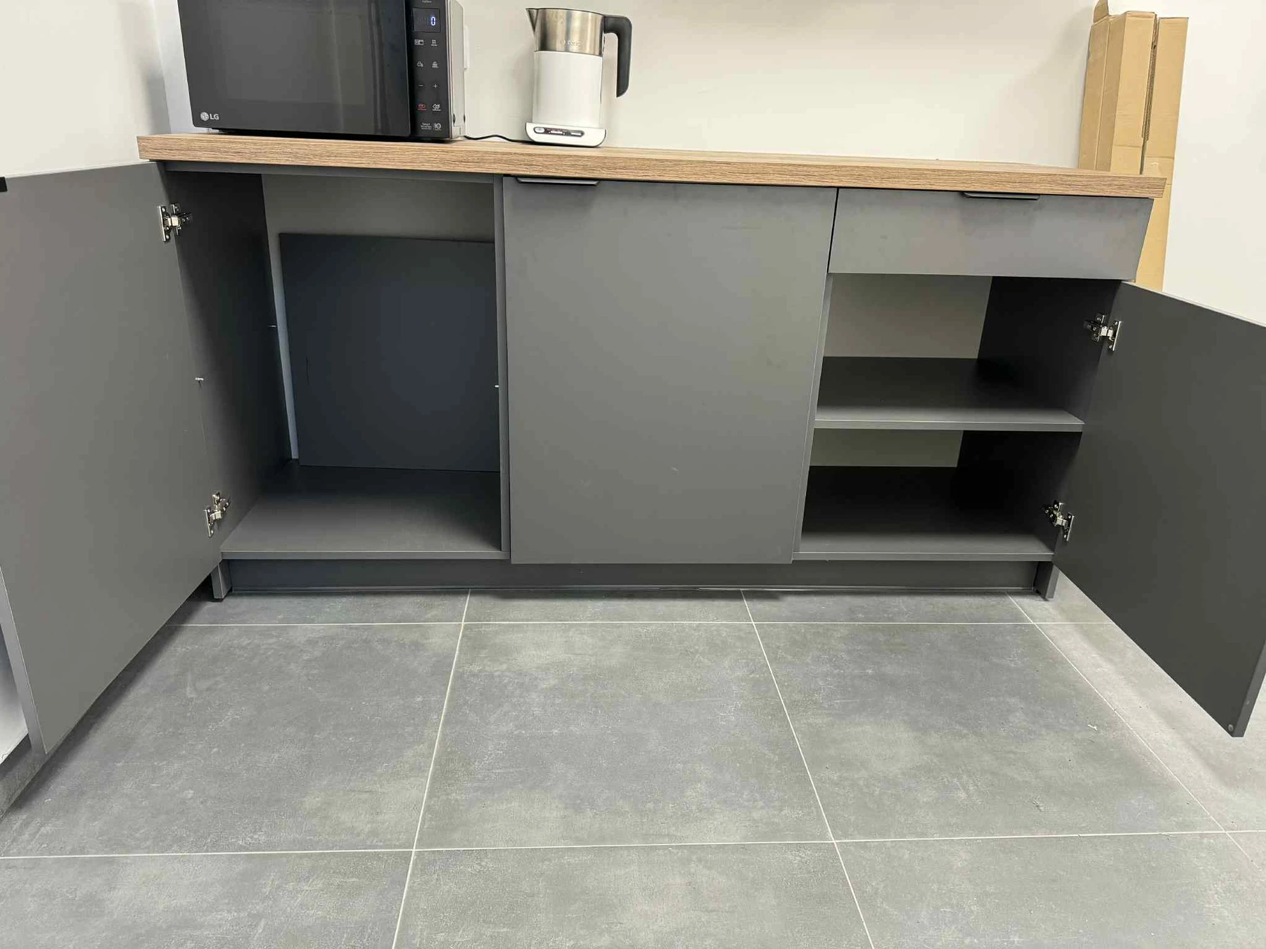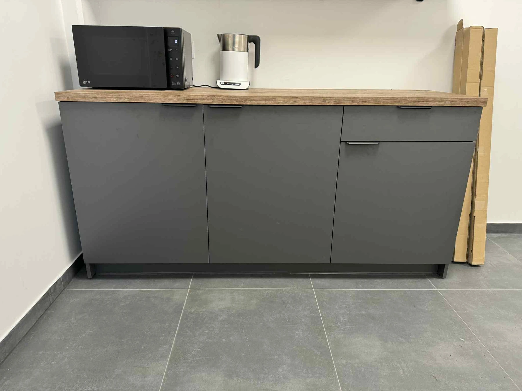 Skubiai parduodu maža virtuvė su įmontuojamu šaldytuvu. Matmenys: 1,80 ilgis, 0,90 aukštis, 0,60 plotis Baldu buklė labai gera, labai mažai naudota. Stalčių sistema Blum.