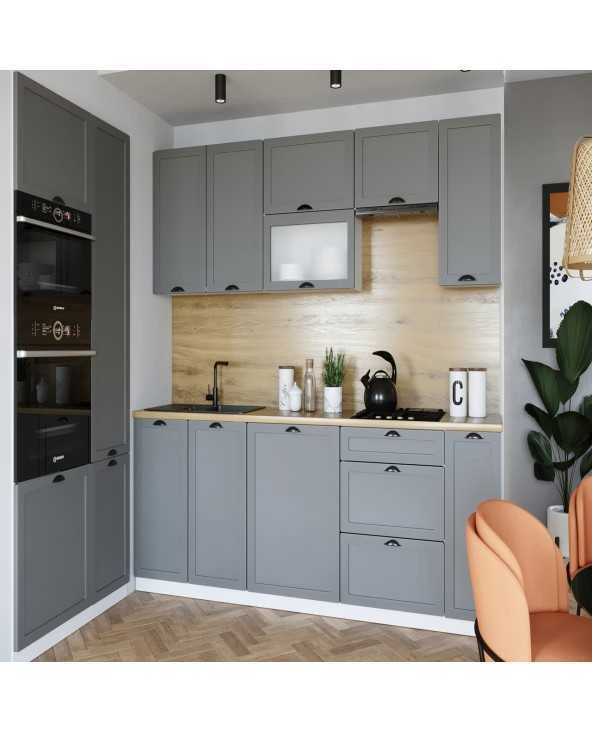 Viryklė, kriauklė ir kiti virtuvės reikmenys yra dekoratyviniai ir į rinkinį neįeina