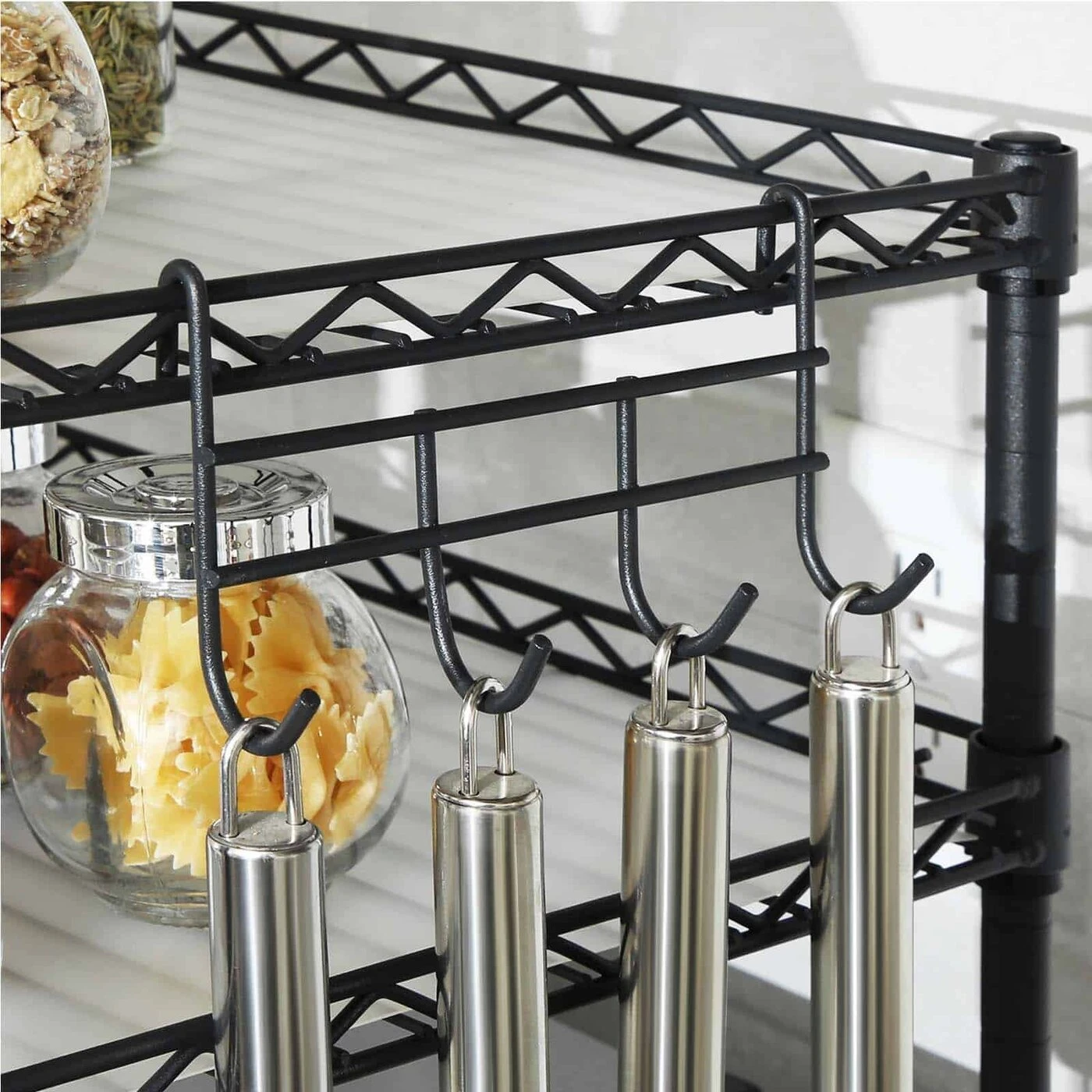 Aprašymas buvo automatiškai išverstas, gali pasitaikyti klaidų.Tvarkingam virtuvės stalui: optimaliai išnaudokite vertikalią erdvę su šia mikrobangų krosnelės lentyna iš SONGMICS ir suteikite savo virtuvės stalui formą. 2 reguliuojamo aukščio lentynos yra patogi vieta laikyti prieskonių butelius, o mikrobangų krosnelę galima stabiliai pastatyti apatinėje dalyje. Ant kabliukų galima pakabinti menteles ir keptuves. Kokia tvarkinga virtuvė! Sujungia jėgą ir stilių: ši virtuvės lentyna, pagaminta iš patvaraus anglies pilkojo ketaus, yra ne tik tvirta, bet ir suteikia jūsų virtuvei elegancijos. Be to, nedidelius nelygumus stalo paviršiuje galima kompensuoti šios lentynos išlyginamųjų pėdų dėka – pakanka kelių apsisukimų didesniam stabilumui!Išsami informacija apie gaminį: Spalva: antracitas Medžiaga: milteliniu būdu dengta geležis, PP (polipropilenas) Dydis: 60 x 30 x 52 cm (P x P x A) Svoris: 2,6 kg Maks. Statinė apkrova vienoje lentynoje: 40 kg Pristatymo komplektas: 1 x mikrobangų krosnelės lentyna 1 x instrukcijos (DE, EN, FR, ES, IT)
