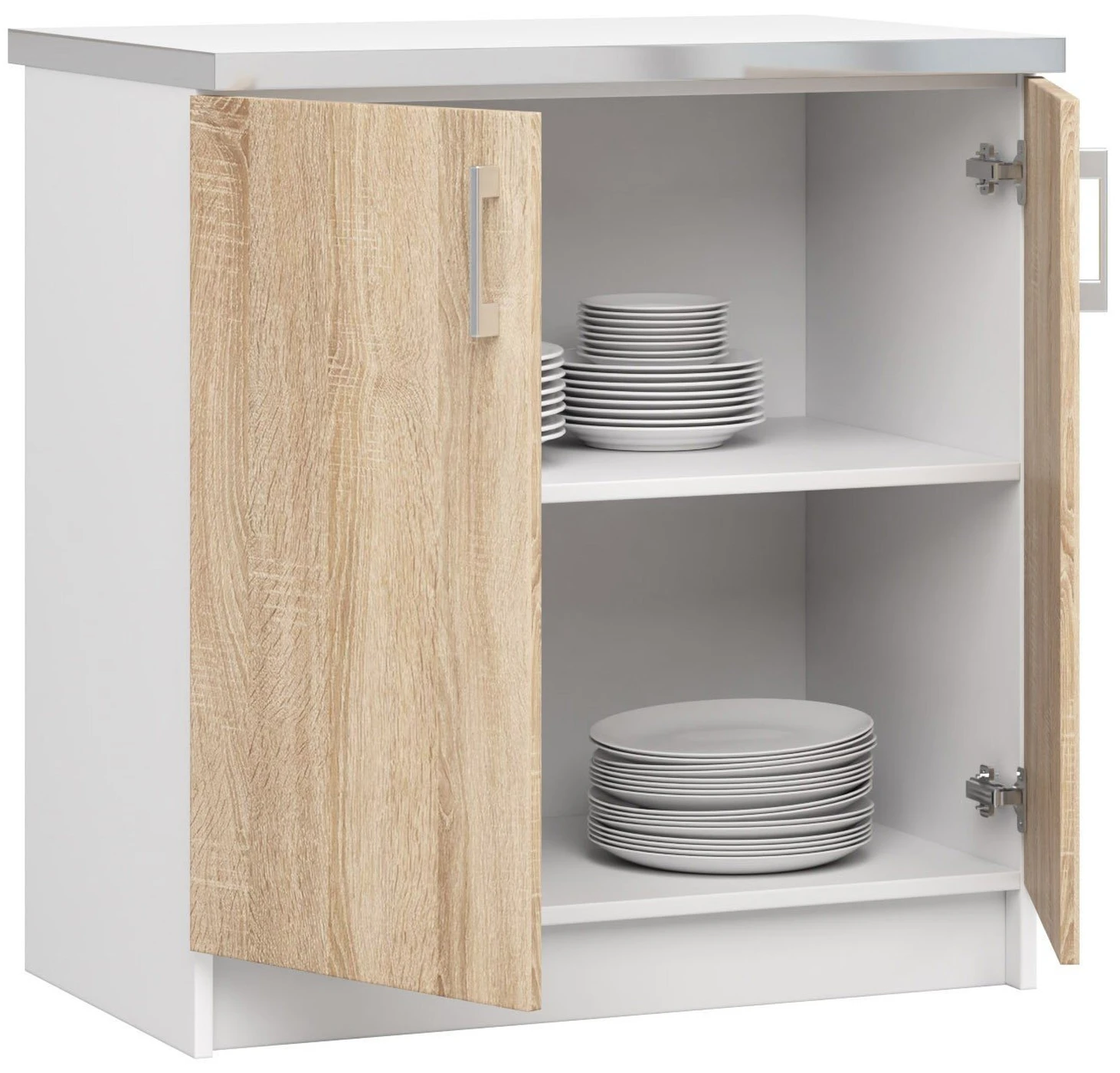 Aprašymas buvo automatiškai išverstas, gali pasitaikyti klaidų. Pastatoma virtuvės spintelė yra vienas iš pagrindinių baldų, kuriame galite laikyti indus ir maisto produktus. Jis turėtų pasižymėti tvirta konstrukcija, patvaria, pažeidimams atsparių medžiagų konstrukcija, taip pat funkcionalumu. Šios savybės yra sujungtos virtuvės spintelėje D80 D2 iš Lima kolekcijos. Tai pasiūlymas, kurio dėka bus galima sukurti modernią ir tuo pačiu labai universalią virtuvę tiek didelėje, tiek mažoje patalpoje. Tiek mūsų siūloma stovi spintelė, tiek kiti Lima kolekcijos elementai yra aukštos kokybės gaminiai, pasižymintys nesenstančia išvaizda. Baltas stalviršis su sidabriniu kraštu puikiai dera su ryškiomis rankenomis ir madingo sonomos ąžuolo spalvos baldų fasadais. Kviečiame pasinaudoti mūsų paslaugomis. Korpuso spalva – Balta Priekinė spalva – Sonoma ąžuolas – Durelių viduje yra viena lentyna - Spintelė iš dilimui atsparios laminuotos plokštės - Baltas stalviršis su sidabro apvadu NEMOKAMAI!!!