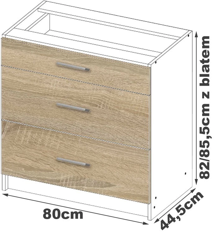 Aprašymas buvo automatiškai išverstas, gali pasitaikyti klaidų. Virtuvės spintelė S80 SZ3 yra vienas iš daugybės klientams patikusių Lima kolekcijos pasiūlymų. Ji suteikia daug vietos virtuvėje susidėti reikalingiems daiktams – tiek maistui, tiek indams, stalo įrankiams ar smulkiems dalykėliams, palengvinantiems patiekalų ruošimą. Spintelė susideda iš trijų stalčių. Balduose dera dvi labai madingos ir praktiškos spalvos, kurios neabejotinai yra balta ir sonoma ąžuolas. Ryškios rankenos puikiai papildo visumą. Tiek pristatoma pastatoma spintelė, tiek kiti Lima kolekcijos baldai pagaminti iš laminuotos plokštės, kuri užtikrina ilgaamžiškumą ir atsparumą dilimui. Spintelė su stalčiais yra nepamainomas elementas bet kurioje virtuvėje. Raginame susipažinti su šiuo ir kitais Lima kolekcijos pasiūlymais ir pasirinkti tinkamiausius variantus jūsų virtuvei. Korpuso spalva – balta Priekinės dalies spalva – Sonoma ąžuolas p> - Spintelė iš dilimui atsparios laminuotos plokštės. - Baltas stalviršis su sidabro apvadu NEMOKAMAI!!!