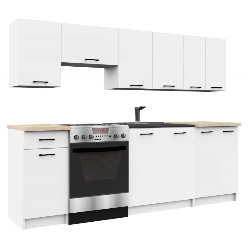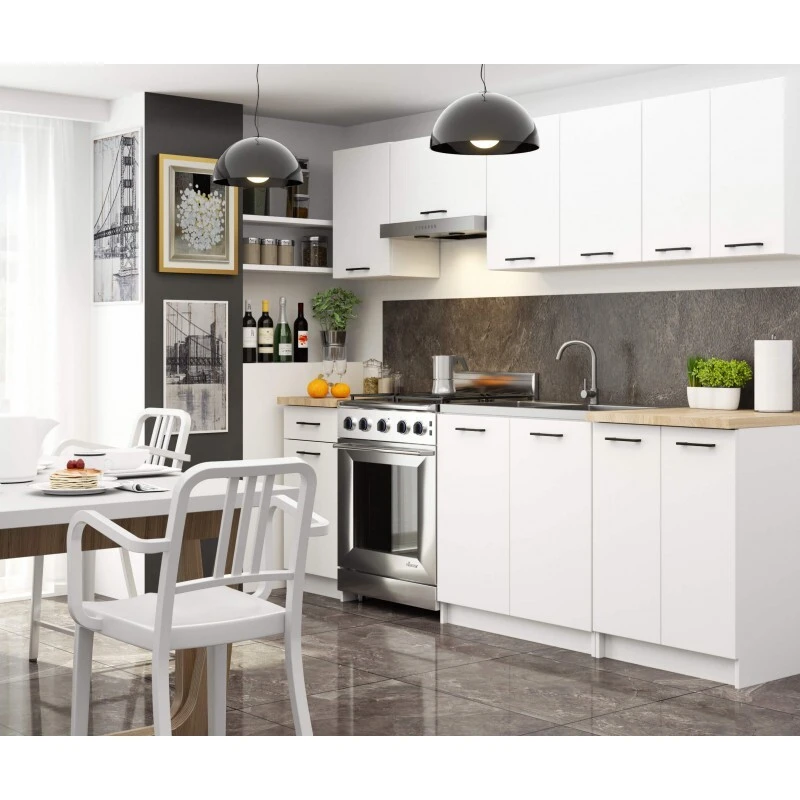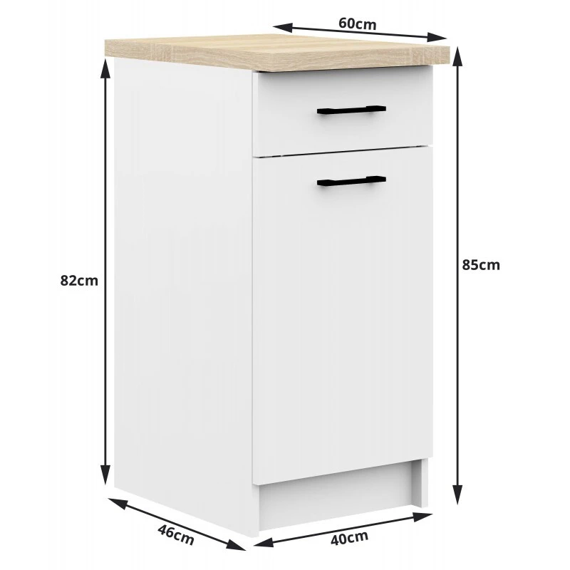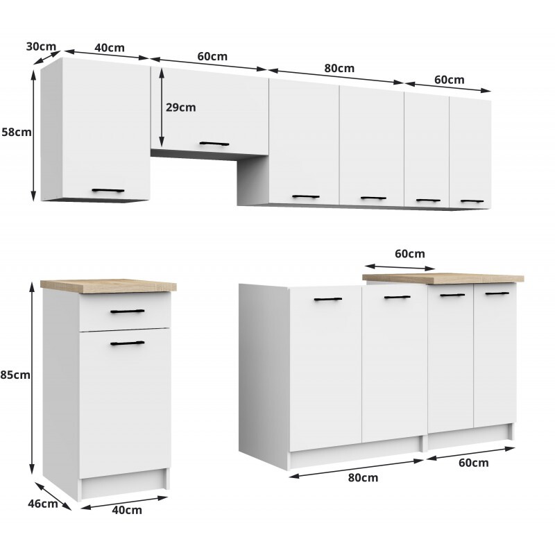 Aprašymas buvo automatiškai išverstas, gali pasitaikyti klaidų. Virtuvės sieninis blokas bus puikus sprendimas mažoje virtuvėje ar priestate, kur turime tik vieną sieną. Nesenstančios ir universalios baltos spalvos virtuvės baldai Oliwia tikrai puikiai tiks bet kokiame interjere – tiek moderniame, tiek tradiciniame. Pasiūlymą sudaro stovinčios ir pakabinamos spintelės, taip pat madingos, lengvai valomos spalvos – sonoma ąžuolo – viršus. Visuma pagaminta iš 16 milimetrų storio laminuotos plokštės – medžiagos, atsparios pažeidimams, patvarios ir ilgaamžės, kurios dėka baldas pasižymi tvirta konstrukcija. Žmonėms, vertinantiems minimalizmą, paprastumą ir eleganciją, šis įdomus pasiūlymas tikrai patiks. Rinkinį sudarančius elementus galima laisvai derinti, sukuriant individualiems poreikiams pritaikytą visumą. Praktiški, kokybiški ir elegantiški baldai tikrai puikiai atliks savo funkciją. Pagaminta iš 16 mm laminuotos plokštės. SPALVA: - Sonoma ąžuolinis stalviršis 60 cm gylio - Spintelės iš baltos laminuotos plokštės KABAMOSIOS SPINTELĖS : W80 ILGIS - 80 cm AUKŠTIS - 58 cm GYLIS - 30 cm W60 ILGIS - 60 cm AUKŠTIS - 58 cm GYLIS - 30 cm H60 OK ILGIS - 60 cm AUKŠTIS - 29 cm GYLIS - 30 cm P40 ILGIS - 40 cm AUKŠTIS - 58 cm GYLIS - 30 cm STOVANTIS SPINTELĖS S80ZL ILGIS - 80 cm AUKŠTIS - 82 cm GYLIS - 46 cm S60 ILGIS - 60 cm AUKŠTIS - 82 cm SU VIRŠU 85 cm GYLIS - 46 cm S40 D1SZ1 ILGIS - 40 cm AUKŠTIS - 82 cm SU VIRŠU 85 cm GYLIS - 46 cm DURŲ VIDUJE SPINTELĖJE S40, S60, W40, W60, W80 YRA VIENA LENTYNA. Kaina taikoma tik virtuvės spintelėms ir stalviršiui, dekoratyviniai elementai į komplektą neįeina.