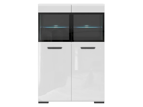 Moderni svetainės baldų kolekcija pasižymi formų paprastumu, blizgančiais fasadais ir kontrastingomis balta ir juoda spalvomis, sukurdama elegantišką svetainės dizainą. Baltas blizgus korpusas derinamas su juodos spalvos juostelėmis aplink grūdintą stiklą. Kaip ir kitiems ASSEN kolekcijos baldams, šiai vitrinai būdinga tylaus uždarymo sistema, taip pat LED apšvietimas, kuris tuo pat metu suteikia ir jaukumo ir puošnumo bendrame svetainės interjere.