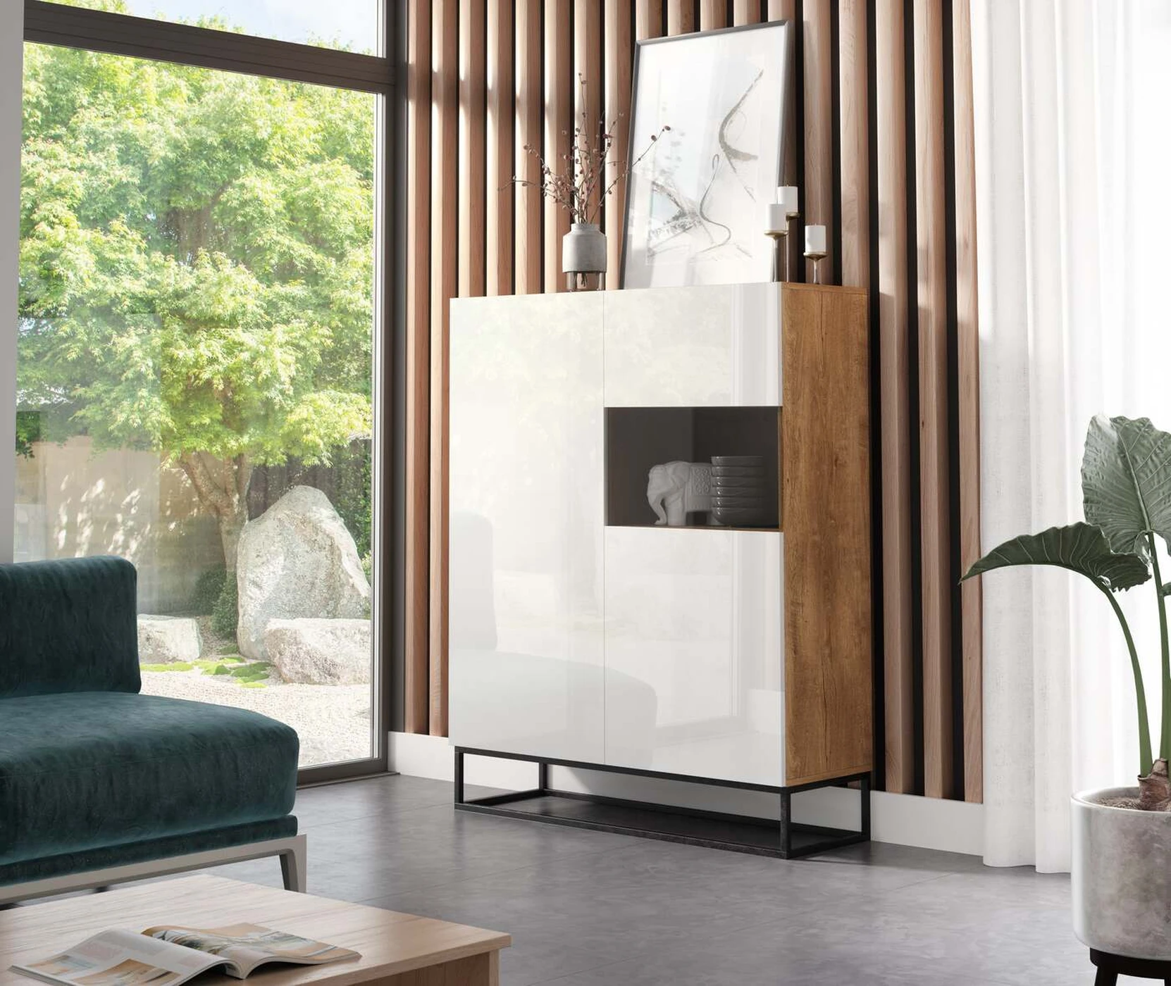 Vitrininė spintelė iš kietmedžio baldų kolekcijos EL2123 yra lengvai surenkama, maloni akiai ir funkcionalus baldas. Vitrinos gamyboje naudojamos medžiagos yra MDF, pasižyminčios dideliu patvarumu. Rankenų trūkumas durims atidaryti tikrai yra minimalizmo mėgėjų malonumas. Vietoj to, vitrinoje yra įmontuoti vyriai su stūmimo atidarymo funkcija. Baldų spalvų gamą sudaro ąžuolo spalvos derinys su baltais arba juodais fasadais. EL2123 vitrinos ypatybė yra didelė saugojimo vieta, nes ji buvo sukurta taip, kad tilptų daug daiktų neužimant per daug vietos. Jo išmatavimai: 120 x 40 x 140 cm suteikia galimybę jį pastatyti ne tik svetainėje, miegamajame ar biure, bet ir prieškambaryje. Įskaitant atvirą erdvę smulkmenoms eksponuoti, EL2123 vitrinoje yra net septynios lentynos. Baldai buvo suprojektuoti su trimis durimis ir viena atvira niša.
