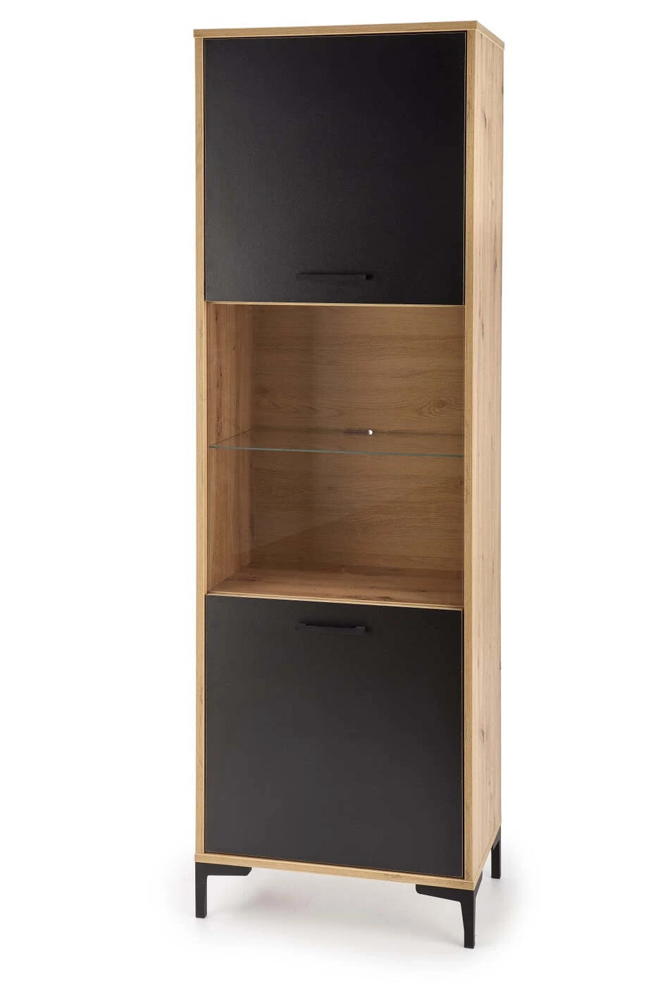 vitrininė spinta, matmenys: 60/40/190 cm, medžiaga: laminuota medžio drožlių plokštė / ABS briaunos / polipropilenas, spalva: amatinis ąžuolas / juoda